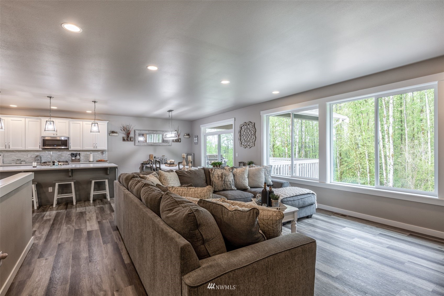 Better than new Daylight Rambler in the desirable Stilly Heights neighborhood. This small gated community is very well located and just minutes from I5. Home sits on just over an acre and backs up to NGPA. Inside you will find white painted cabinets, solid quartz counters, and LVP throughout the main floor. Downstairs is a huge rec room, wine cellar or exercise room, 2 additional bedrooms and a full bath. This energy-efficient home also features gas forced air heat, Central A/C & Tankless H2O. Enjoy the weather under your large covered rear deck or on the lower outdoor patio. Plenty of storage with the 12x16 shed and spacious 3-car garage. This home is exceptionally well maintained and will not disappoint! Refer is included.
