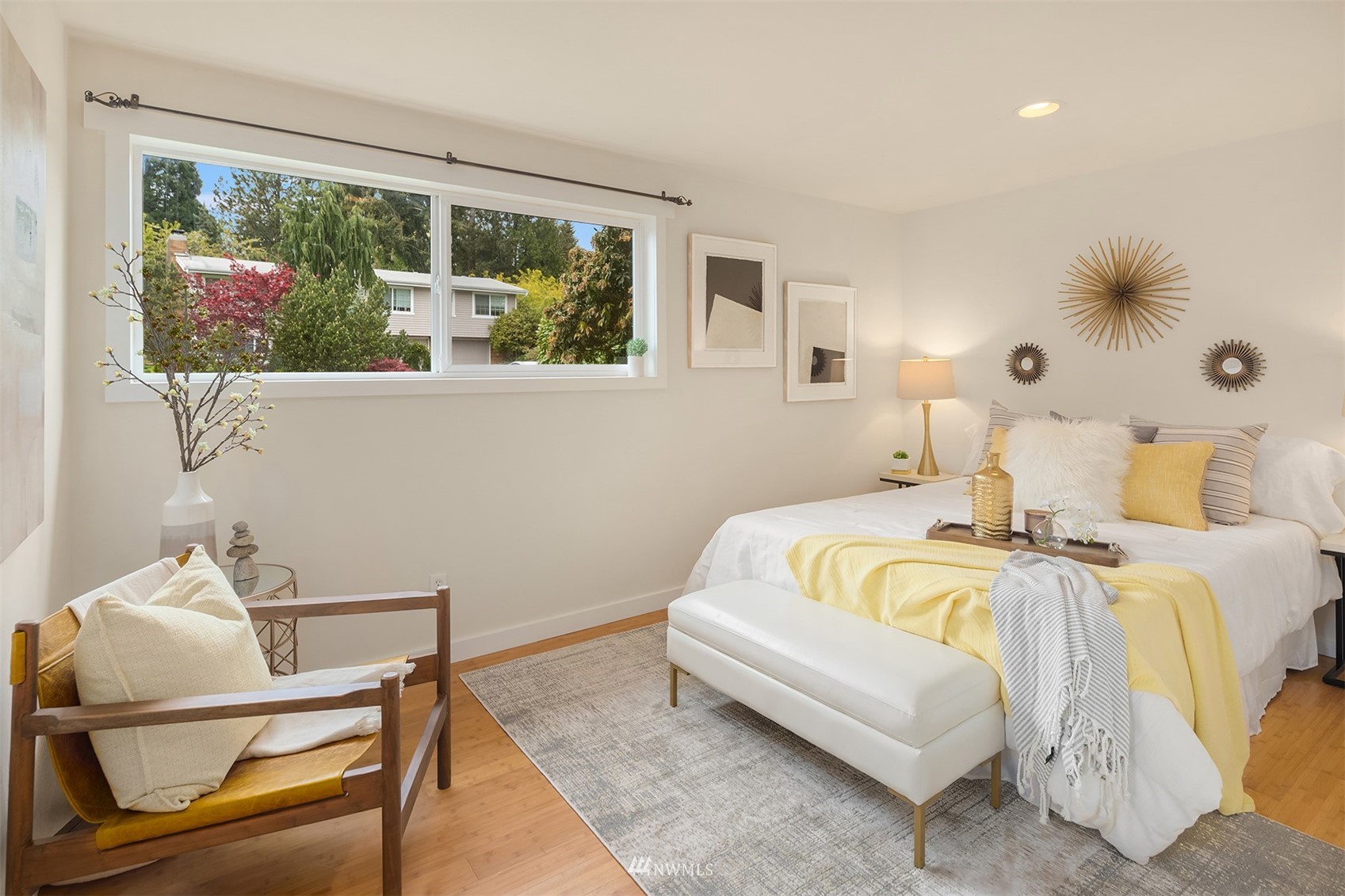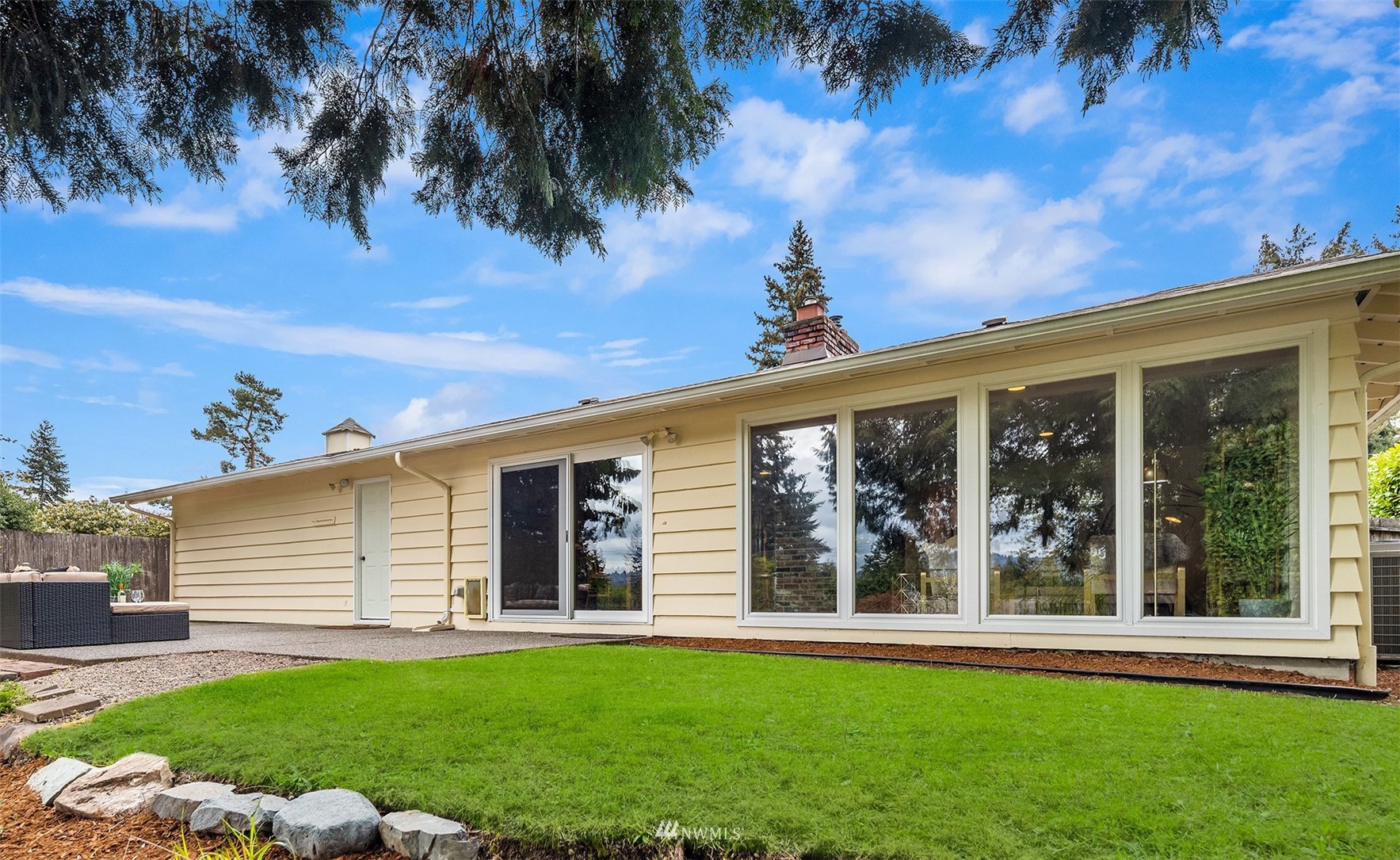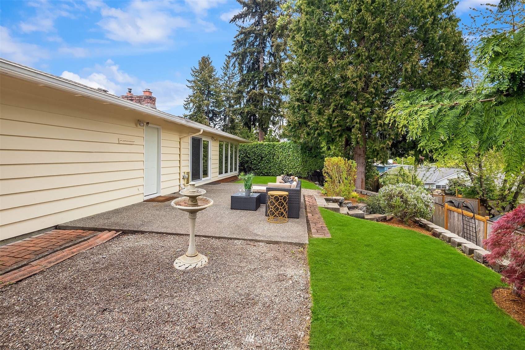Make dreams of living in Bellevue a reality in this enchanting, single-story rambler complete with territorial views in convenient Lake Hills. Driving up is a joy as you are welcomed by great curb appeal & coveted two-car garage. The mid-century brick fireplace provides a charming backdrop to the spacious living room, dining & kitchen. Impressive wall of windows provides southern exposure for terrific light year-round. Three bedrooms with primary ensuite, and smart built-in storage throughout, round out the perfect floorplan all lovingly-maintained. An entertainer's dream awaits in the fully-fenced backyard with patio, terraces & garden space. Parks, trails, library, Samena & shopping are all nearby. Charmers like this are hard to find!