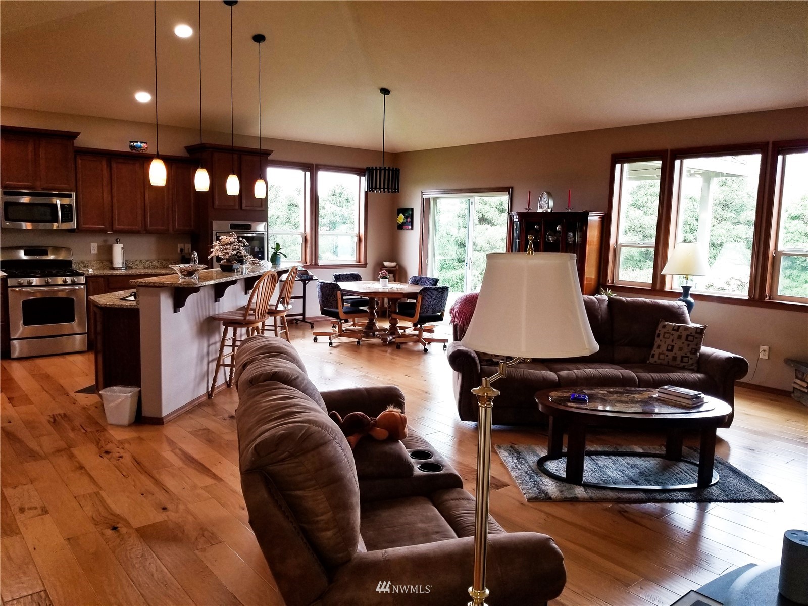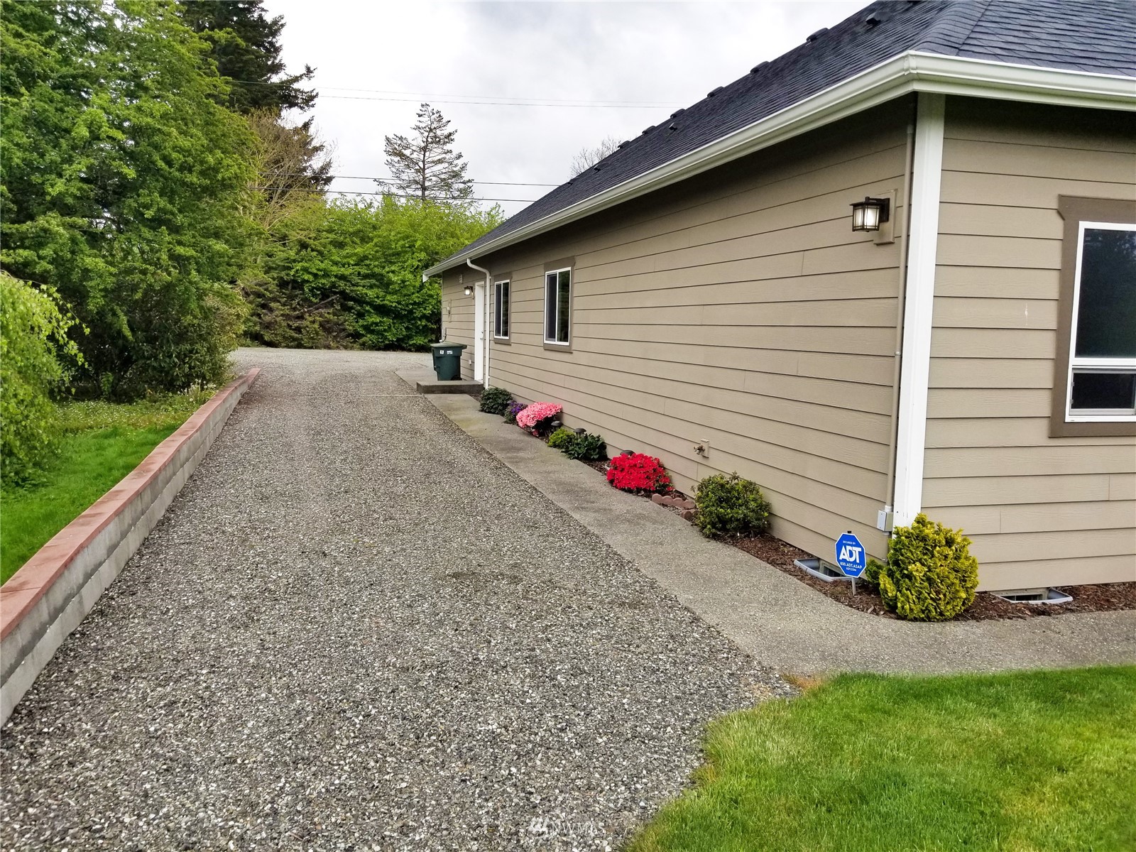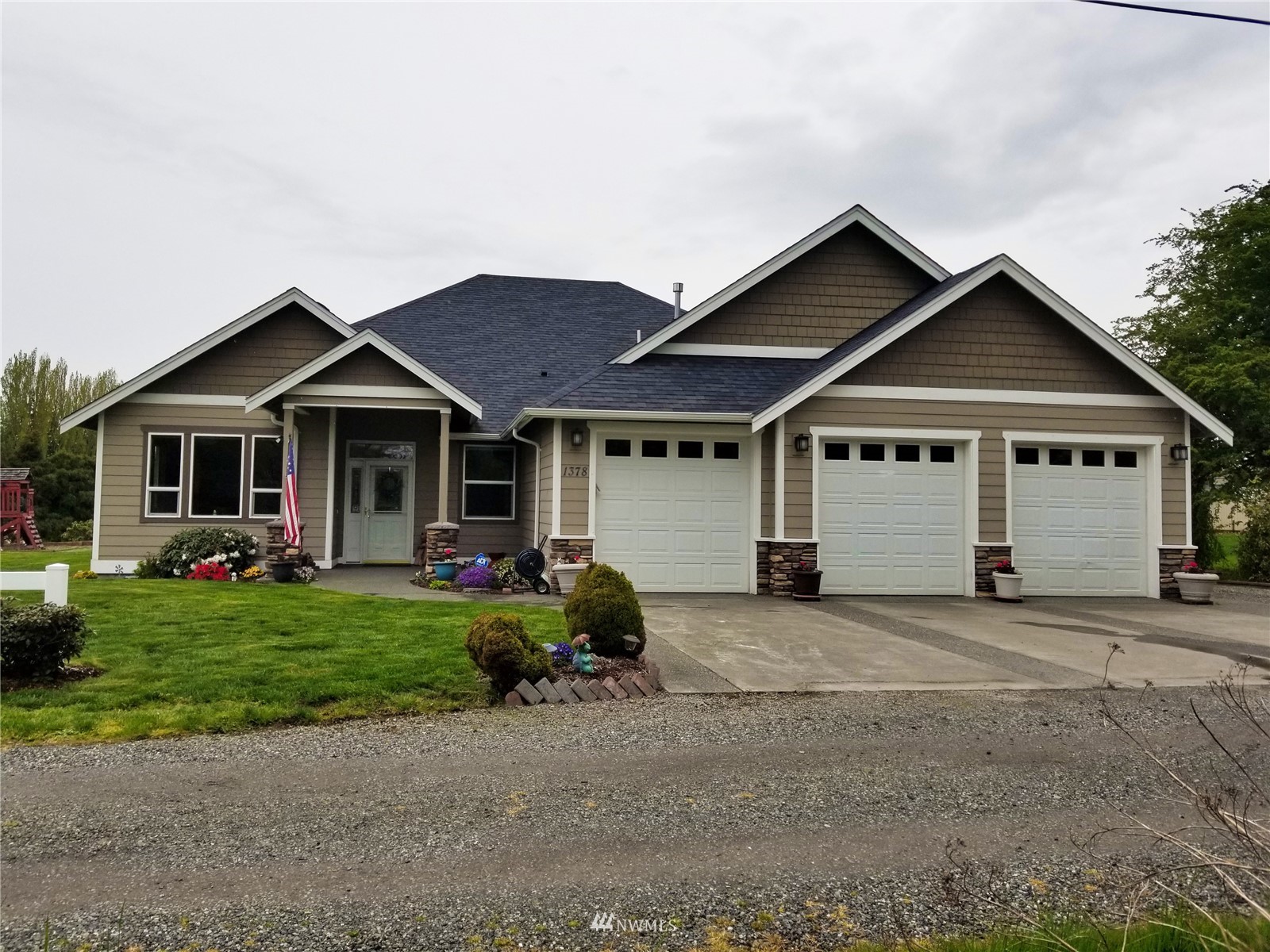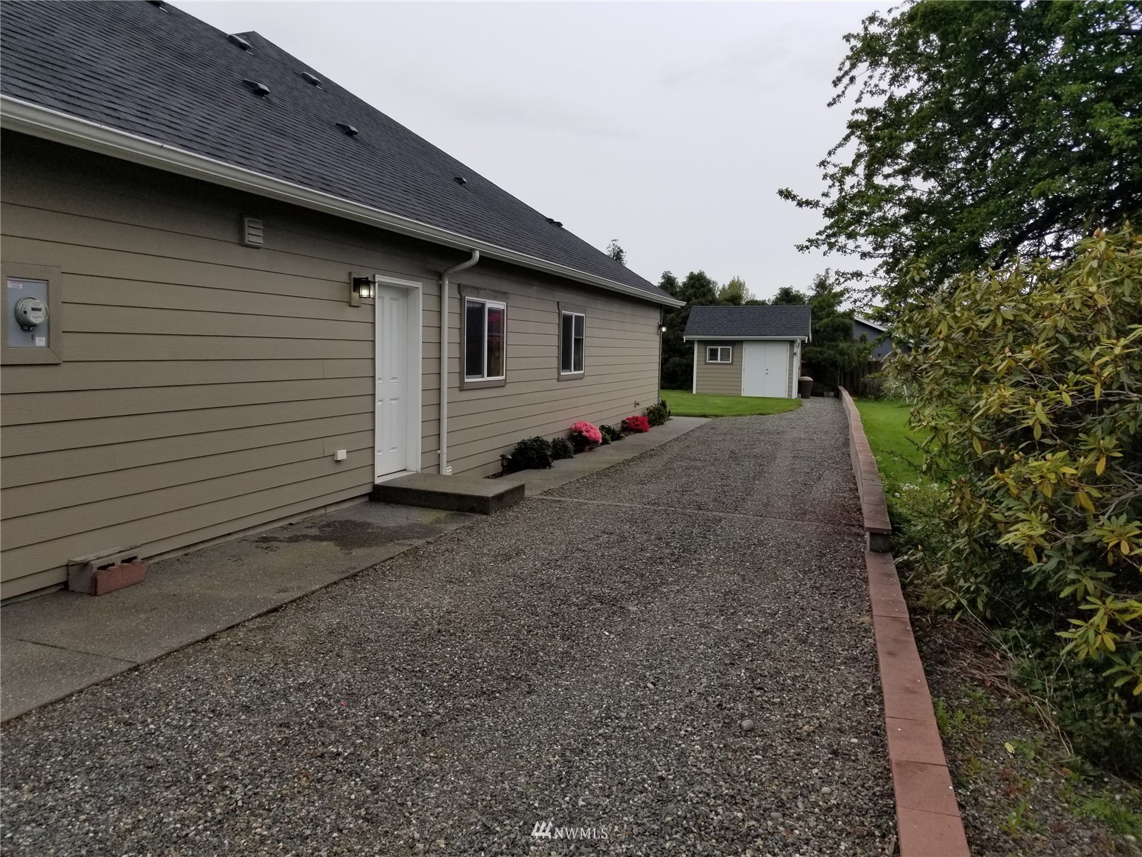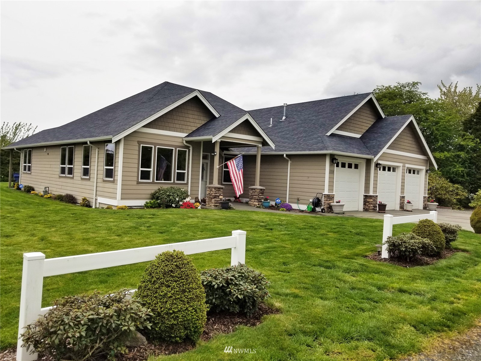What a find! Offered by original owner - 9 yr old Spacious over 2600 sq ft. Mason Houseworks built open floor plan no step entry Rambler on private drive & 1/2+ acre way off Smith Rd in North Bham/Ferndale. Enjoy 3 or 4 bdrms, currently used as 3 beds & den, Living, dining & family (great) room. Beautiful rich looking wood floors complimented by tile & also carpeted bdrms. Fabulous great room w/bar stool counter & bright causal dining area, stone gas fireplace & vaulted ceilings. Primary bdrm w/slider access to patio, double vanity bath jetted tub & shower & oversized walk in closet. Lots of light, lots of storage, covered patio, 3 car garage + additional parking spaces including big RV space & nice garden shed. Room to build a shop.