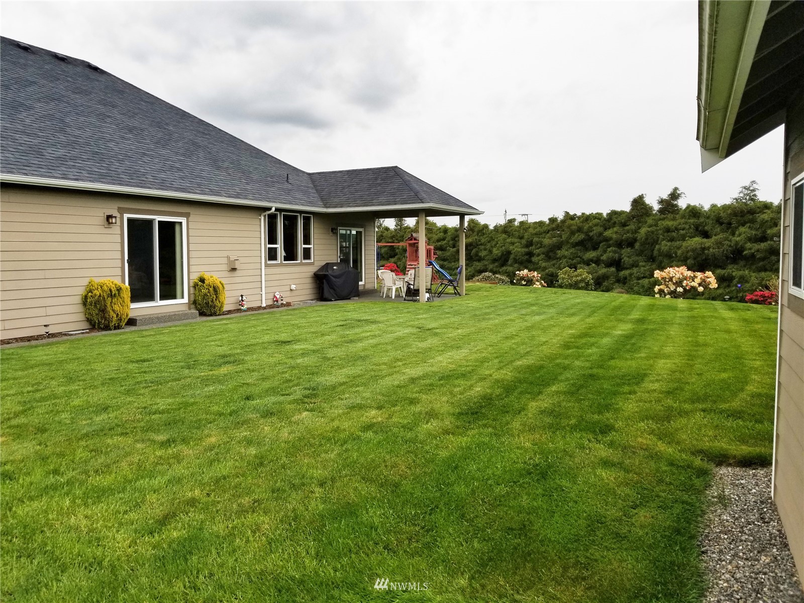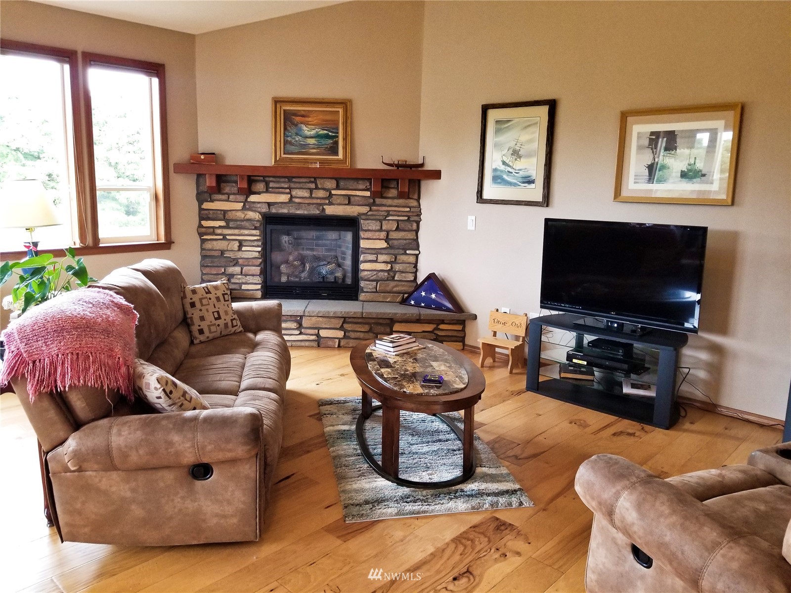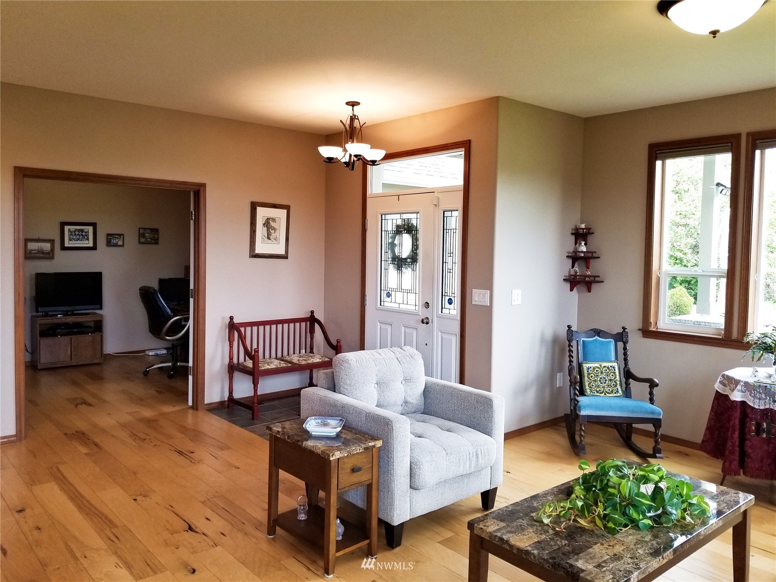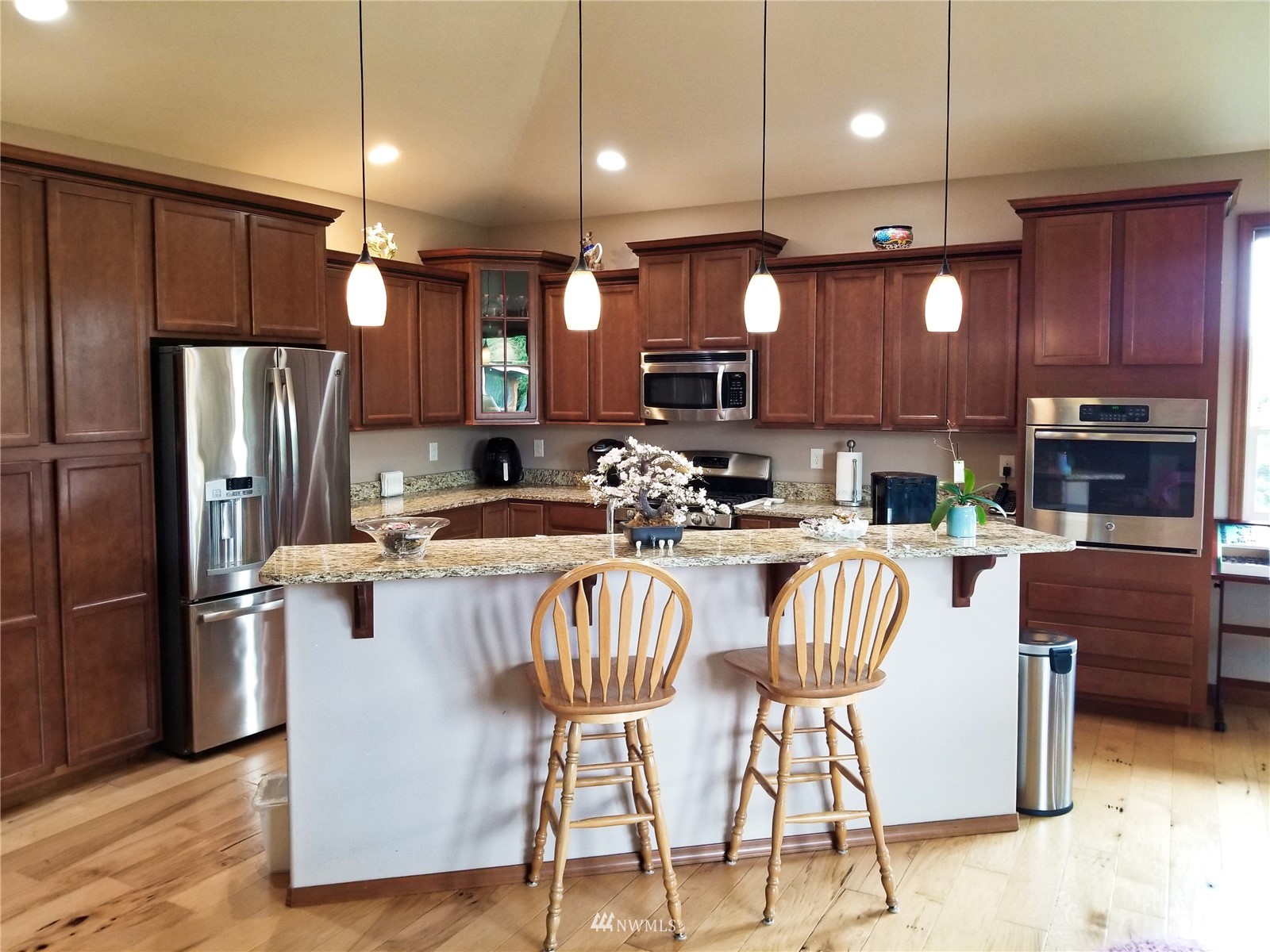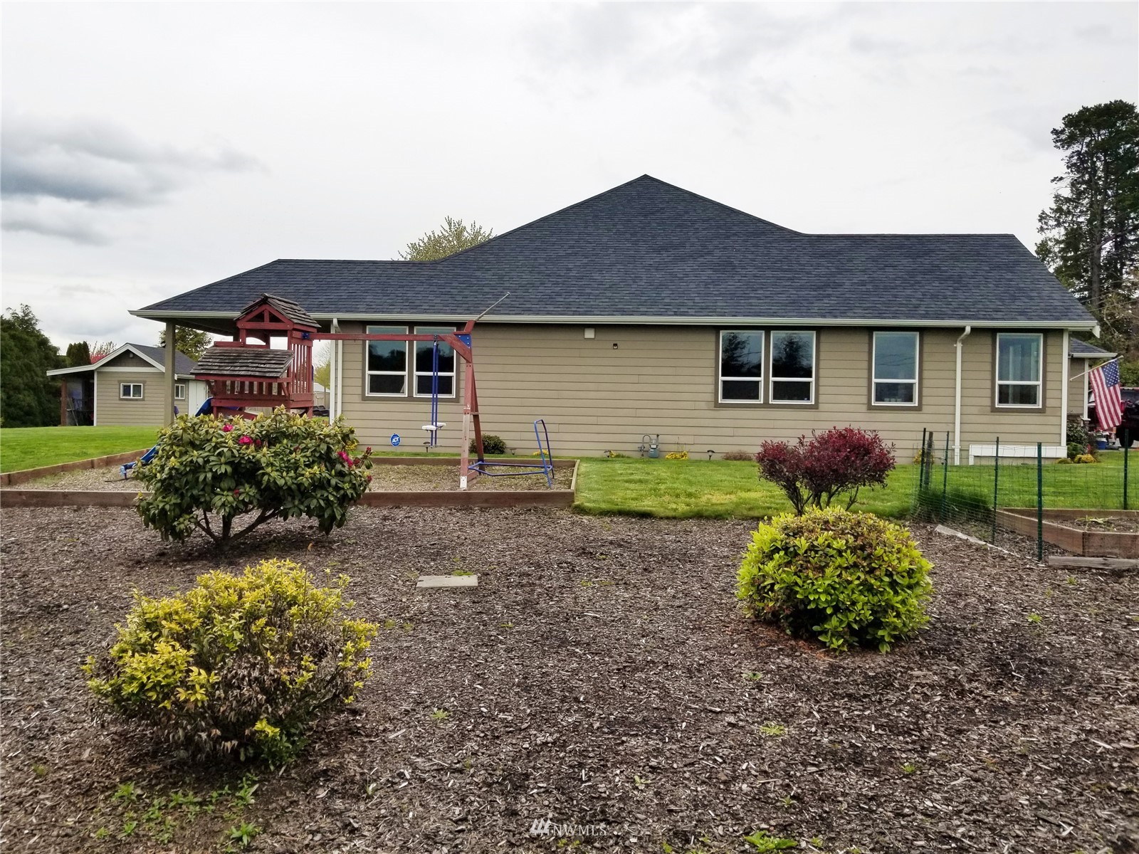 What a find! Offered by original owner - 9 yr old Spacious over 2600 sq ft. Mason Houseworks built open floor plan no step entry Rambler on private drive & 1/2+ acre way off Smith Rd in North Bham/Ferndale. Enjoy 3 or 4 bdrms, currently used as 3 beds & den, Living, dining & family (great) room. Beautiful rich looking wood floors complimented by tile & also carpeted bdrms. Fabulous great room w/bar stool counter & bright causal dining area, stone gas fireplace & vaulted ceilings. Primary bdrm w/slider access to patio, double vanity bath jetted tub & shower & oversized walk in closet. Lots of light, lots of storage, covered patio, 3 car garage + additional parking spaces including big RV space & nice garden shed. Room to build a shop.