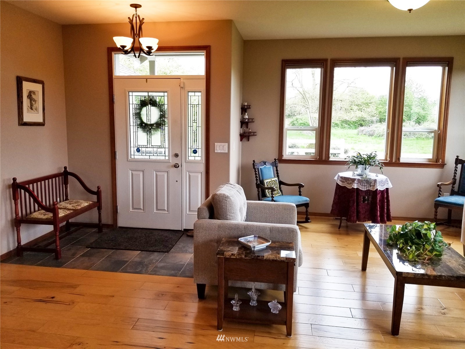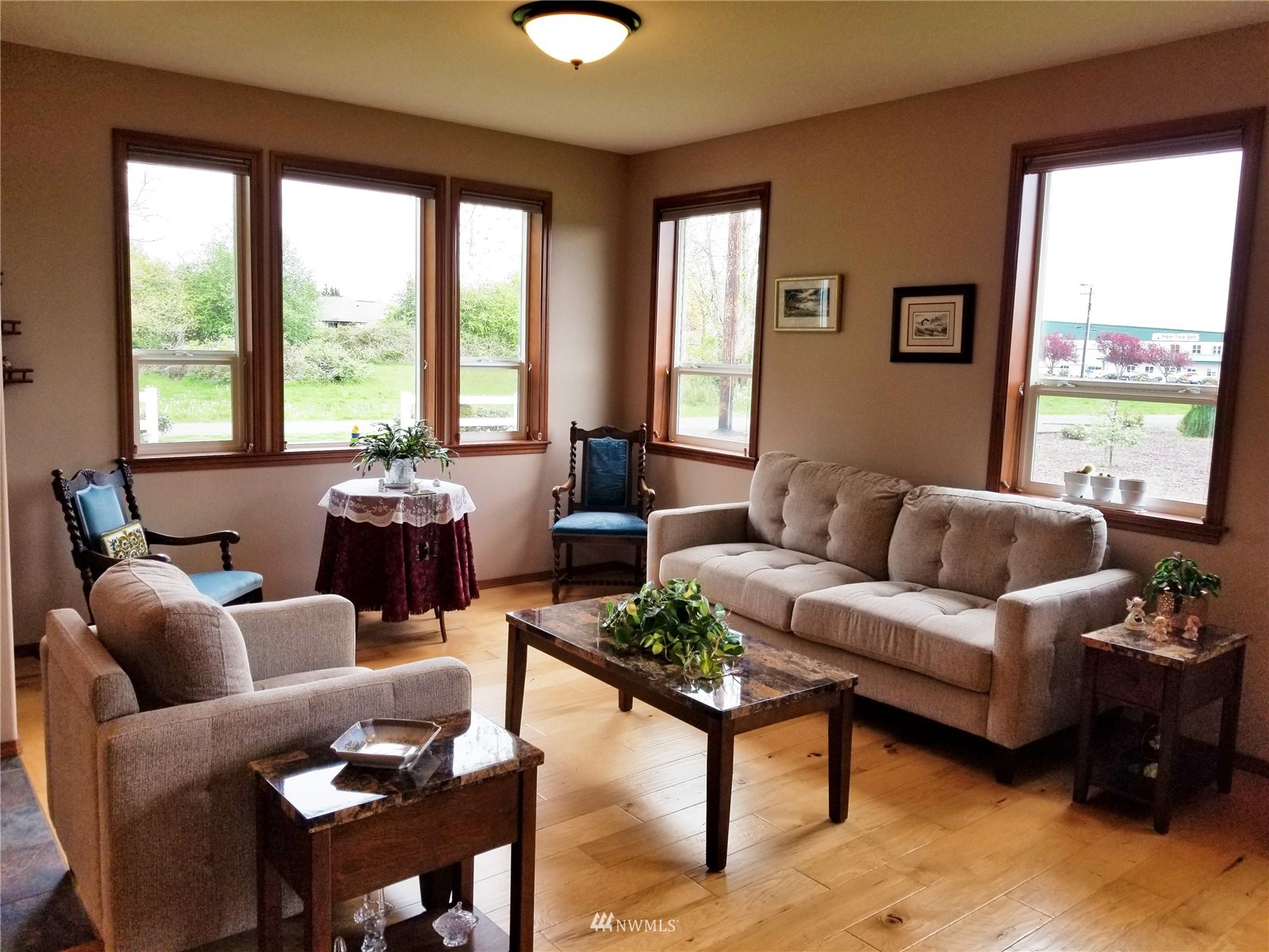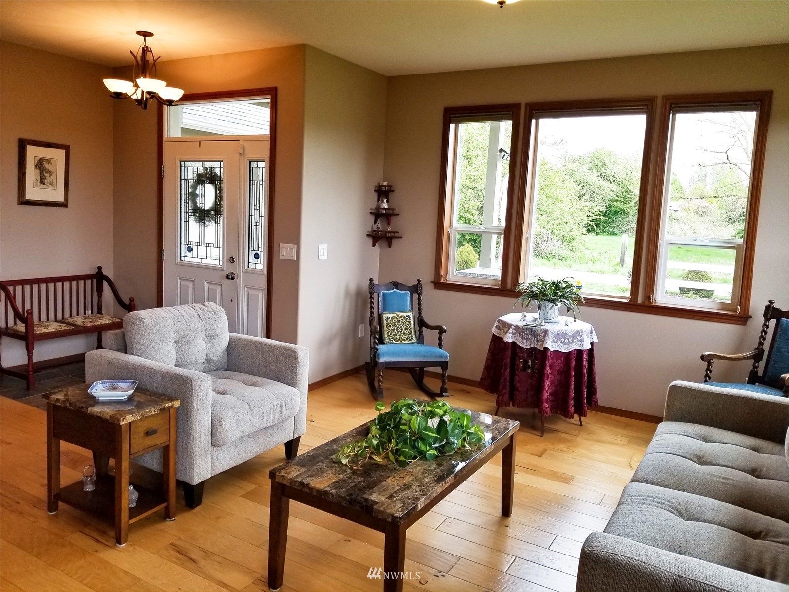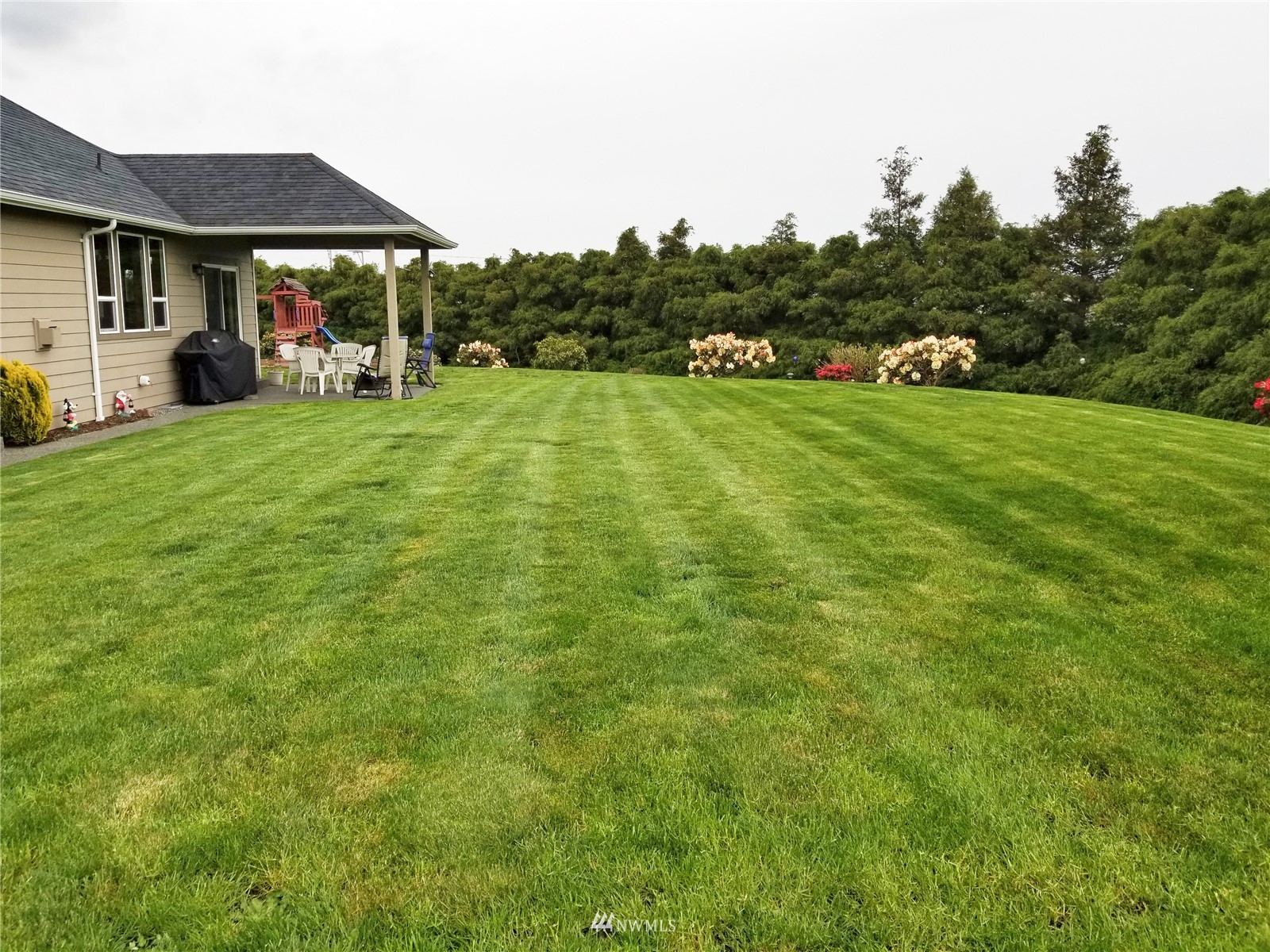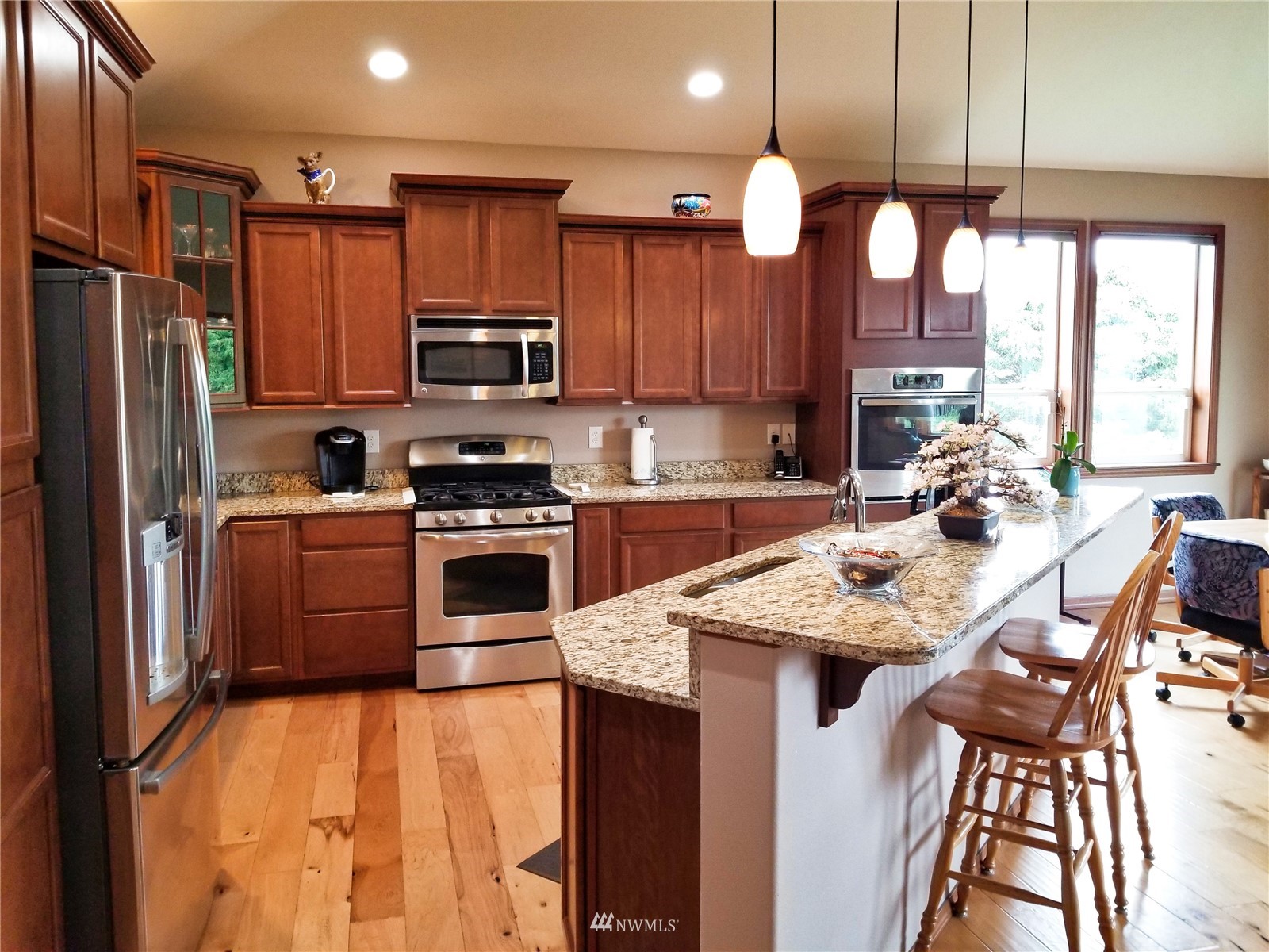 What a find! Offered by original owner - 9 yr old Spacious over 2600 sq ft. Mason Houseworks built open floor plan no step entry Rambler on private drive & 1/2+ acre way off Smith Rd in North Bham/Ferndale. Enjoy 3 or 4 bdrms, currently used as 3 beds & den, Living, dining & family (great) room. Beautiful rich looking wood floors complimented by tile & also carpeted bdrms. Fabulous great room w/bar stool counter & bright causal dining area, stone gas fireplace & vaulted ceilings. Primary bdrm w/slider access to patio, double vanity bath jetted tub & shower & oversized walk in closet. Lots of light, lots of storage, covered patio, 3 car garage + additional parking spaces including big RV space & nice garden shed. Room to build a shop.