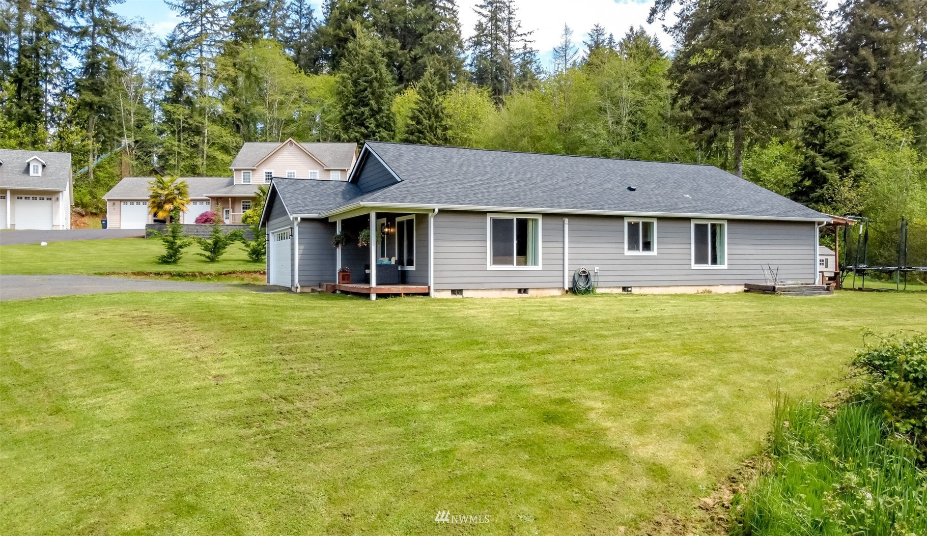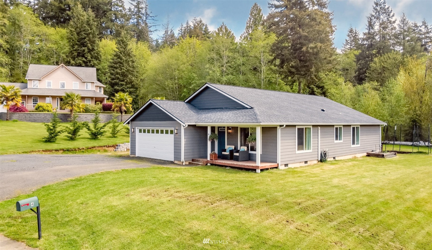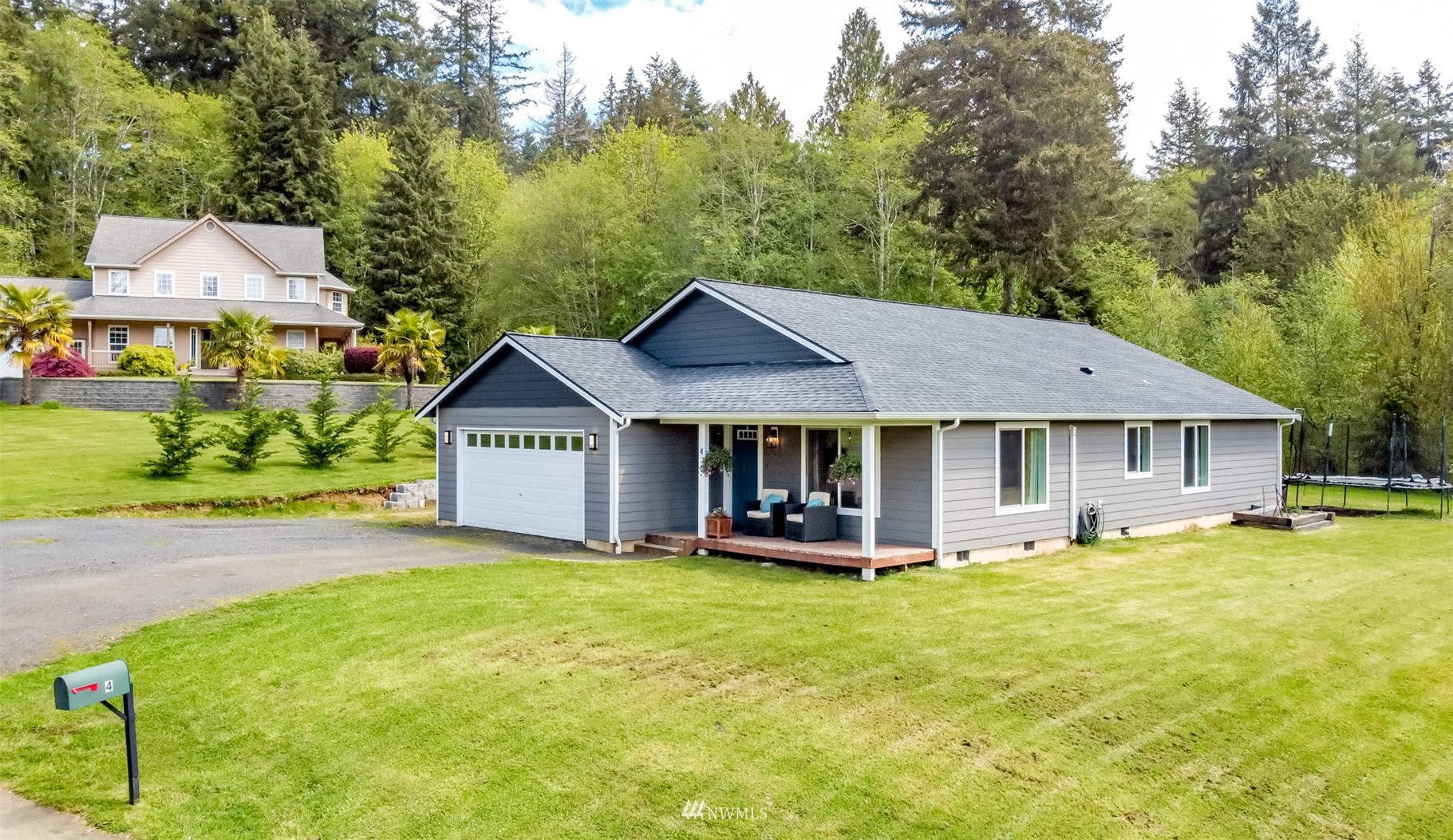 Beautiful rambler on over an acre in Elma. Welcome to Dakota Lane, this 3 bedroom, 1 den, 2 full bath Highline home was built in 2017. With 1883 sqft, it includes a large oversize open concept living room/kitchen layout. Walk in pantry, quartz counters & tile backsplash. Formal dining room off kitchen. Covered back deck is perfect to enjoy the private backyard with shed included. Lots of room for boat/rv/extra parking. Spacious primary bedroom features walk in closet, tiled floors in ensuite, double vanity w/ full bath. 2 car garage with suspended storage racks. All appliances included.
