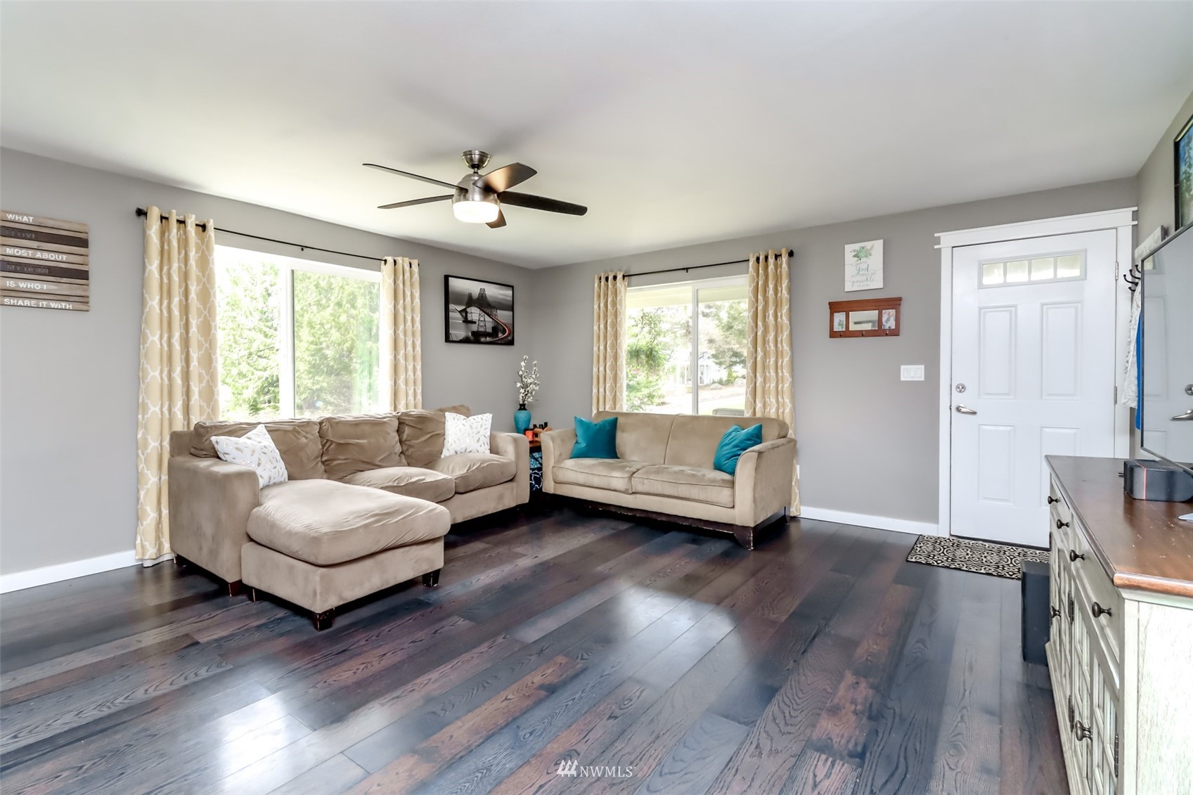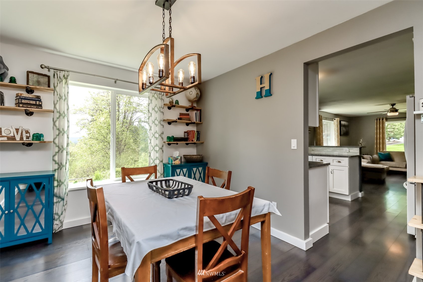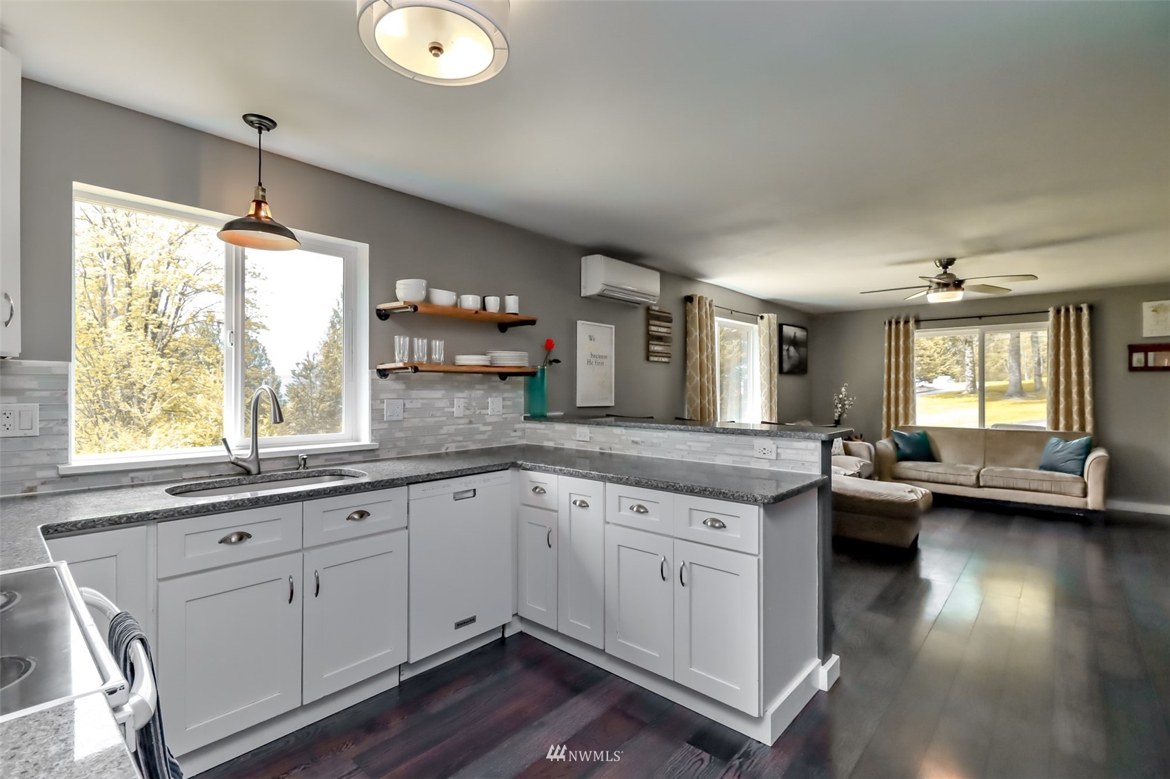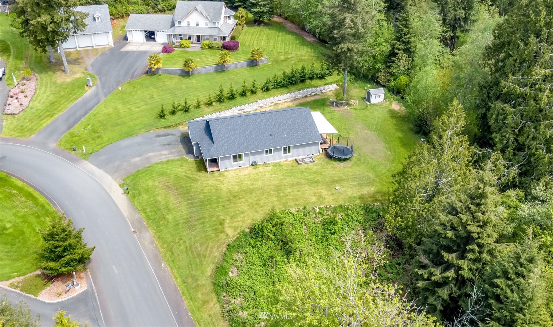 Beautiful rambler on over an acre in Elma. Welcome to Dakota Lane, this 3 bedroom, 1 den, 2 full bath Highline home was built in 2017. With 1883 sqft, it includes a large oversize open concept living room/kitchen layout. Walk in pantry, quartz counters & tile backsplash. Formal dining room off kitchen. Covered back deck is perfect to enjoy the private backyard with shed included. Lots of room for boat/rv/extra parking. Spacious primary bedroom features walk in closet, tiled floors in ensuite, double vanity w/ full bath. 2 car garage with suspended storage racks. All appliances included.