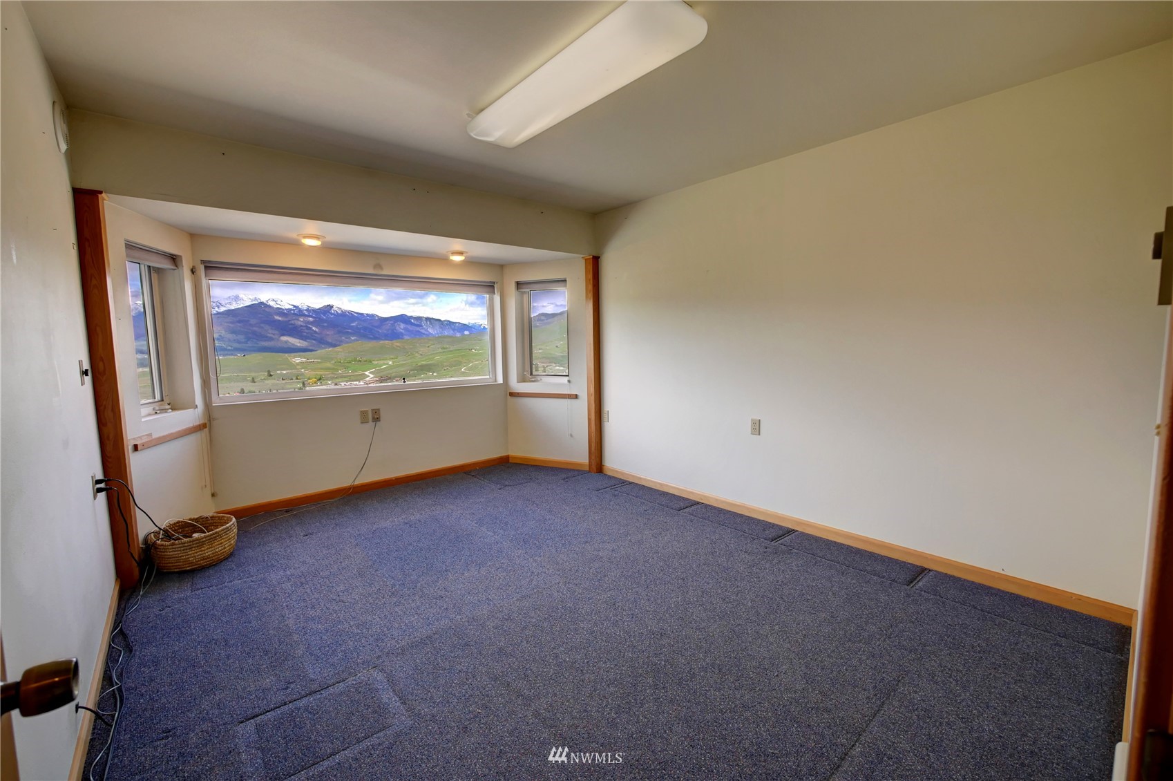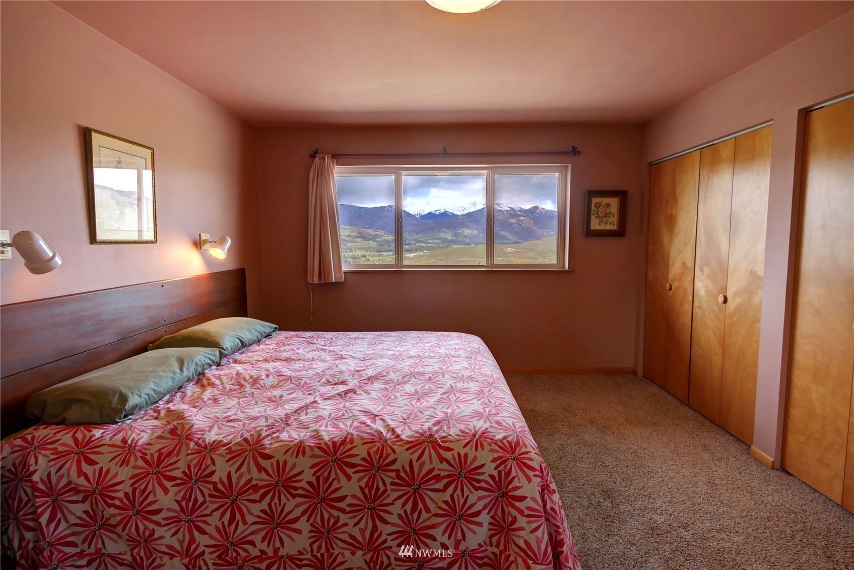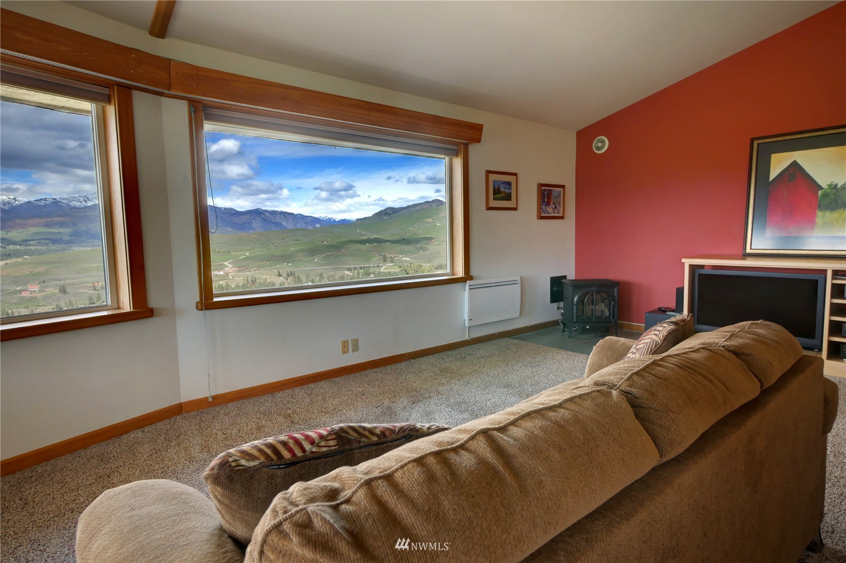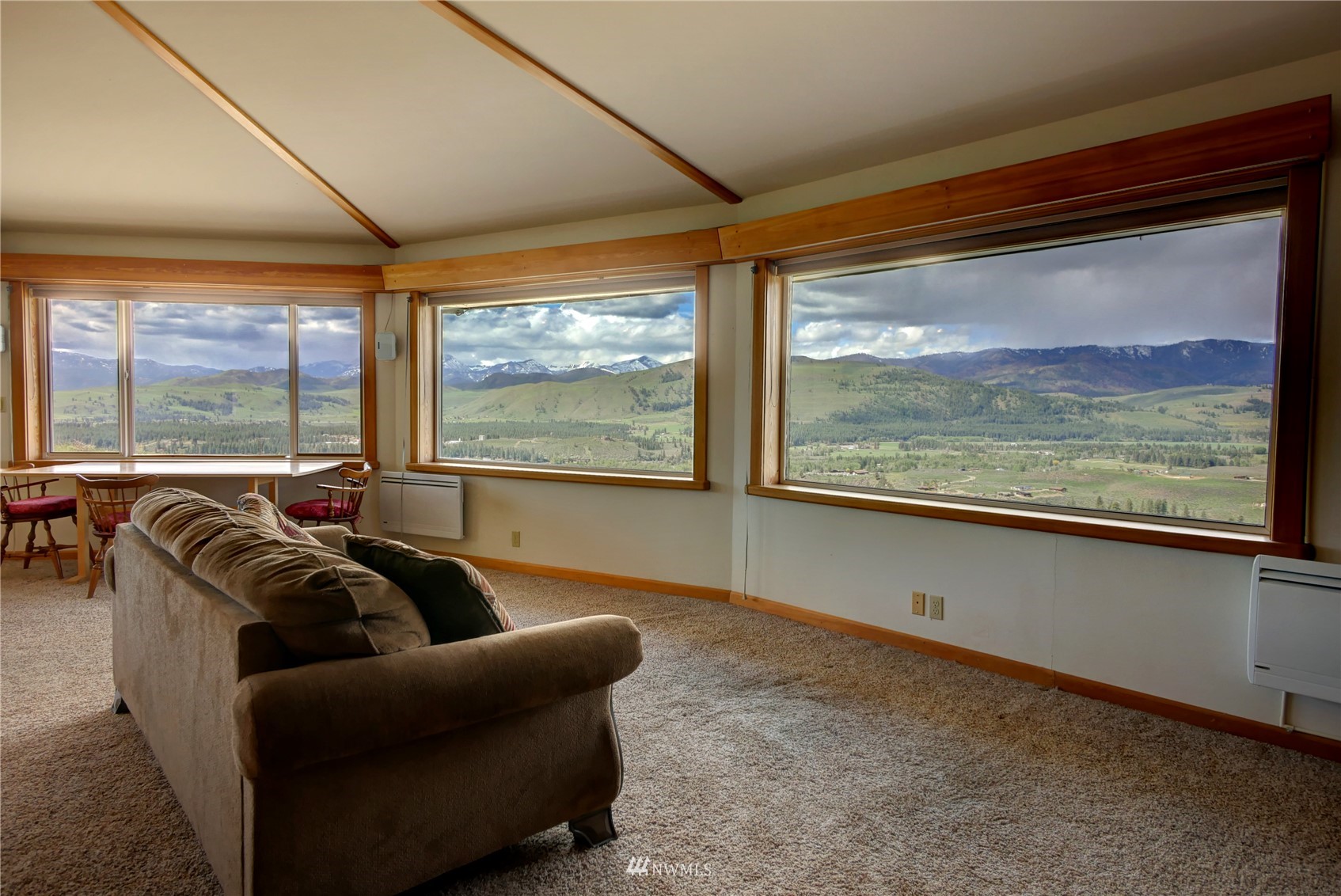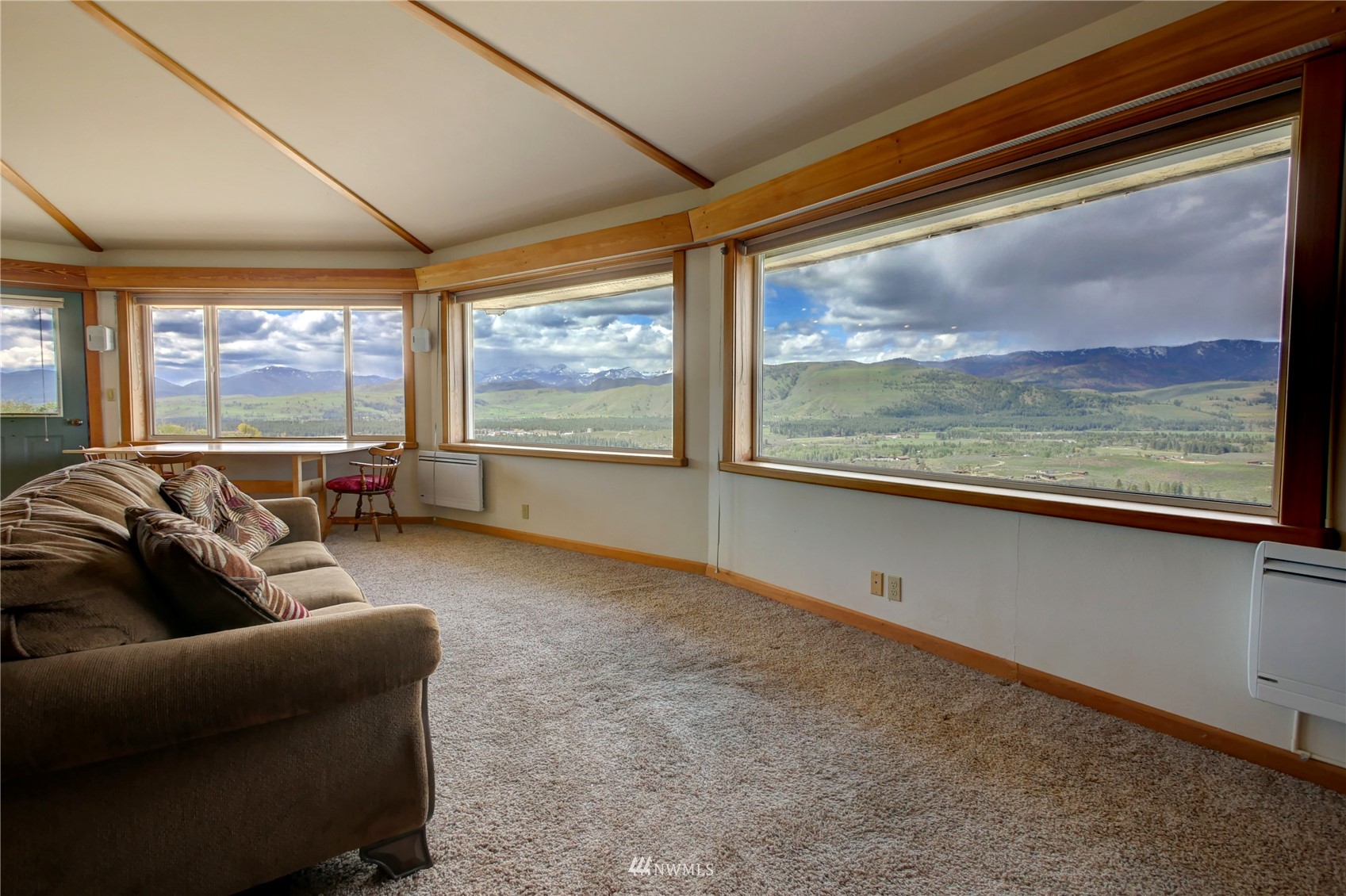 It's all about the VIEW!!! Savor the peace & quiet on 6+ acres w/ lush aspens & scattered pines on quiet country lane. Desirable rare location less than 8 minutes to Winthrop amenities & ski trailhead. Efficient single level home w/ low profile blends w setting. EZ maintenance stucco siding. Primary bdrm w ensuite bathroom. Glass-wrapped living room-kitchen captures majestic mountain views...Spectacular! 2nd bdrm & bath plus den/office. Sunny open floorplan. Custom cabinets w lots of kitchen storage. Handsome built-in desks & bookcase. Attached 2 car garage w 1/2 used as art studio. Storage rm & carport for gear & extra vehicles. Drought tolerant landscaping & sprinkler system. One of a kind exceptional Methow Valley location!