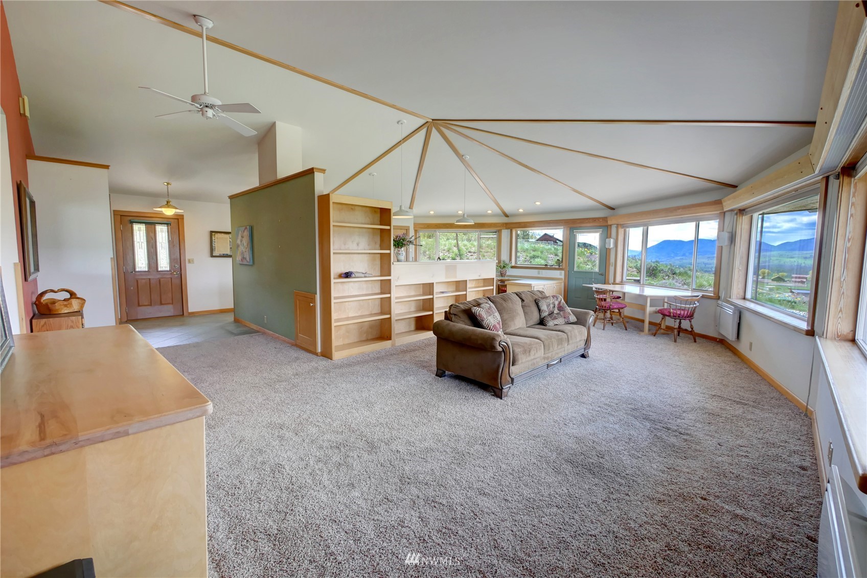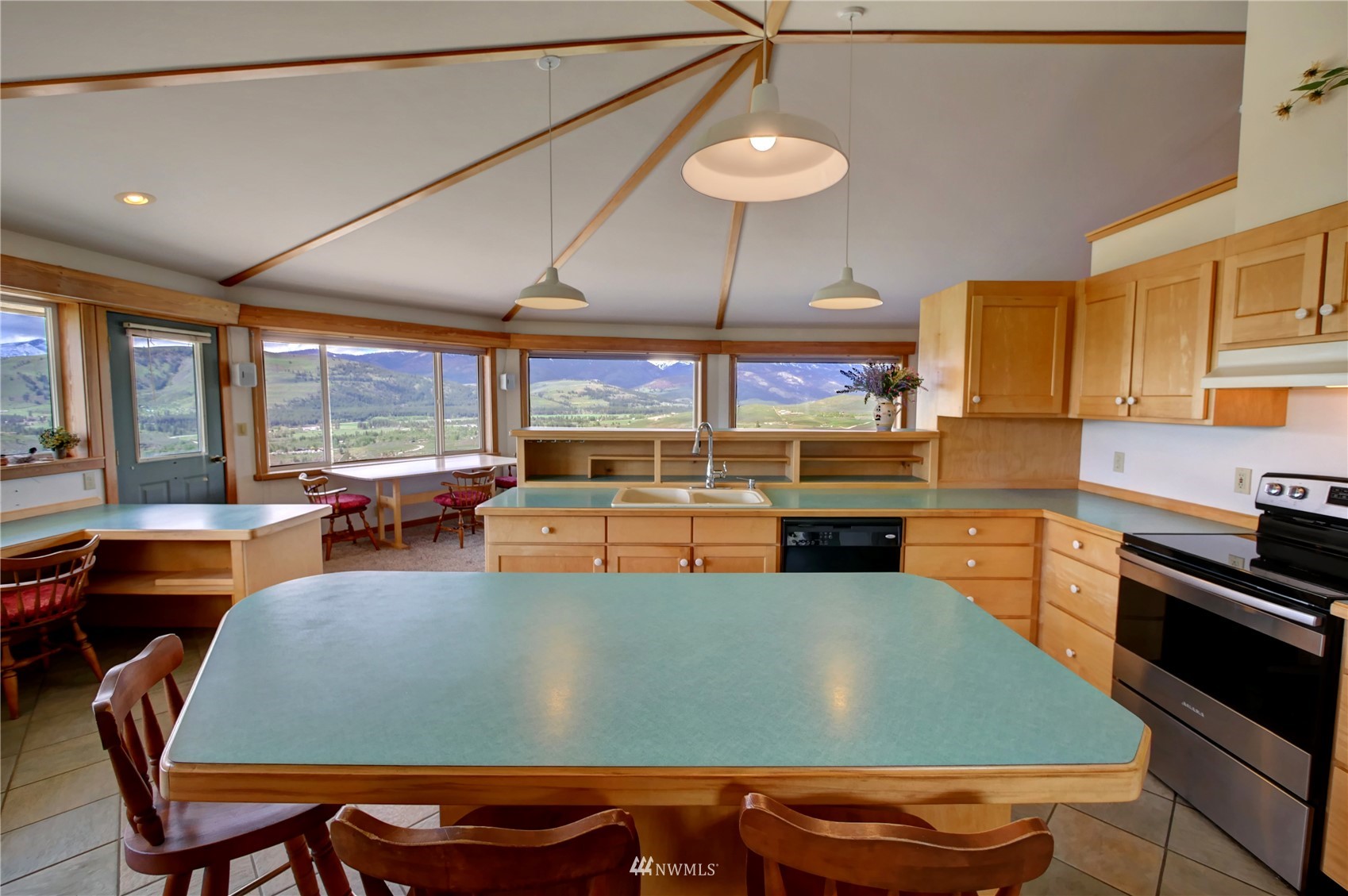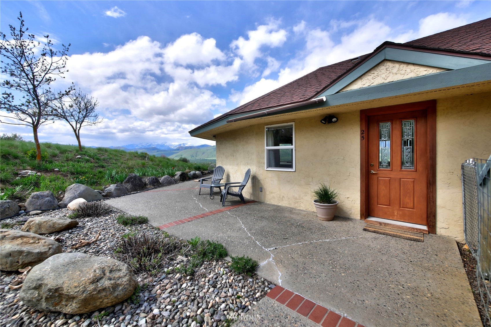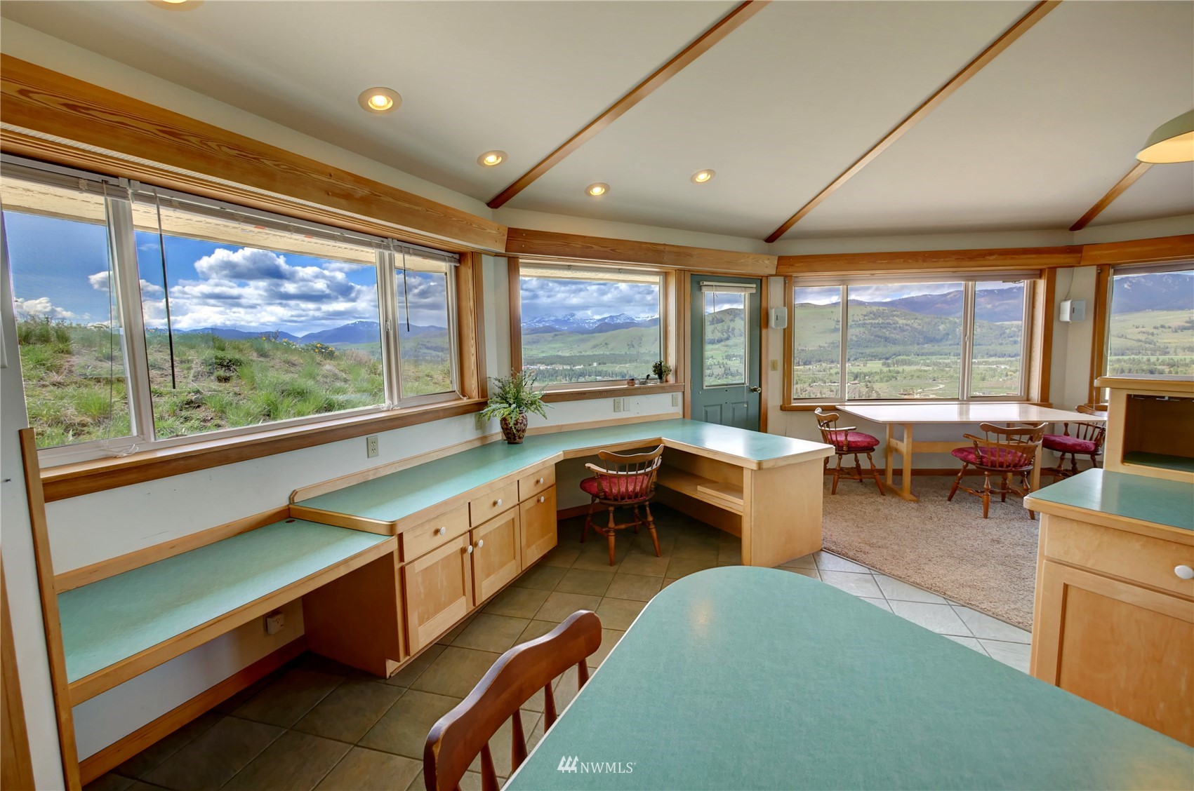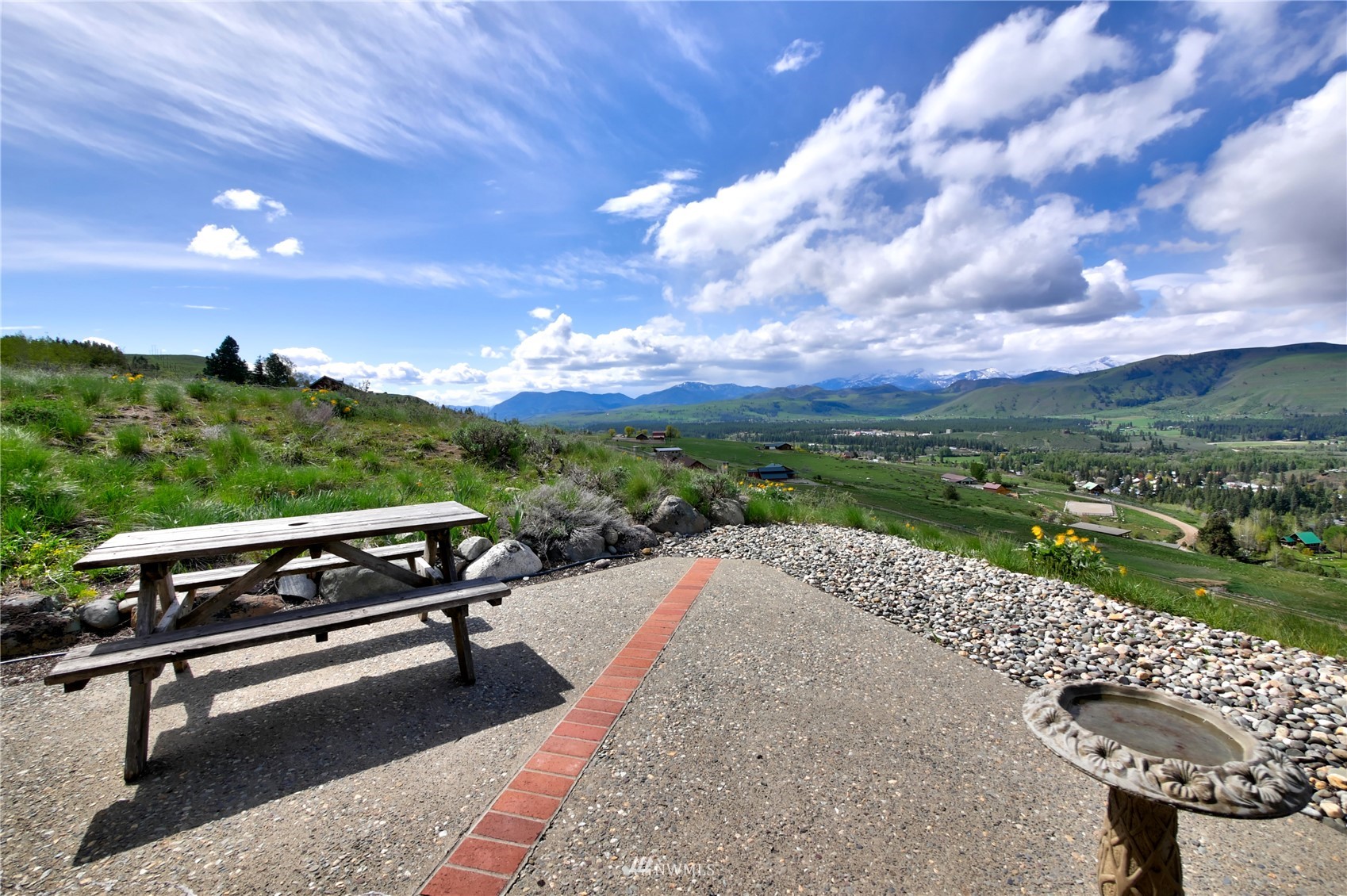 It's all about the VIEW!!! Savor the peace & quiet on 6+ acres w/ lush aspens & scattered pines on quiet country lane. Desirable rare location less than 8 minutes to Winthrop amenities & ski trailhead. Efficient single level home w/ low profile blends w setting. EZ maintenance stucco siding. Primary bdrm w ensuite bathroom. Glass-wrapped living room-kitchen captures majestic mountain views...Spectacular! 2nd bdrm & bath plus den/office. Sunny open floorplan. Custom cabinets w lots of kitchen storage. Handsome built-in desks & bookcase. Attached 2 car garage w 1/2 used as art studio. Storage rm & carport for gear & extra vehicles. Drought tolerant landscaping & sprinkler system. One of a kind exceptional Methow Valley location!