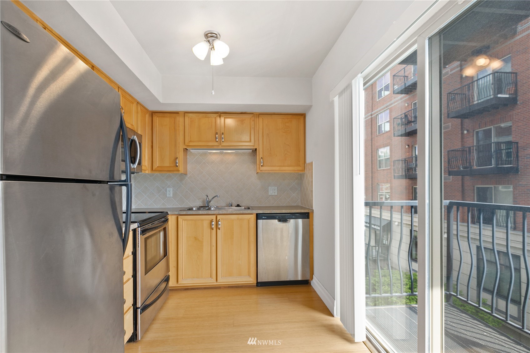 Efficiency of space is the key to this charming one bed/ studio unit. This condominium could serve as a perfect vacation get-away spot, or your full-time home. Featuring stainless steel appliances, balcony, separate living/bedroom spaces & a spacious bathroom, it has exactly what you need. Live large w/ amazing amenities just outside your door - shopping, restaurants, the waterfront, bus routes, Alaska ferry terminal, Amtrak station, Marine Park Beach, as well as everything the historic Fairhaven district has to offer. Housed in the charming Harris Square Building, relish in the beautiful architecture, meticulously grounds, secure lobby & elevator access. This unit has underground parking w/ gated entry & amazingly low HOA dues -$206/month.