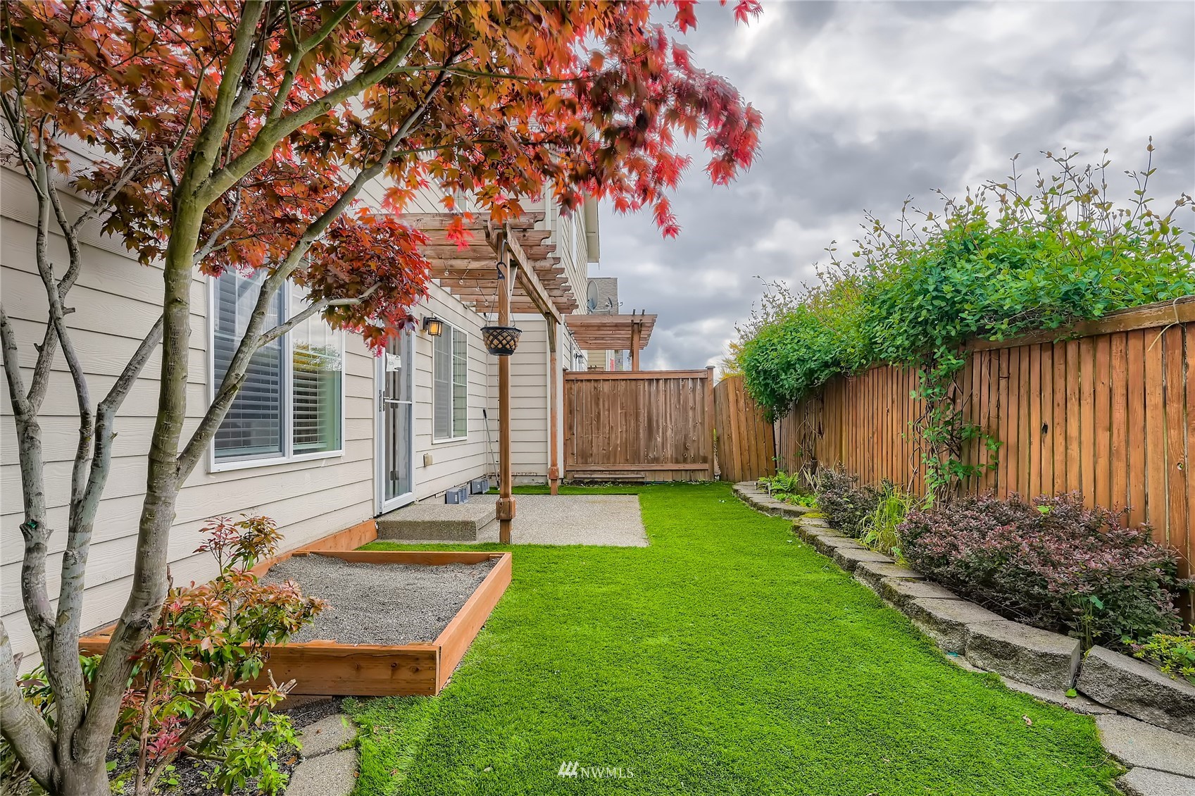 Well, maintained, 3 bdrm, 2.5 bath upgraded Townhome in a warm, quiet neighborhood. Master bedroom is huge (450 sq’) with vaulted ceilings, huge walk in closet & master bath. Additional bedrooms are large also with laundry upstairs. Gas fireplace in LR with stone surround. Huge recently remodeled kitchen with Corian countertops & tile backsplash, built in desk and stainless appliances which all stay! Laminate flooring through kitchen and dining room. Fenced private backyard with artificial grass throughout.