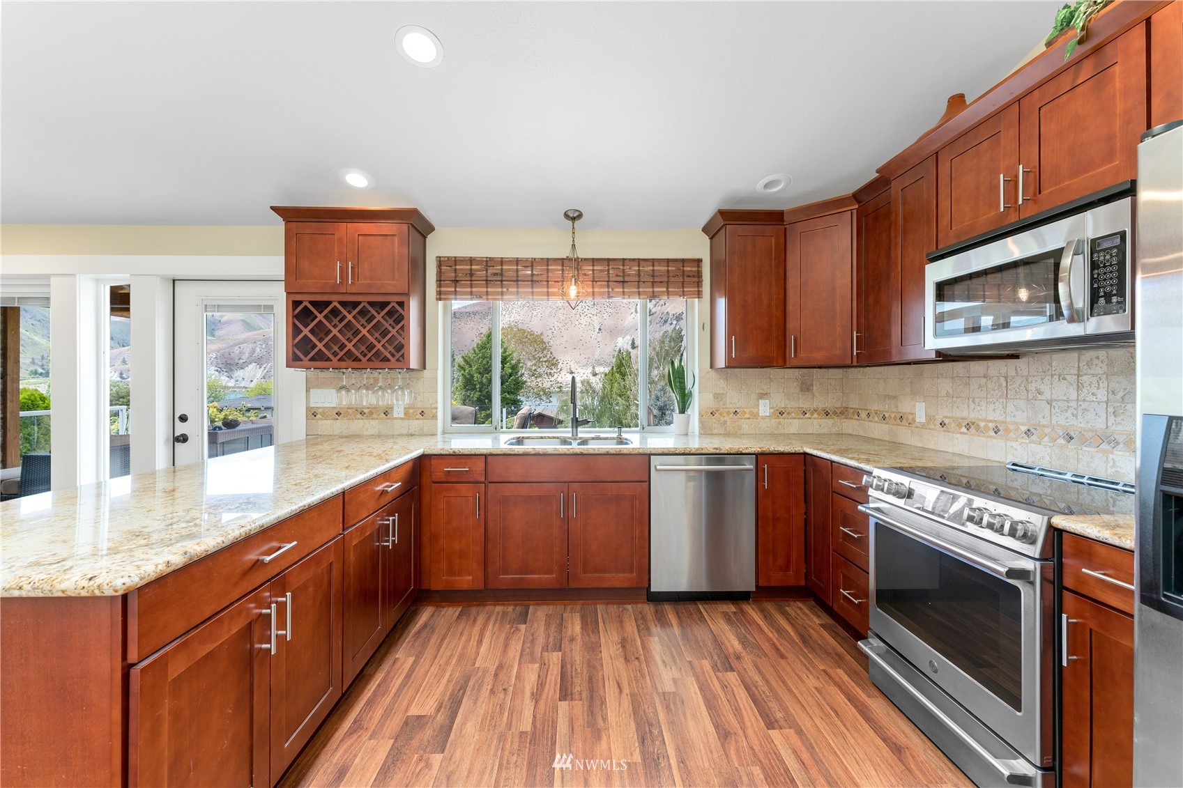 Prepare to be impressed with this remarkable & meticulously maintained Sun Cove charmer! INCREDIBLE outdoor space w/ partially covered newer deck & BREATHTAKING Columbia River VIEWS. Rare access from top & bottom w/ 2 driveways, GARAGE + boat & RV parking w/ 30amp RV power. Home boasts 3 bedrooms, 1.75 baths & 1530sf. Open concept main floor w/ vaulted ceilings, well-appointed kitchen w/ induction cooktop, s/s appliances & granite counters. Elegantly updated main bath w/ herringbone HEATED tile floors! Large downstairs family room and additional bedroom & 3/4 bath. This house is PERFECT for entertaining. Imagine walking just a few steps to the HEATED community pool, clubhouse, tennis courts, boat launch, marinas, parks, beach & much more!