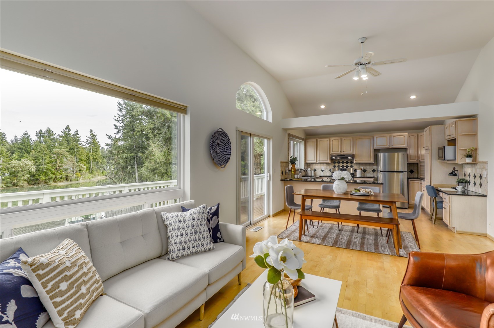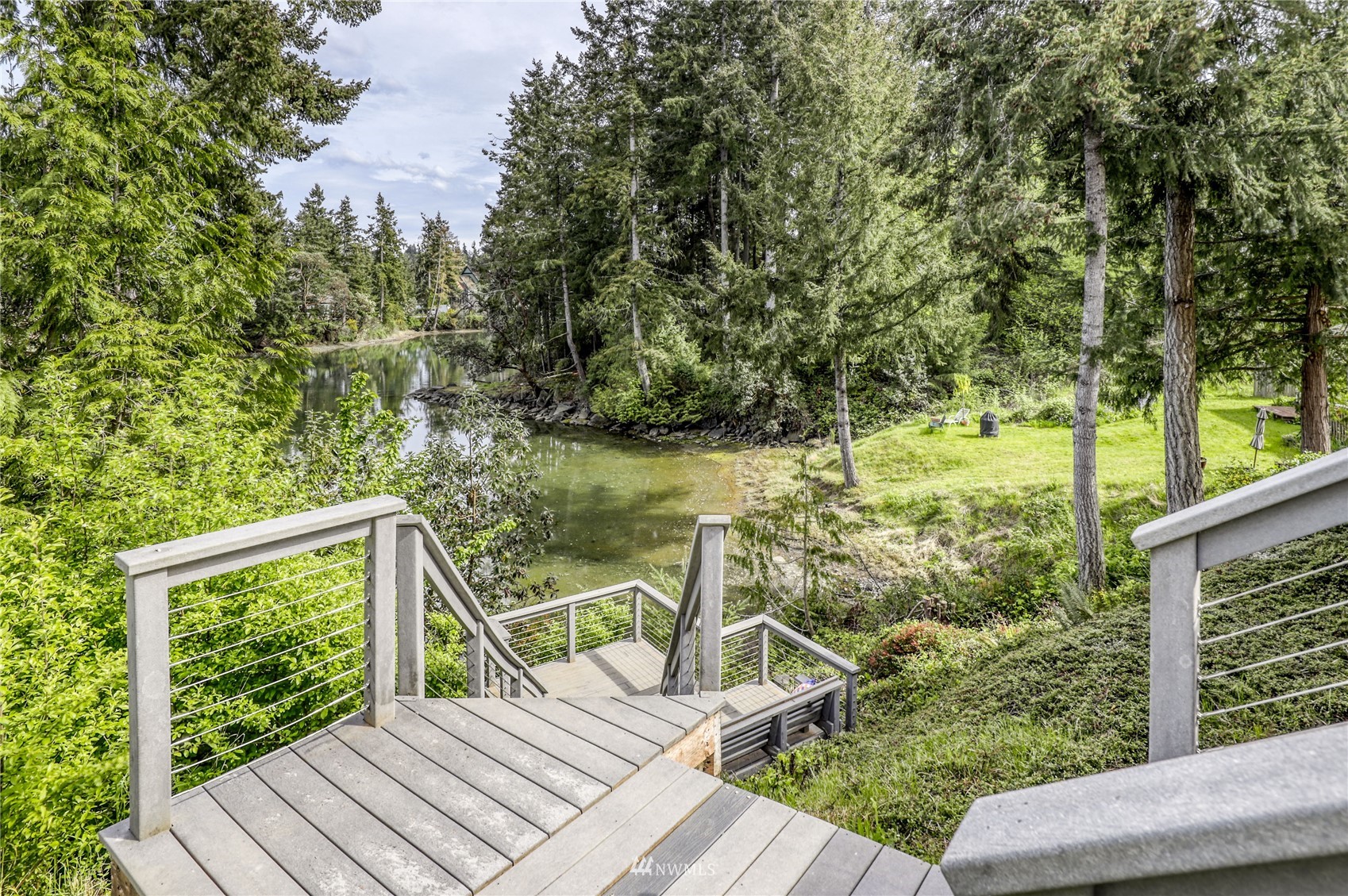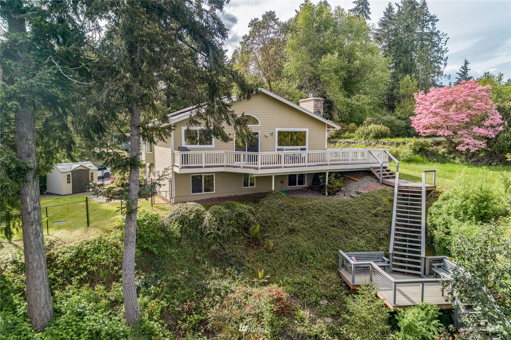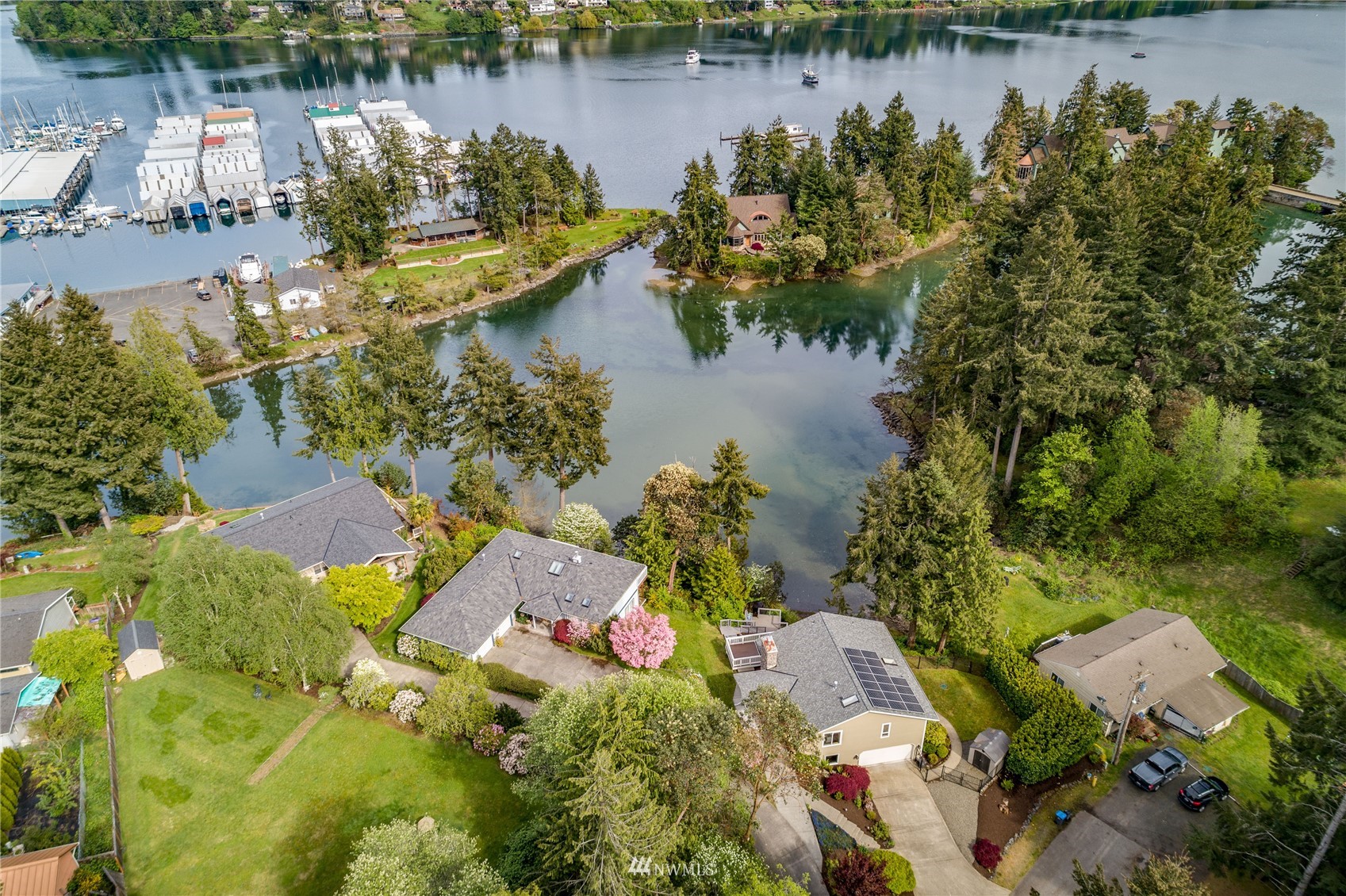 Slip into your kayak for water-way adventures at this Rocky Point waterfront home. Featuring a light-filled open layout w/vaulted ceilings, engineered hardwoods & cozy gas woodstove. Kitchen boasts stainless steel appliances, Bay views & gorgeous labradorite counters w/a sit-up bar. Sliding glass doors lead to large view deck w/room for BBQ & outdoor dining while you watch Herons soar overhead. Main-level owner's suite features five-piece ensuite bath & walk-in closet. Two additional downstairs bedrooms located near full bath and laundry. Solar panels on 2020 roof keep energy costs laughably low! Yard w/garden space & pet-friendly fence. Convenient Central Kitsap location w/easy access to Seattle/Bremerton ferry, shopping & restaurants.
