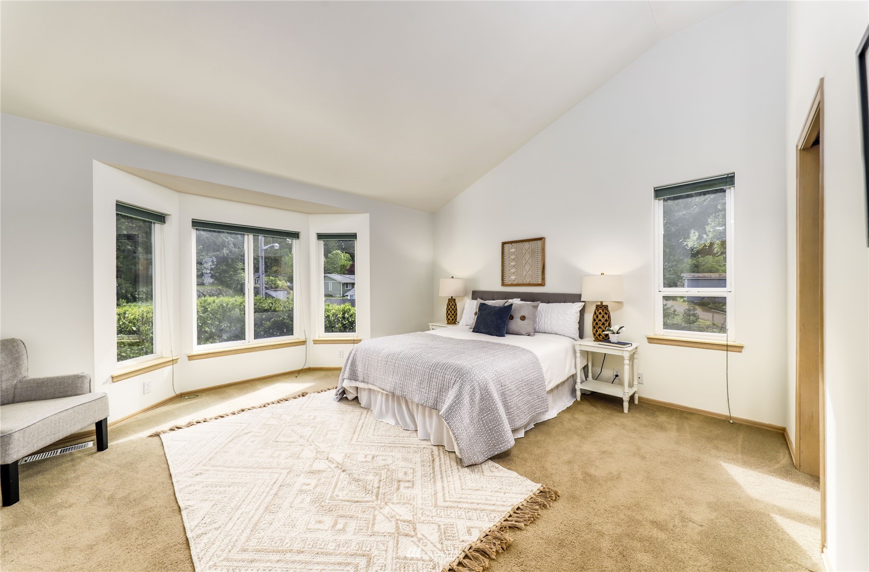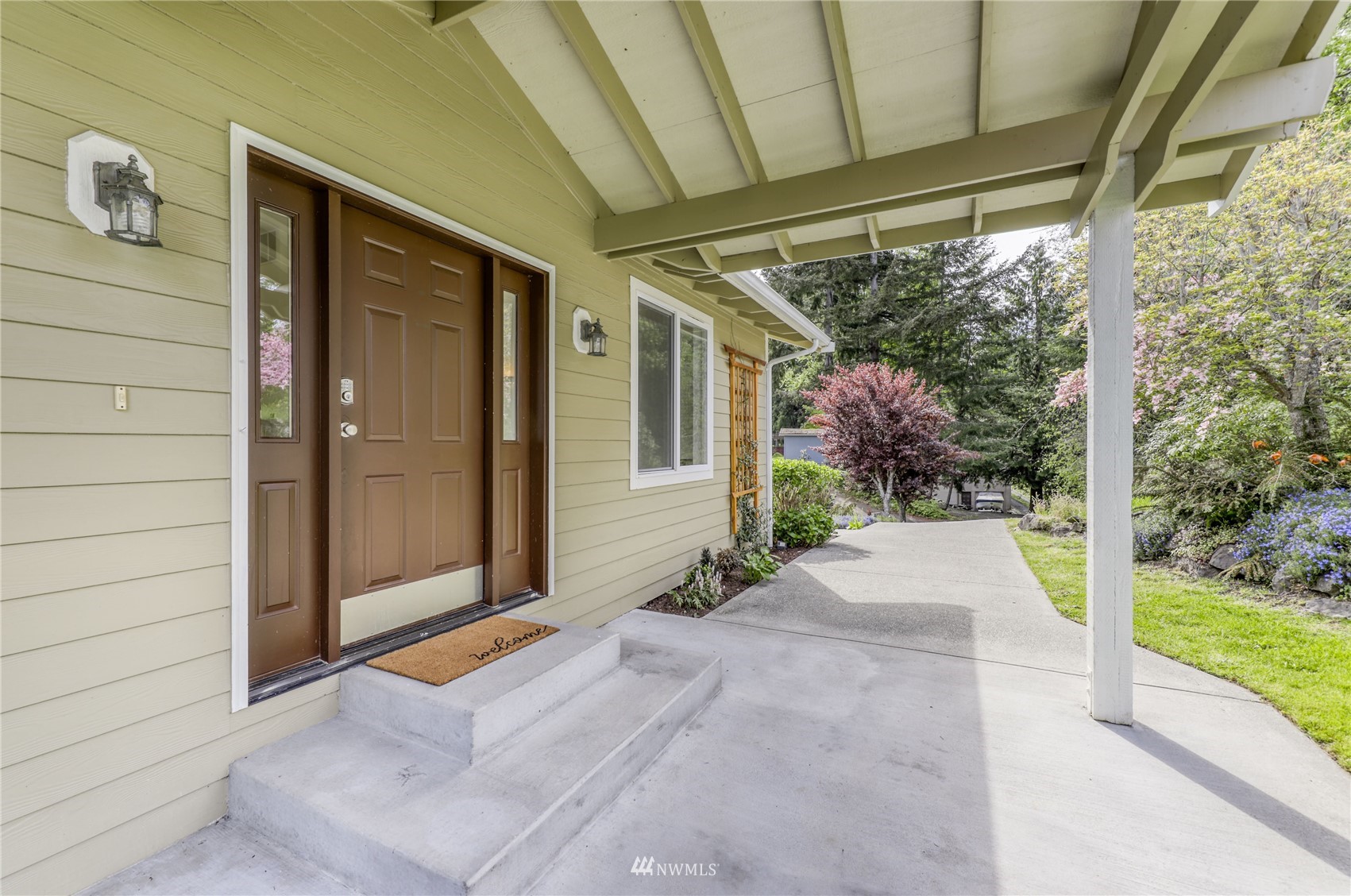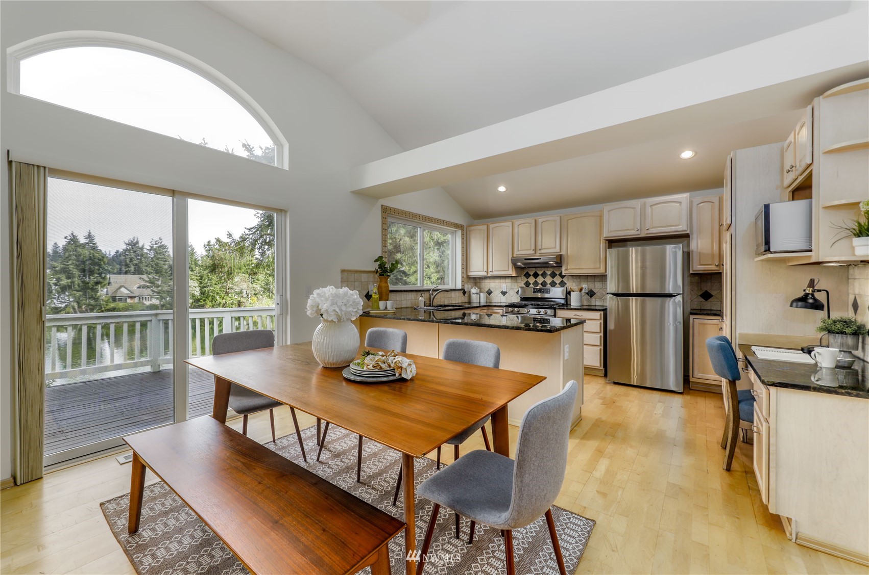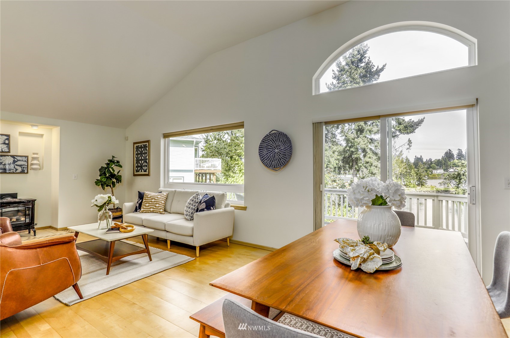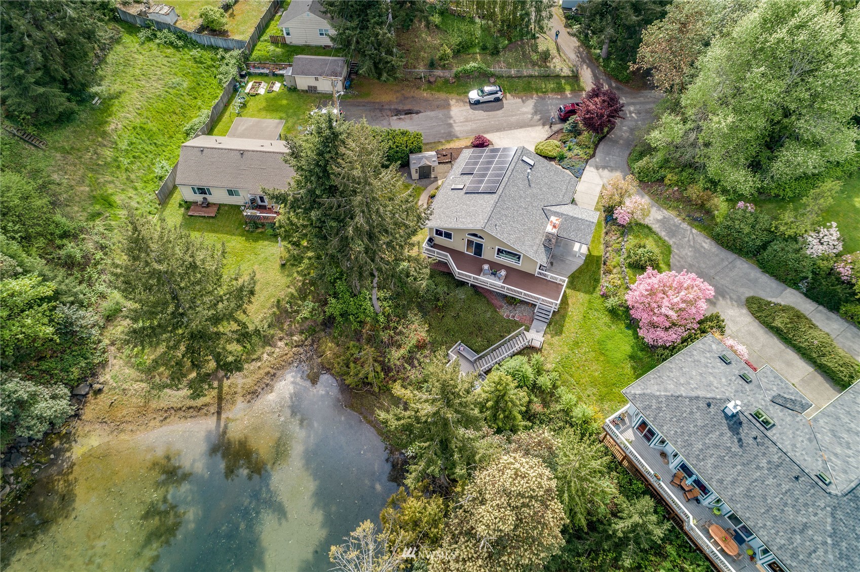 Slip into your kayak for water-way adventures at this Rocky Point waterfront home. Featuring a light-filled open layout w/vaulted ceilings, engineered hardwoods & cozy gas woodstove. Kitchen boasts stainless steel appliances, Bay views & gorgeous labradorite counters w/a sit-up bar. Sliding glass doors lead to large view deck w/room for BBQ & outdoor dining while you watch Herons soar overhead. Main-level owner's suite features five-piece ensuite bath & walk-in closet. Two additional downstairs bedrooms located near full bath and laundry. Solar panels on 2020 roof keep energy costs laughably low! Yard w/garden space & pet-friendly fence. Convenient Central Kitsap location w/easy access to Seattle/Bremerton ferry, shopping & restaurants.