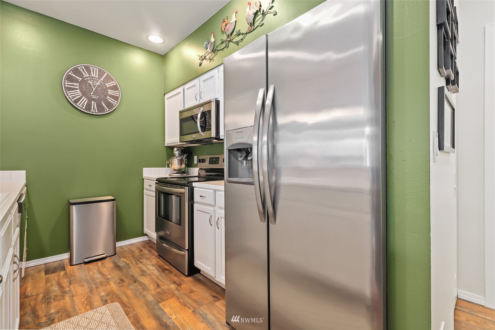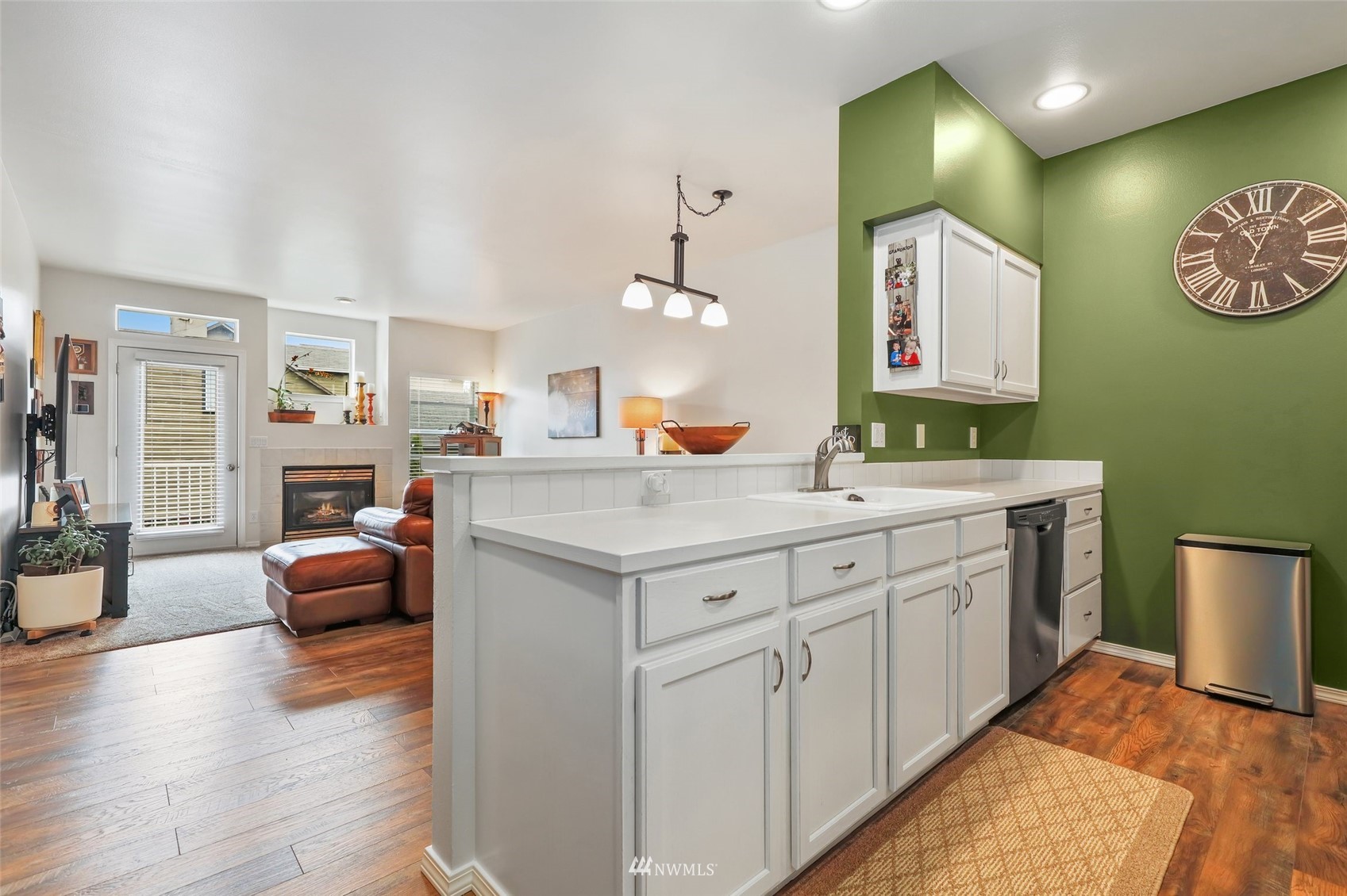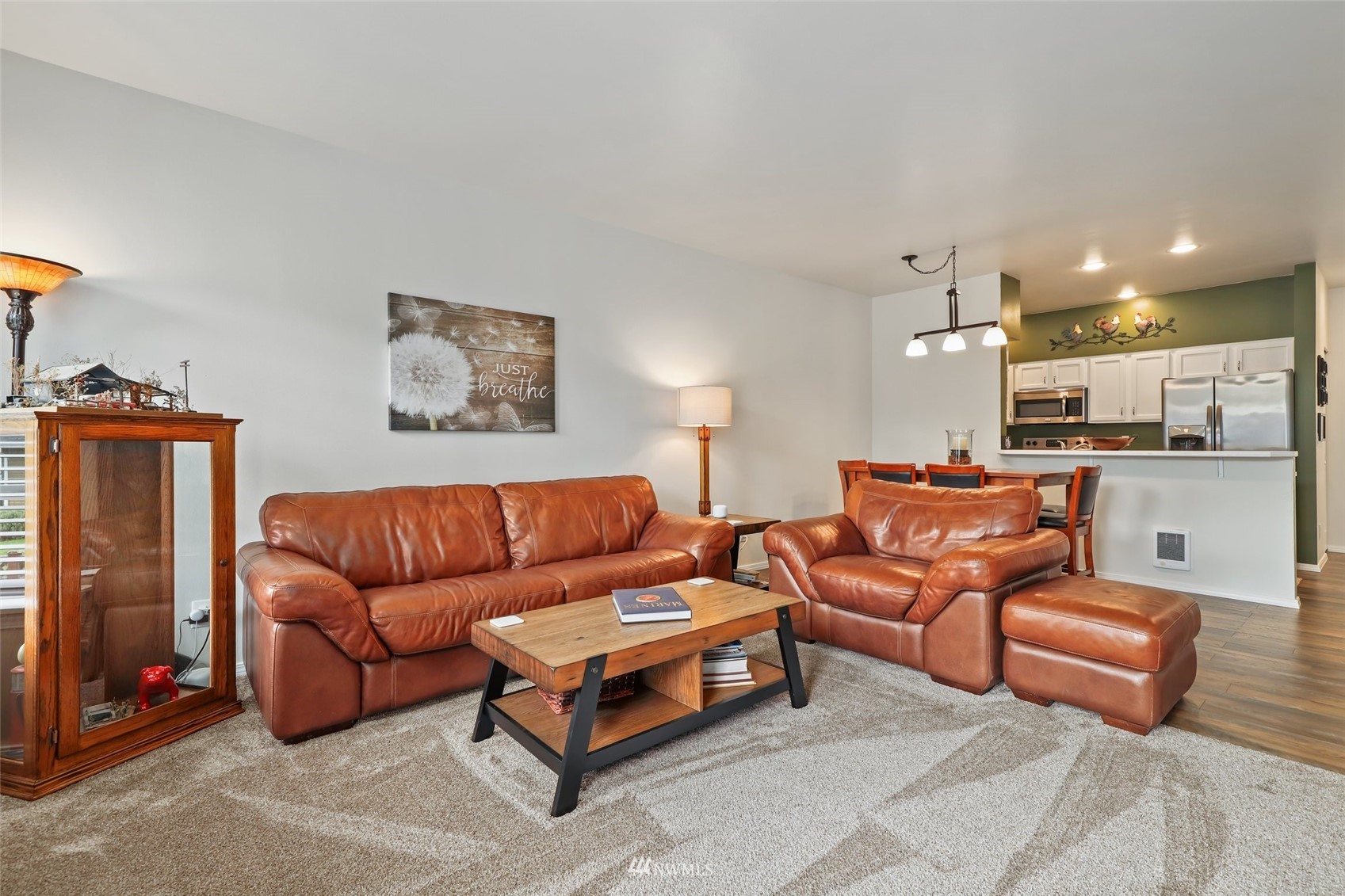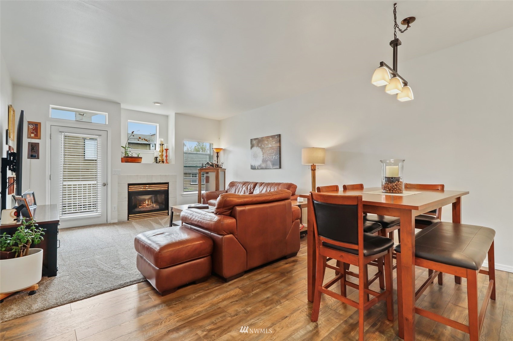 Well maintained updated 2 bedroom 2 bath condo with individual garage and assigned parking spot. New flooring and paint throughout this fantastic condo! This home is light bright and move-in ready. Fantastic open concept floor plan with 9-foot ceilings, lots of windows, and a cozy fireplace. Generous kitchen perfect for entertaining, opening to the lovely dining area. Ideal for first-time homebuyers, downsizers, or investors. Located close to shopping, dining, transit, medical, and schools, with quick access to I-5, and with an easy commute to Everett/Boeing. Low utility costs with zone heating and gas fireplace. Large balcony/deck with storage unit. No rental cap.
