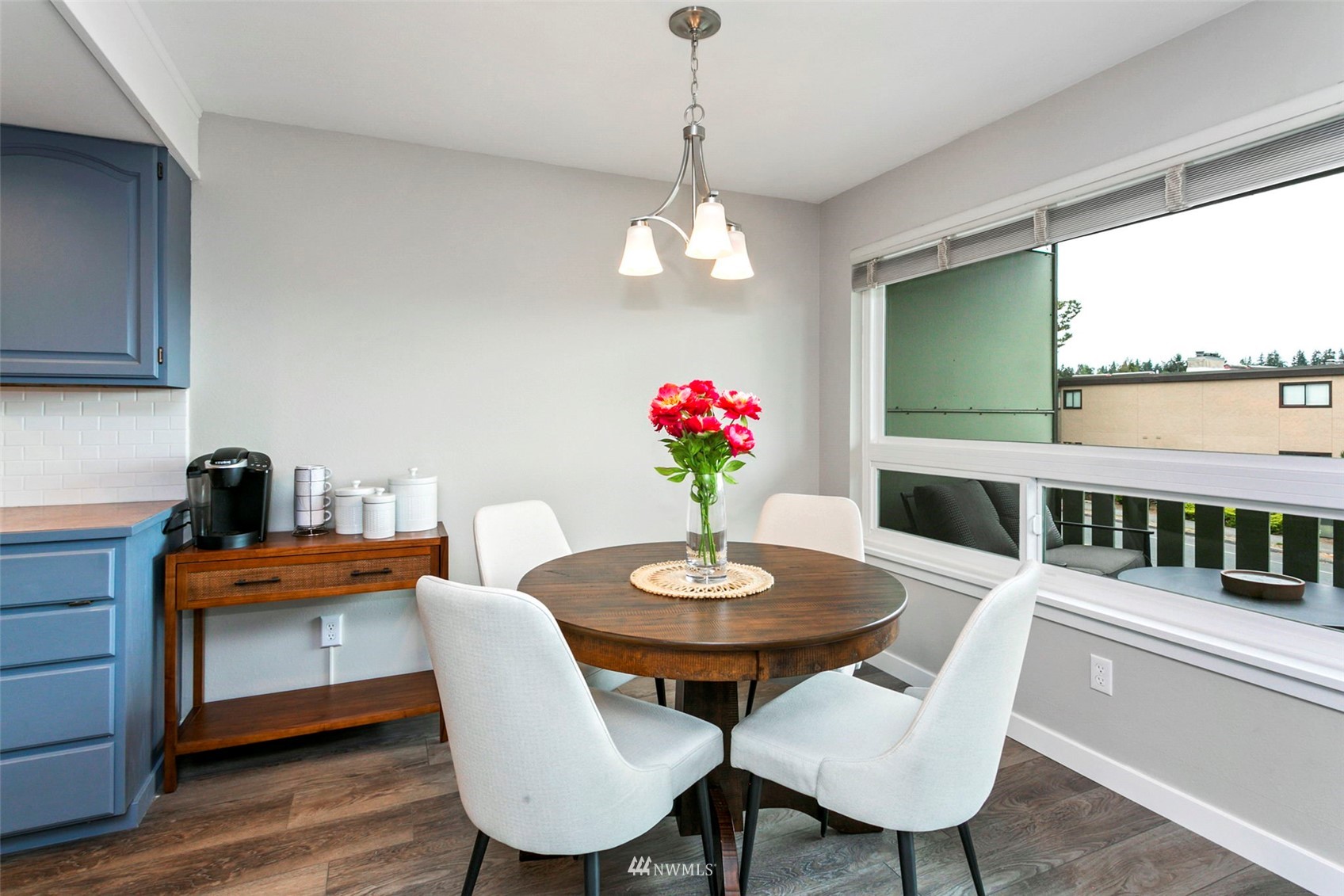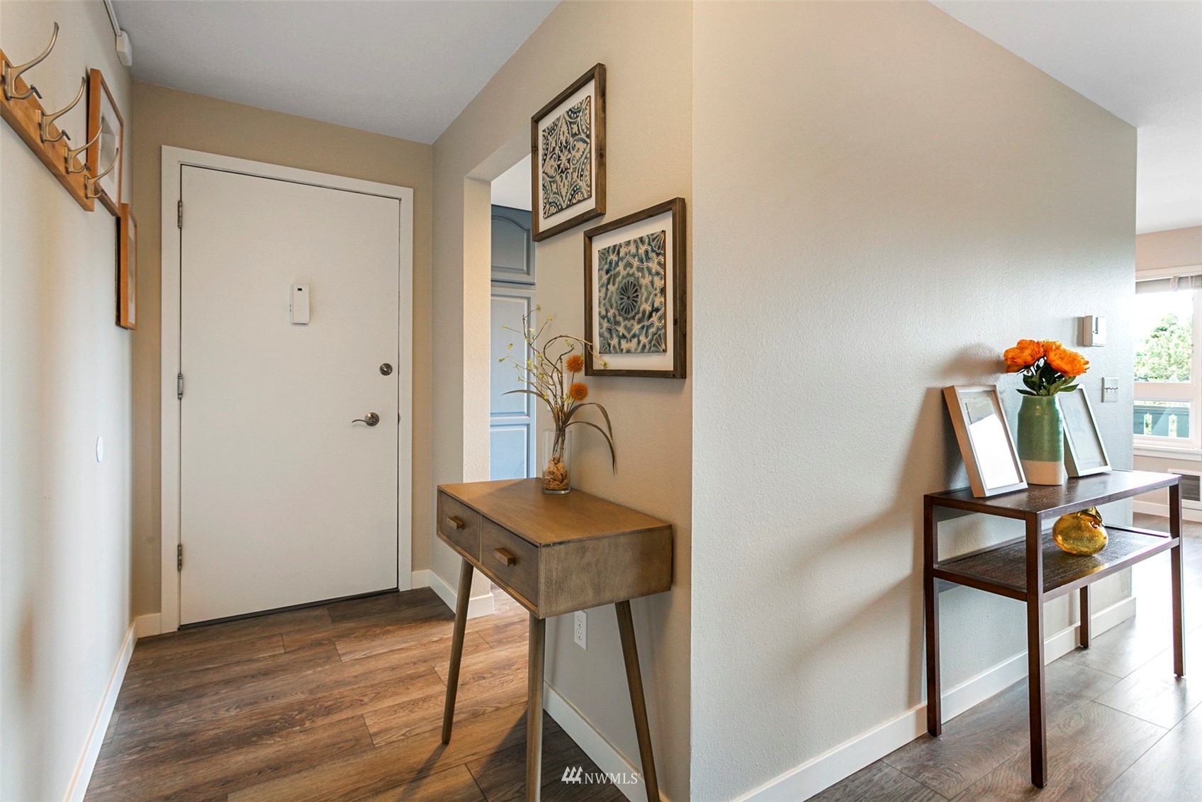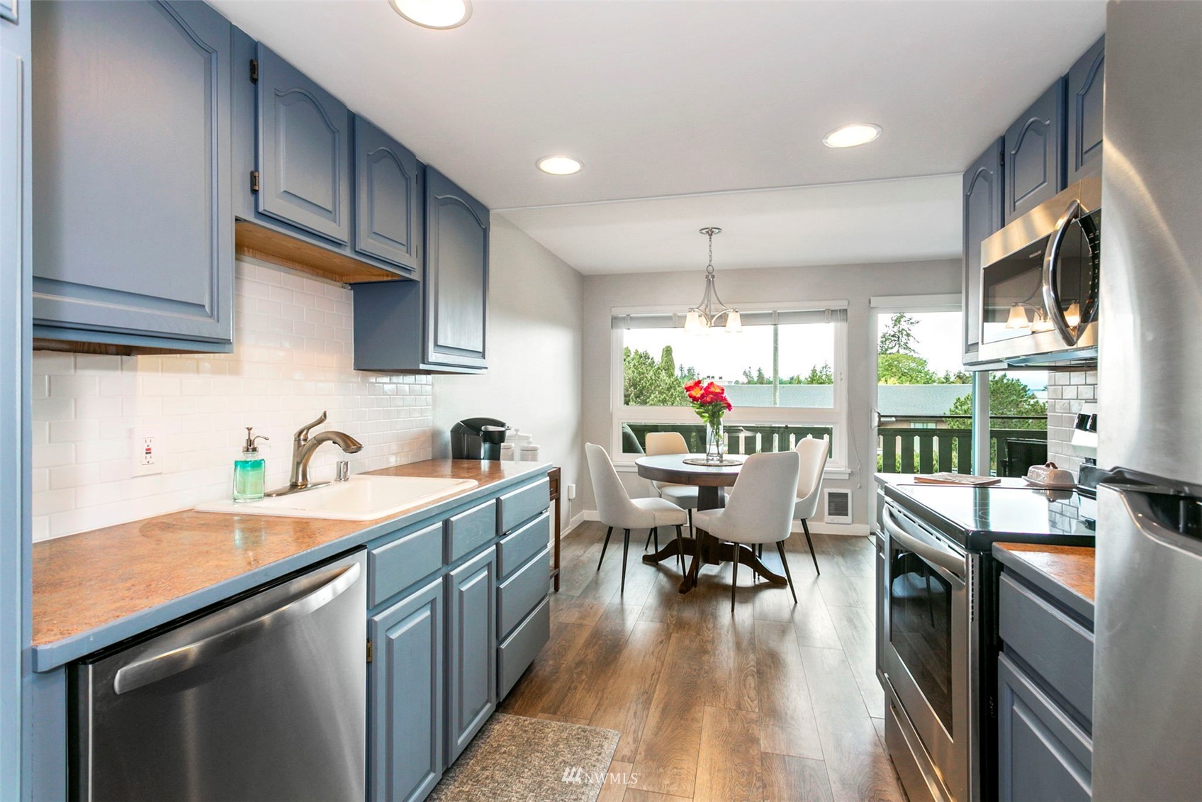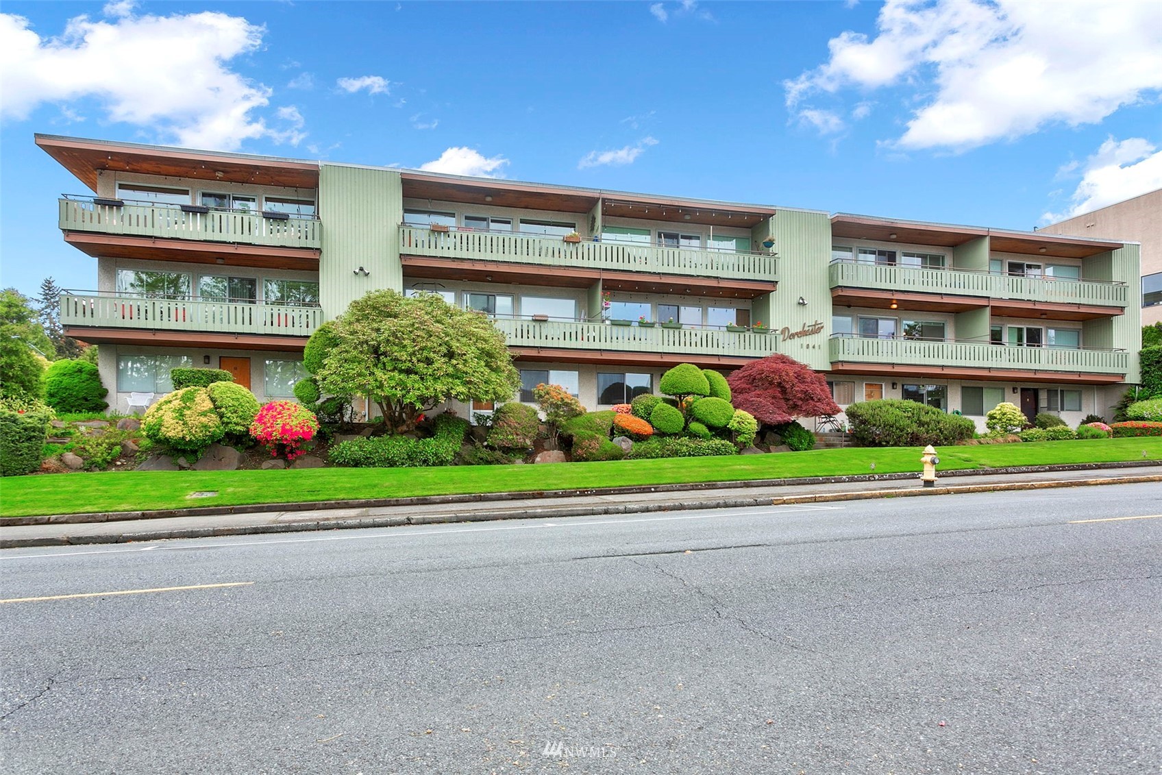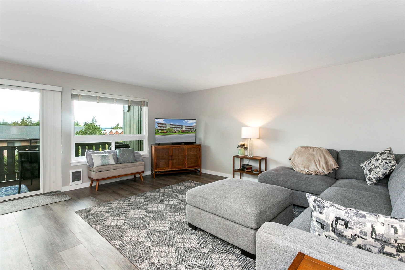 This updated condo has a great location with a view you have to experience to appreciate. Views of both the Olympics and the Sound can be had on clear days. The whole unit has a great face lift. You'll especially love the bathroom which has been completely redone with tiled shower, new vanity, the works. All new laminate flooring throughout. The location can't be beat with great access to downtown, parks, as well as the highways. With low HOA dues, a dedicated parking spot, and a smaller complex, you won't want to miss out on this amazing gem with a view.