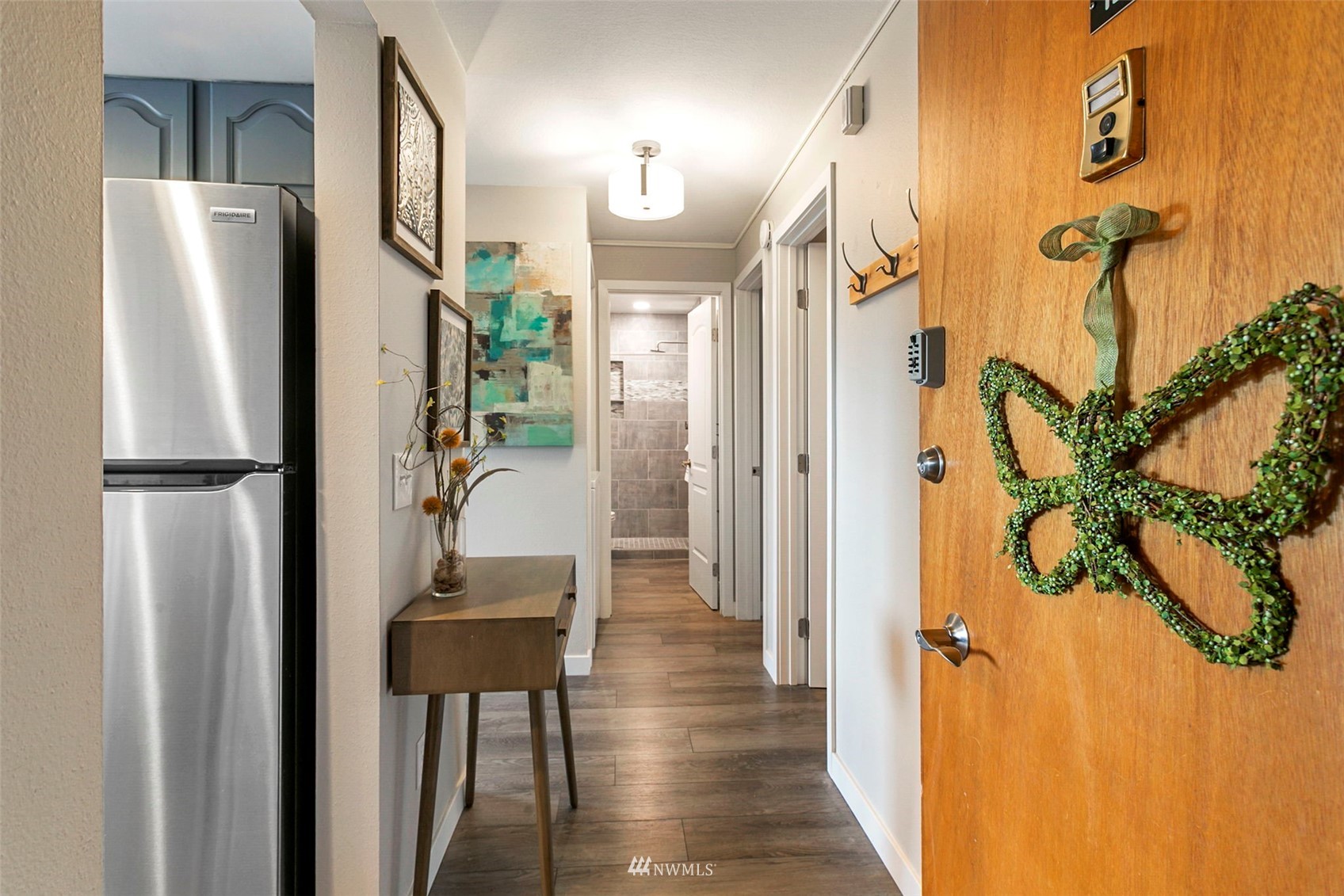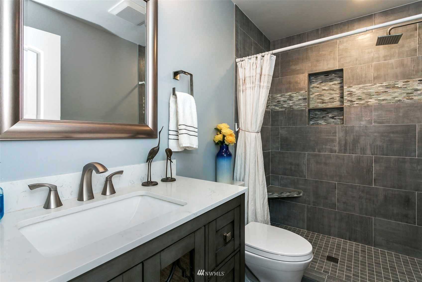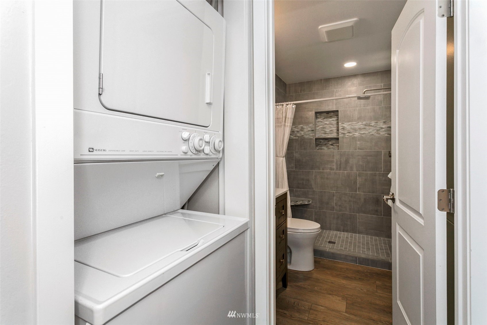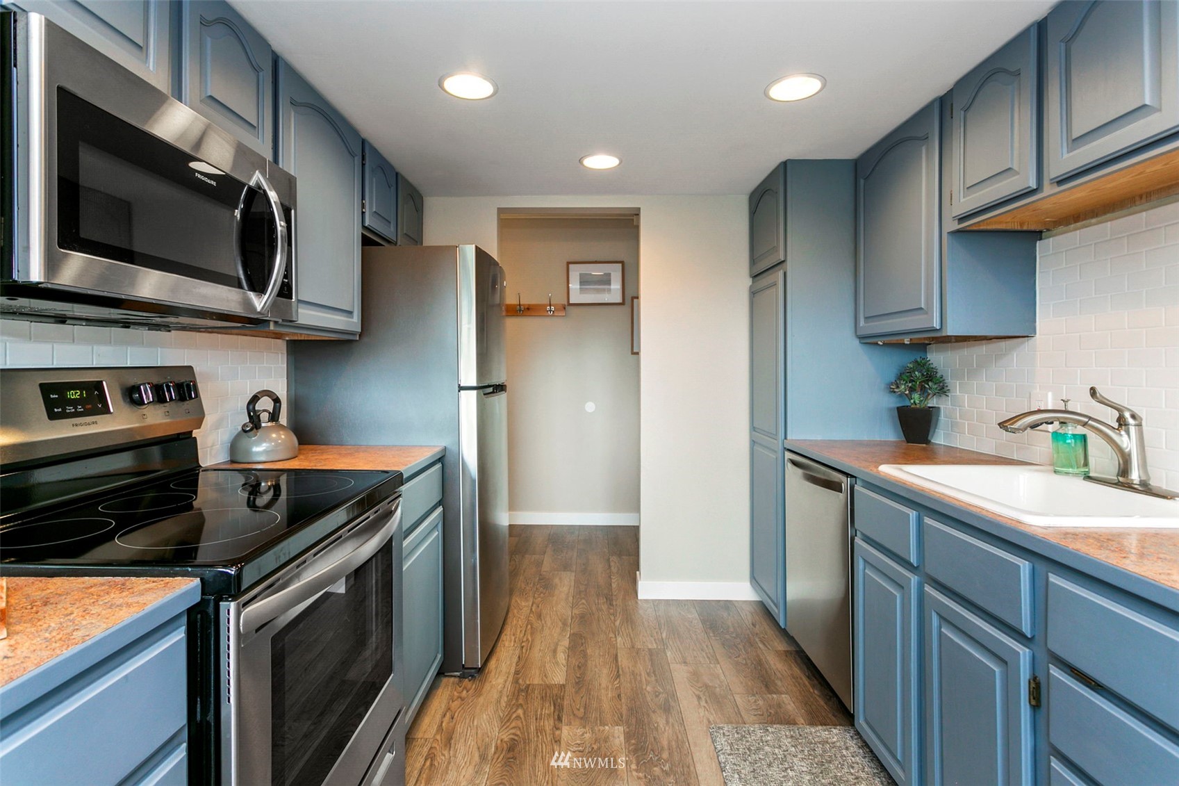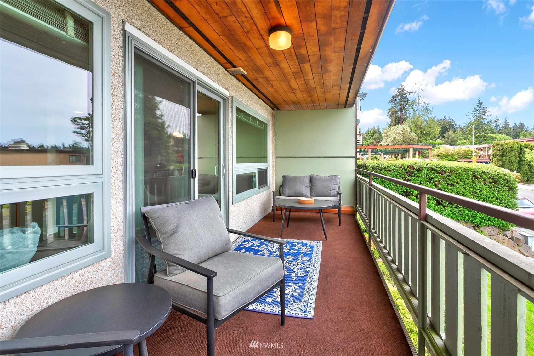 This updated condo has a great location with a view you have to experience to appreciate. Views of both the Olympics and the Sound can be had on clear days. The whole unit has a great face lift. You'll especially love the bathroom which has been completely redone with tiled shower, new vanity, the works. All new laminate flooring throughout. The location can't be beat with great access to downtown, parks, as well as the highways. With low HOA dues, a dedicated parking spot, and a smaller complex, you won't want to miss out on this amazing gem with a view.