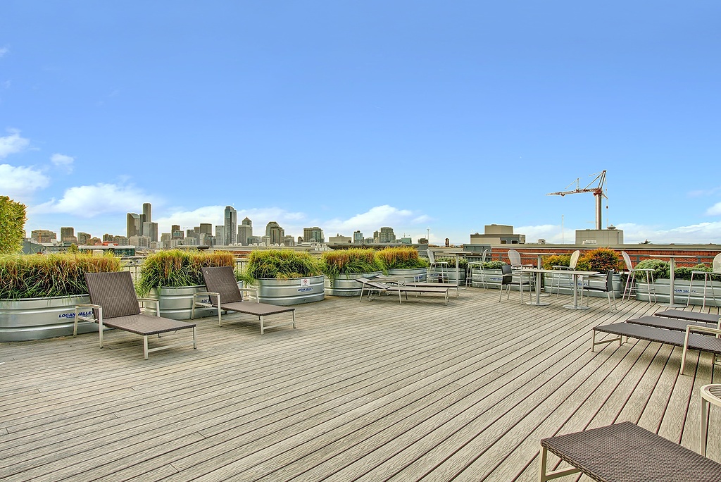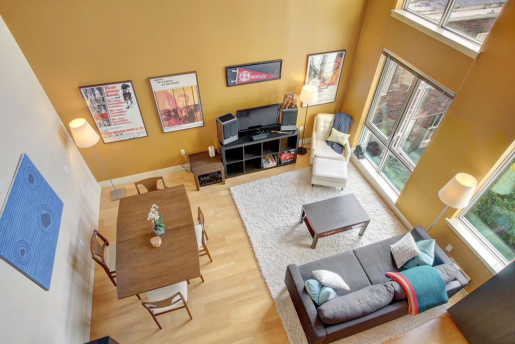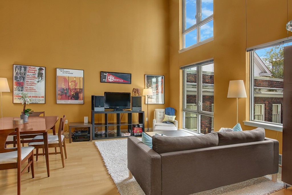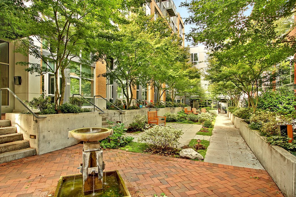 Ultra-cool modern two story loft in the Brix - heart of Capital Hill right on Broadway E. Walk to everything, yet still have secure parking and storage. Spacious home with loft bedroom, master bath, walk-in closet with separate laundry closet upstairs. Downstairs has awesome soaring ceilings and windows in the living area, thoroughly modern kitchen and powder room. Elegant lobby and courtyard gardens are welcoming and fabulous roof top deck with incredible views provide the icing on the cake.