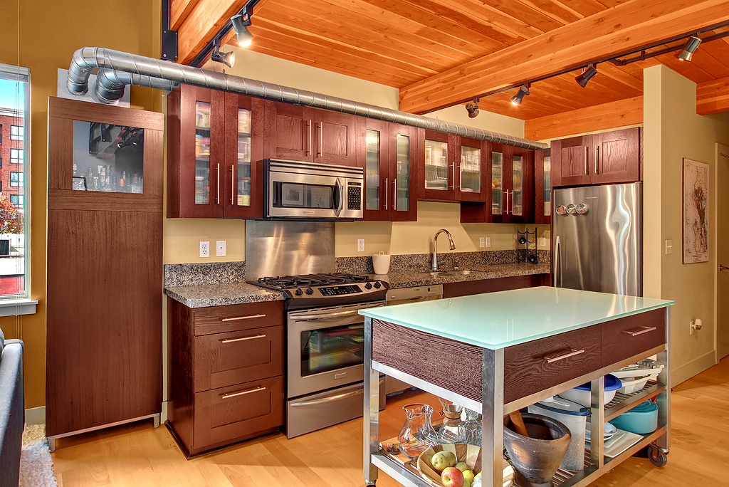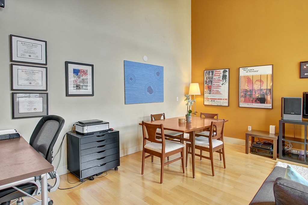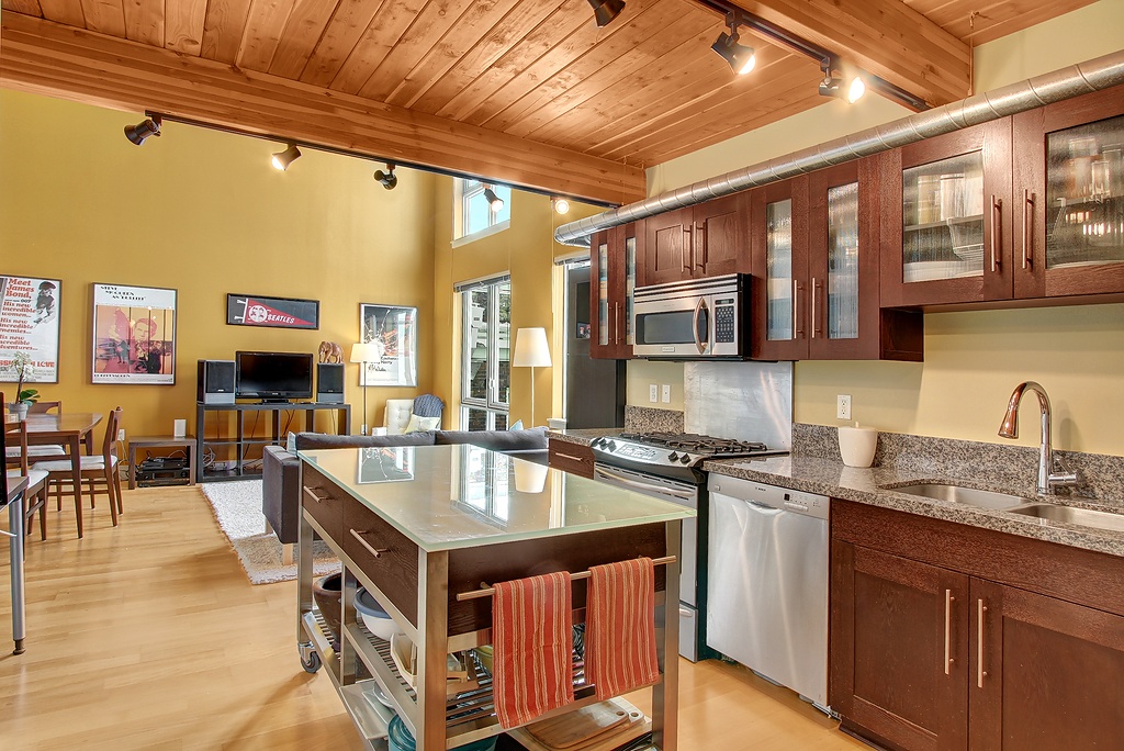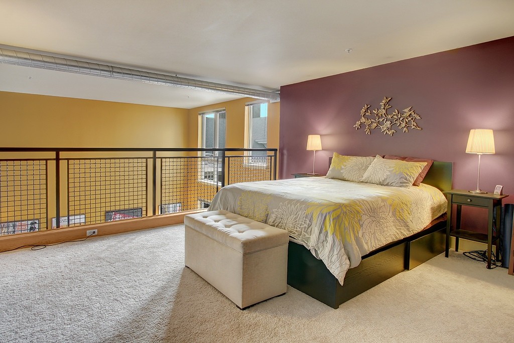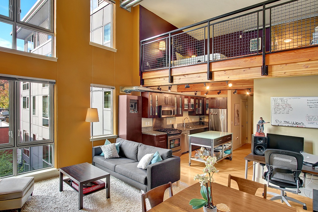 Ultra-cool modern two story loft in the Brix - heart of Capital Hill right on Broadway E. Walk to everything, yet still have secure parking and storage. Spacious home with loft bedroom, master bath, walk-in closet with separate laundry closet upstairs. Downstairs has awesome soaring ceilings and windows in the living area, thoroughly modern kitchen and powder room. Elegant lobby and courtyard gardens are welcoming and fabulous roof top deck with incredible views provide the icing on the cake.