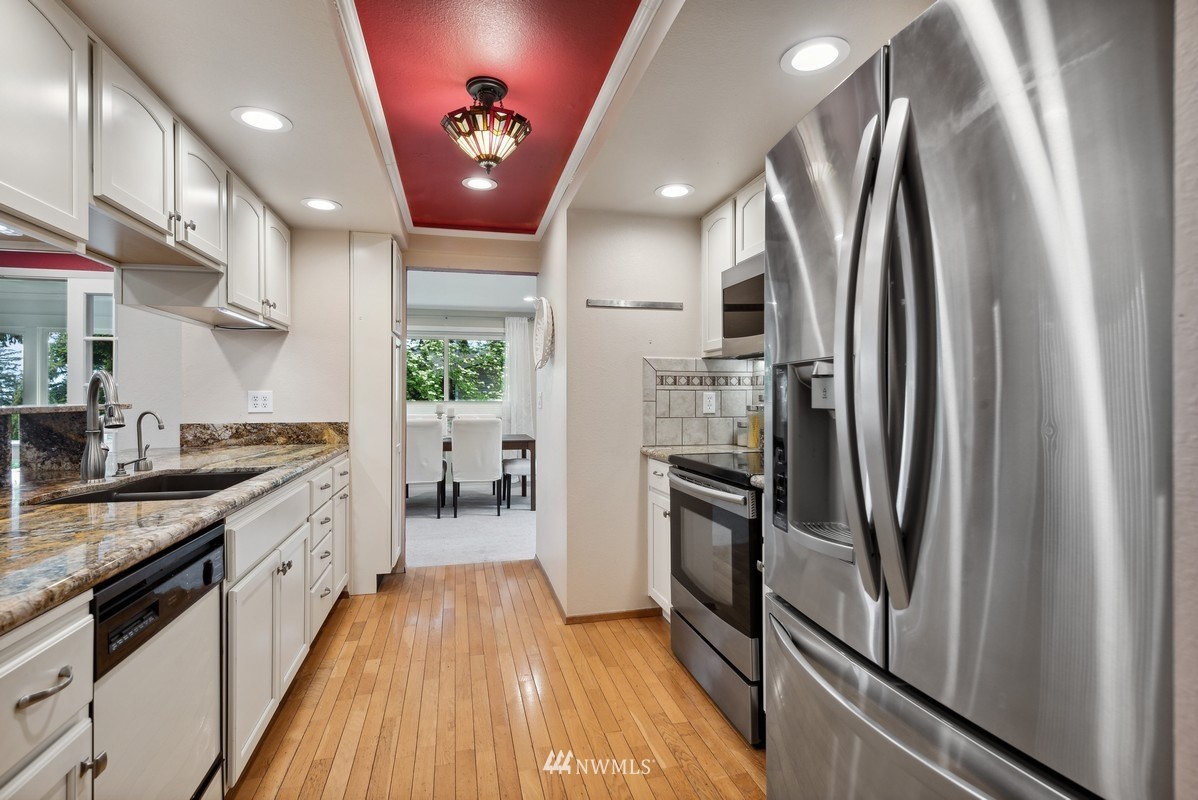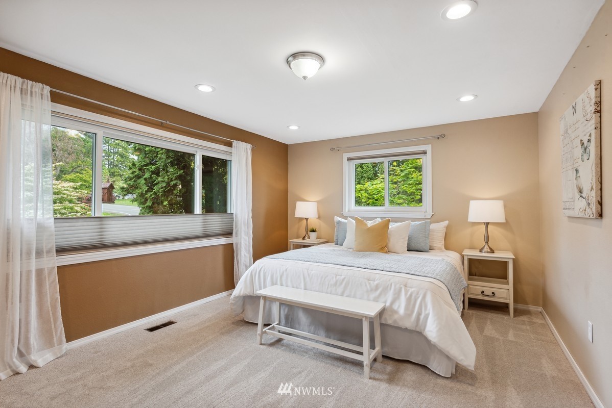 Mukilteo daylight rambler. This well maintained home has seen just one owner since 1987. Main floor living in a quiet private setting. The main floor offers on-suite primary, secondary bedroom, family, living, dining, laundry rooms, remodeled kitchen plus an office. The lower level has 2 more bedrooms, 3/4 bath and a huge bonus room great for guest or possible MIL. The large 2 car garage has an attached workshop and there is a detached shop with power. Newer triple pane windows keep the home warm and quiet. A few more details include LED lighting, hardwood floors, tile and new carpeting. Located just minutes from the Mukilteo Ferry, 99 and I-5 this great home has much to offer. Just move in and relax!