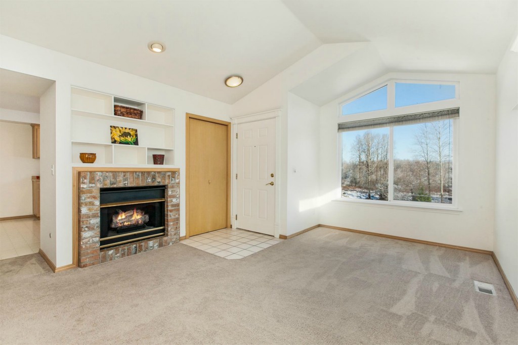 Lake Stevens Condominium. Covered front porch, tiled entry to bright living room w/ vaulted ceilings & gas fireplace, all new carpeting throughout. Large kitchen & eating nook, skylight, plenty of counter space, gas oven/range!, new dishwasher. 2 good size additional bedrooms, full bath. Plus a master suite w/ double closets & full bath w/double sink. Deck off master w/storage. 2 car tandem garage, w/workbench. All Appliances stay. Couple blocks to the lake, library, Jay's Market. Easy living.
