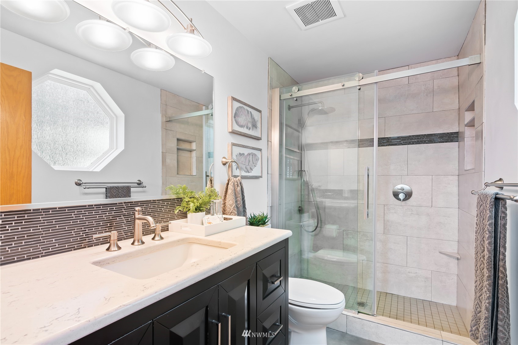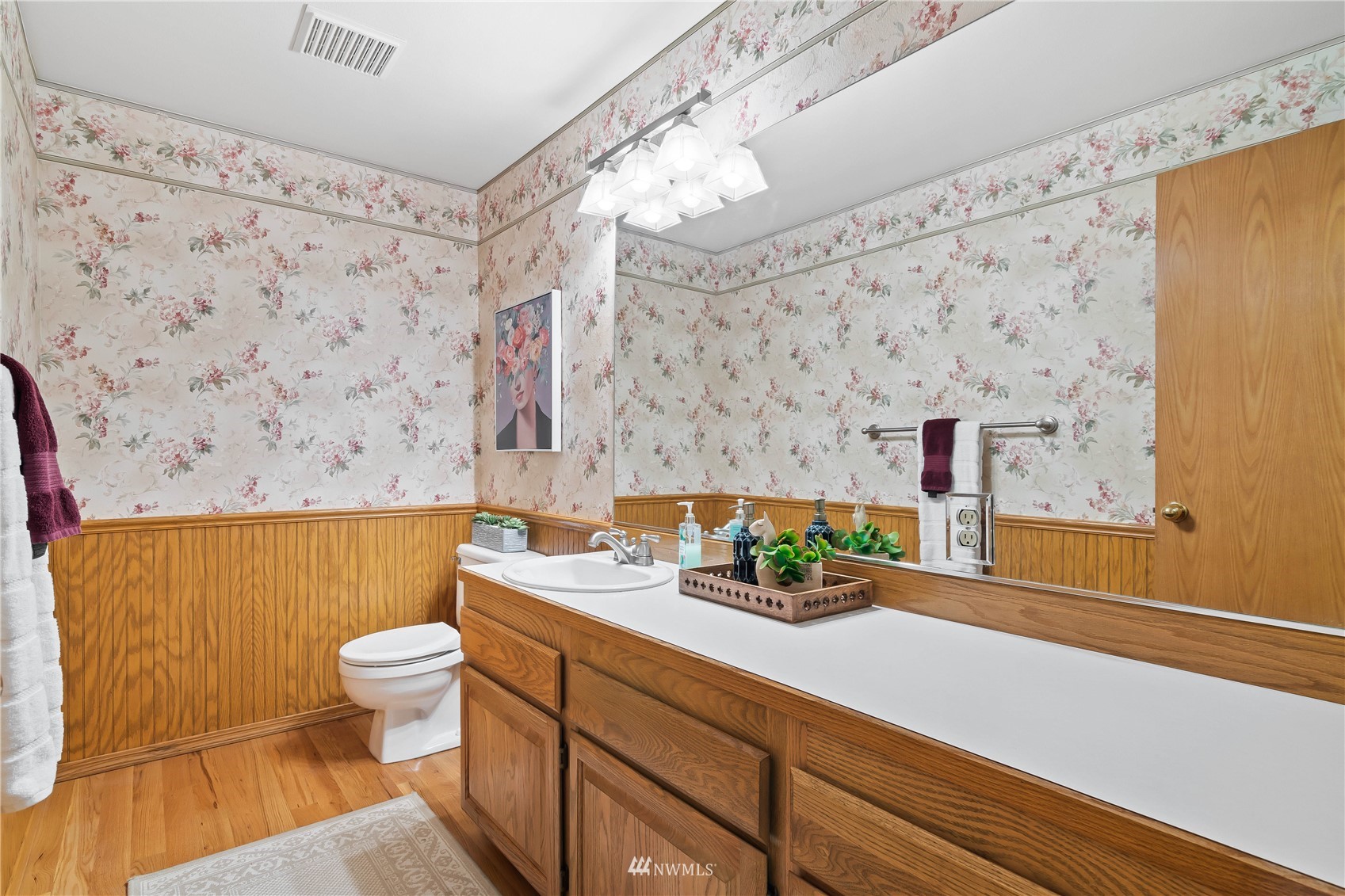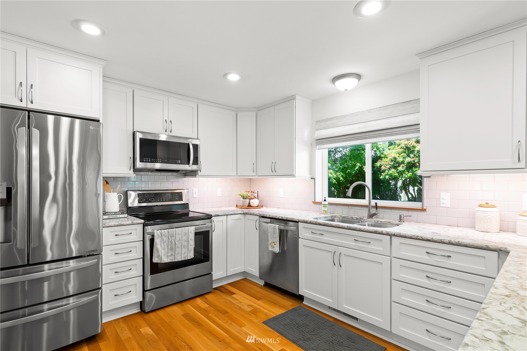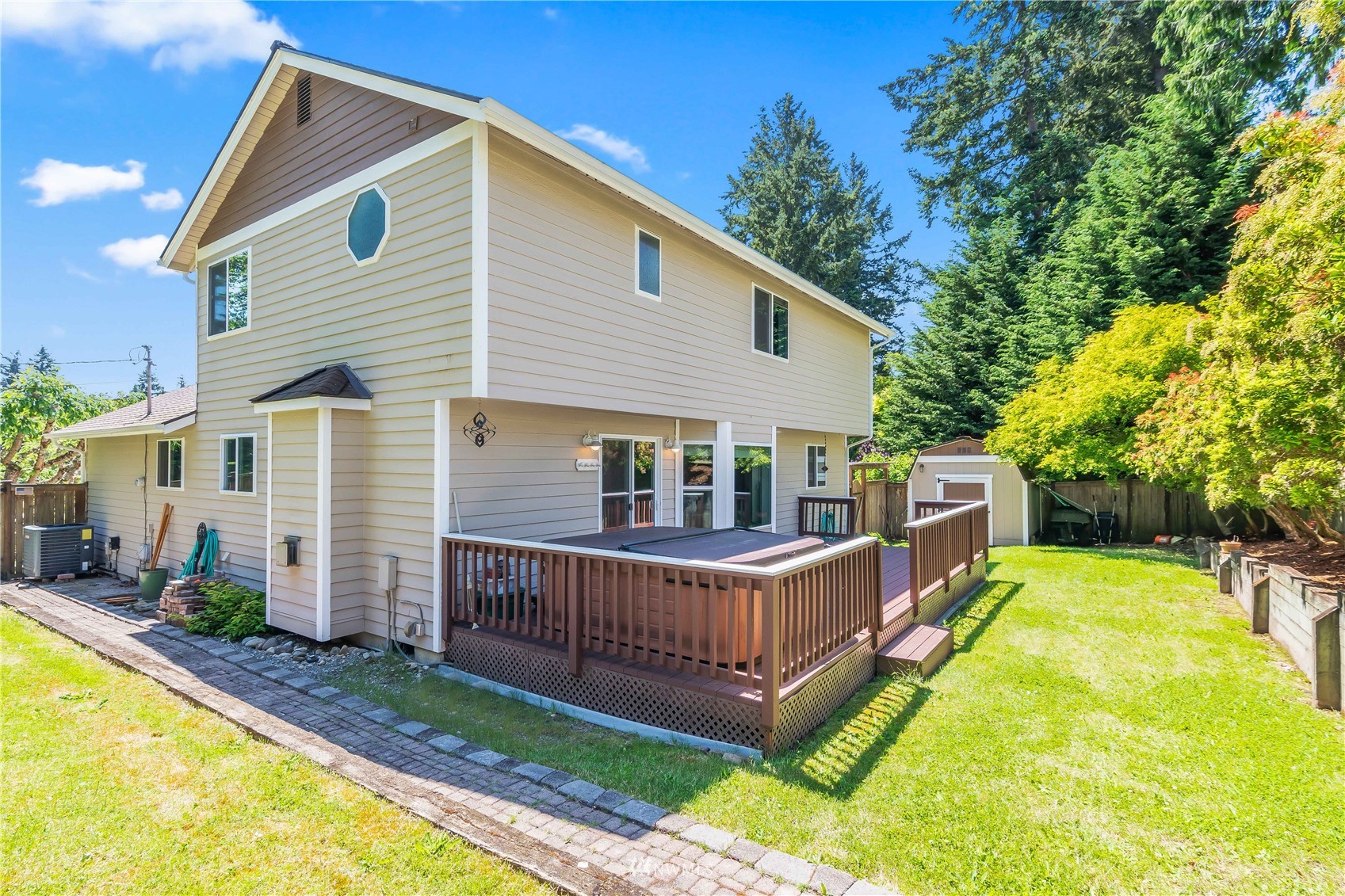 Finally, a home in sought-after Edgewood on over a half-acre of mature and exquisite park-like landscaping. The giant back deck is perfect for entertaining or at the end of the day soak in the relaxing hot tub and forget your worries! The inside does not disappoint. Real wood floors greet you as you walk past the light-filled formal living room down the hall to your new tastefully updated kitchen with all new cabinets, countertops, and appliances! The kitchen opens up to a cozy family room with custom built-ins! Head upstairs and you will find 3 bedrooms plus a hobby/office room. The primary has a beautifully updated 3/4 bath & walk-in closet! Other features include AC, RV parking & sprinklers. All close to shopping, freeways & the sounder!