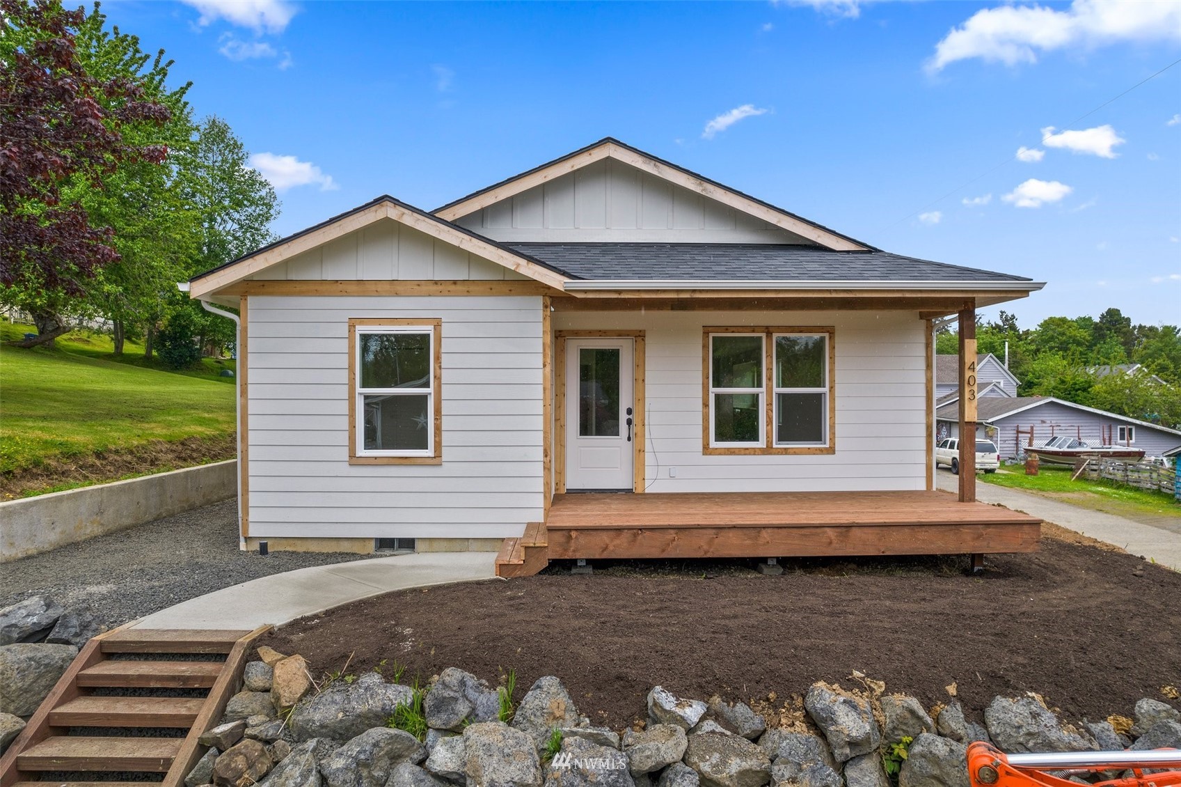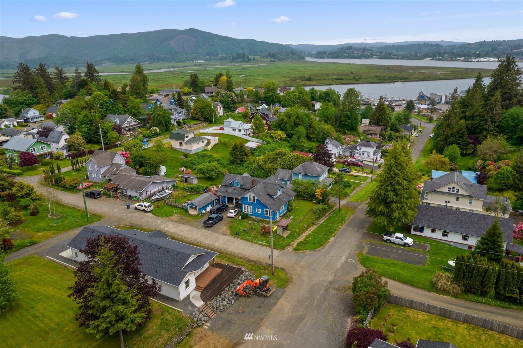 Turnkey new construction w/ river views! This home features beautiful front covered deck, bright & airy living thru-out home w/ an abundance of natural light. Picturesque views from the living room w/ open floor plan thru kitchen. Oversized island in kitchen w/ butcher block counters, soft close cabinets & doors, tile back splash, recessed lighting & stainless appliances. Large utility/mudroom w/ storage & sink off back entrance. Spacious primary bed w/ attached bath, including walk in closet. 2 additional bedrooms & a full bath w/ shower/tub combo. Low maintenance landscaping. Exterior canned lighting around home, hot/cold exterior spigot & attached 2 car garage w/ car charger! Home is located close to public dock & walking trails.