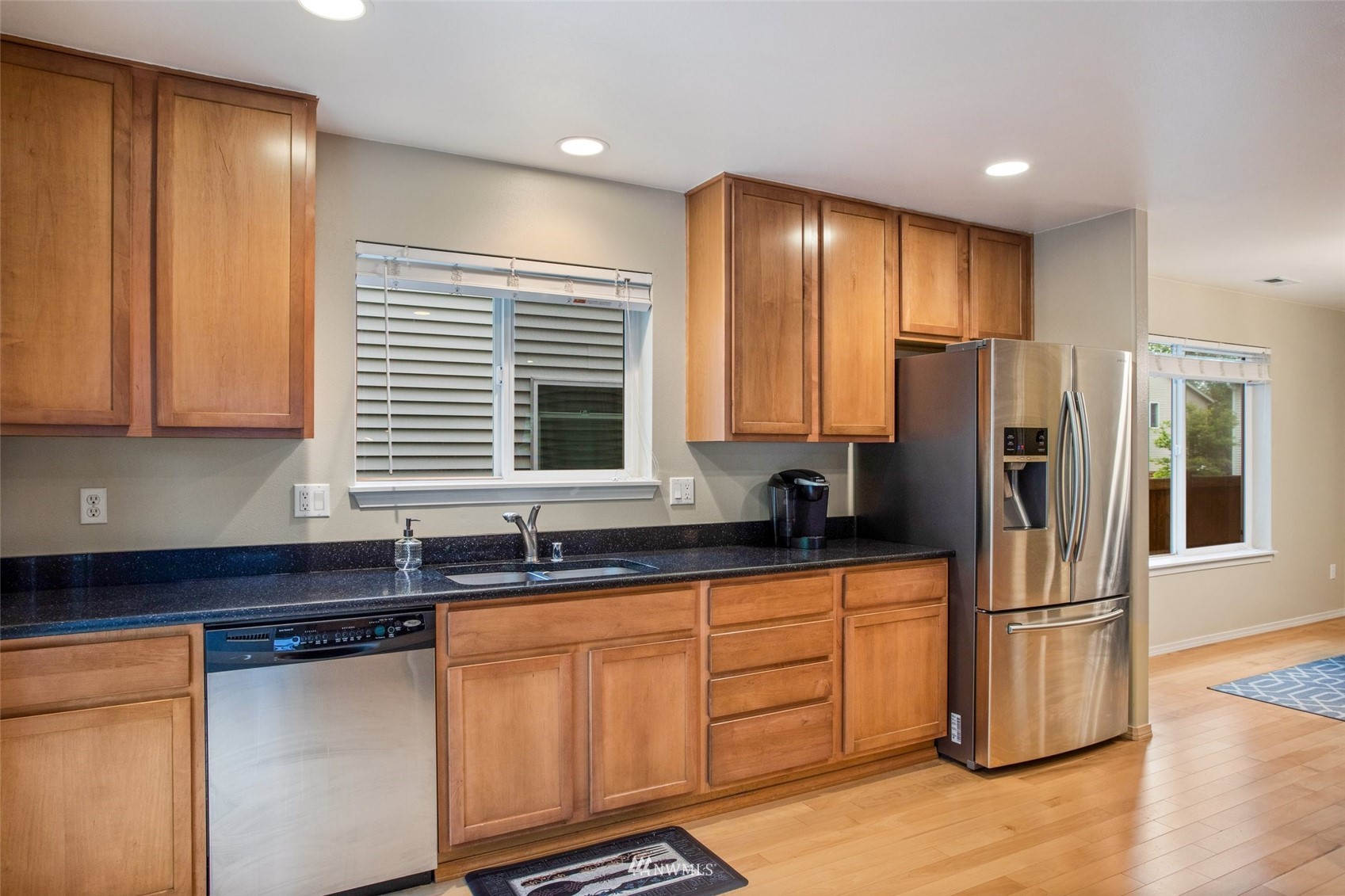 Beautiful, clean, & well maintained Quadrant resale. You'll love the custom upgrades! Tucked up along a greenbelt for privacy & quiet. Hardwood floors throughout the entire home, large living area w/gas fireplace. The kitchen is the heart of the home & has exquisite slab granite counters, pantry, & stainless appliances. The large eating bar will keep your guests close while you cook up a gourmet meal. Upstairs has a huge loft/play area and 4 large bedrooms including Primary bedroom with walk-in closet and jetted tub. Great neighborhood and Kent location close to Sunrise elementary and Meridian Middle school. Just minutes from shopping, Kent station, freeways and more!