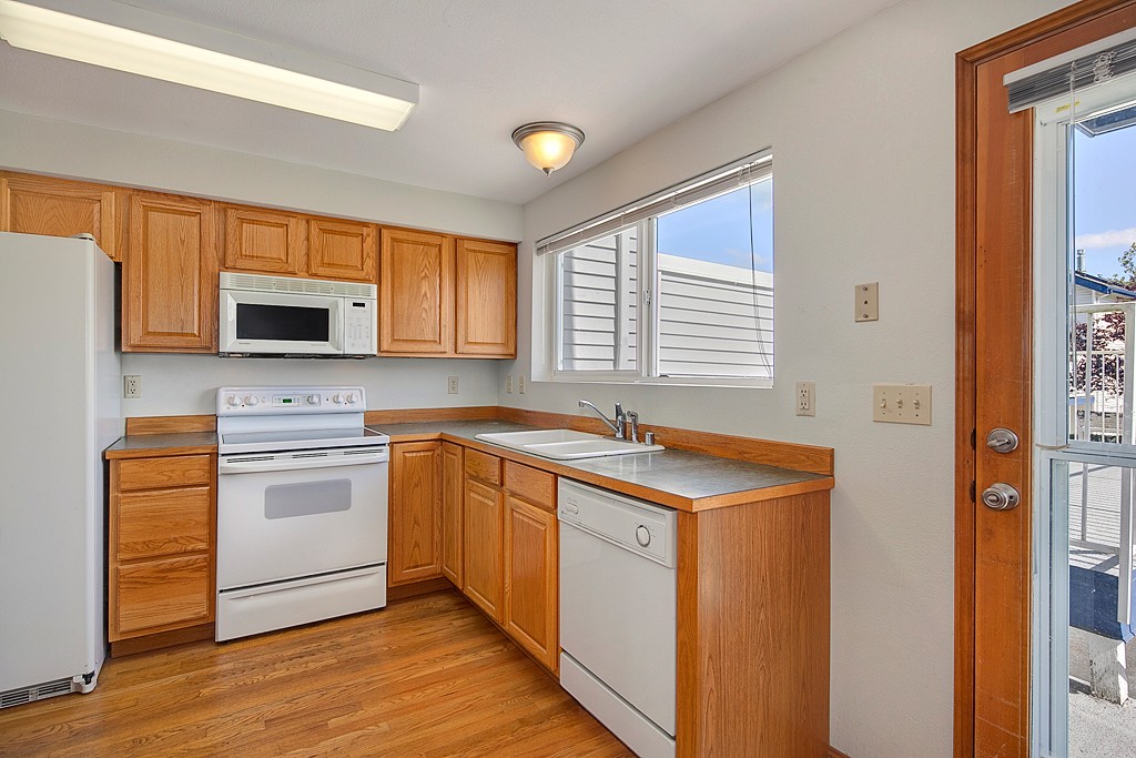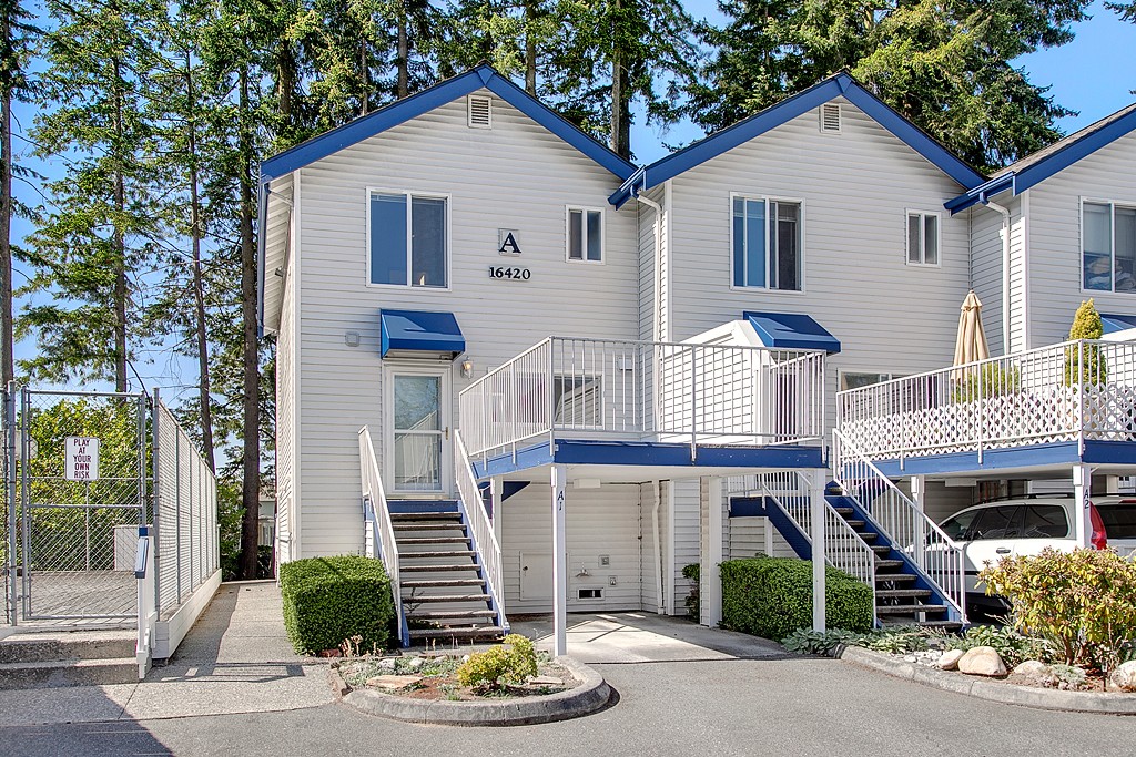 Fabulous end unit! Wonderful 2 bedroom/2.5 bath condo townhome with vaulted ceilings and skylights, beautiful natural light. Spacious rooms and closets. Hardwood floors in dining and kitchen areas. Open BBQ deck which provides plenty of room for entertaining. Two parking spaces. Just minutes away from Alderwood Mall and freeway. A MUST SEE!
