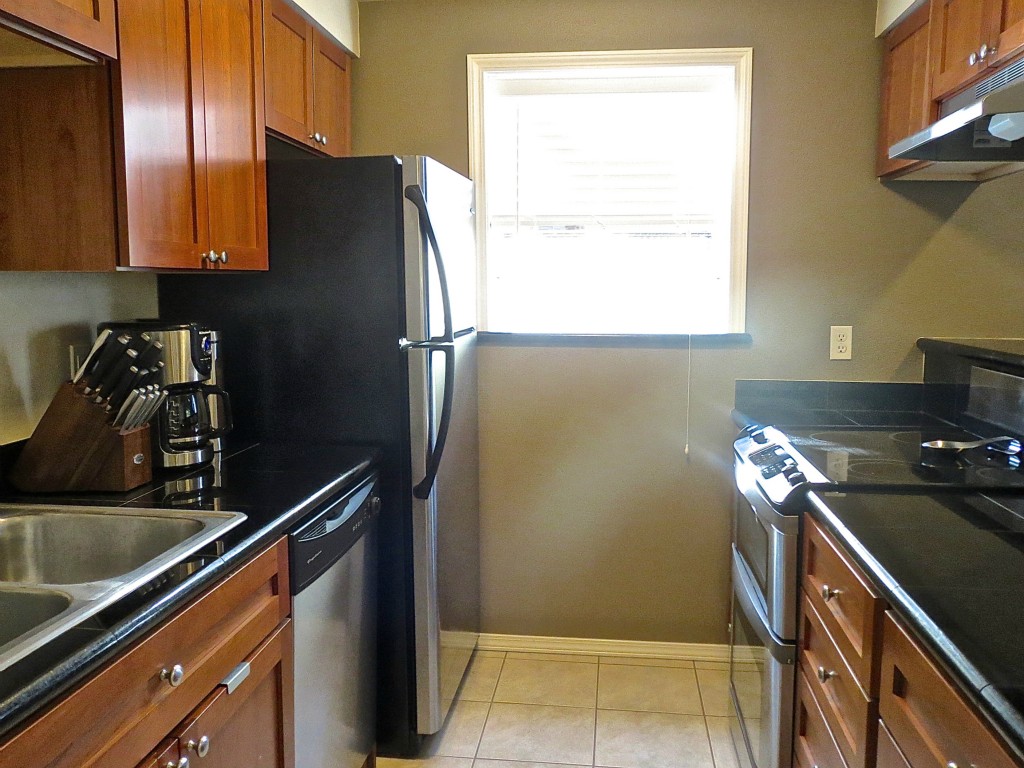 Fantastic Greenwood Condo that's move in ready w/ low HOA dues! 2 bed, 1.5 bath townhouse style unit features newer carpet & paint throughout, covered & secured parking. Kitchen has a walk in pantry, granite tile counters, stainless steel appliances, bar overlooking the great room and ALL appliances stay. Balconies off the great room & another off the master bedroom that are graced w/ shade & privacy from the mature landscaping. Close to amenities, yet quiet. Don't let this one get away!