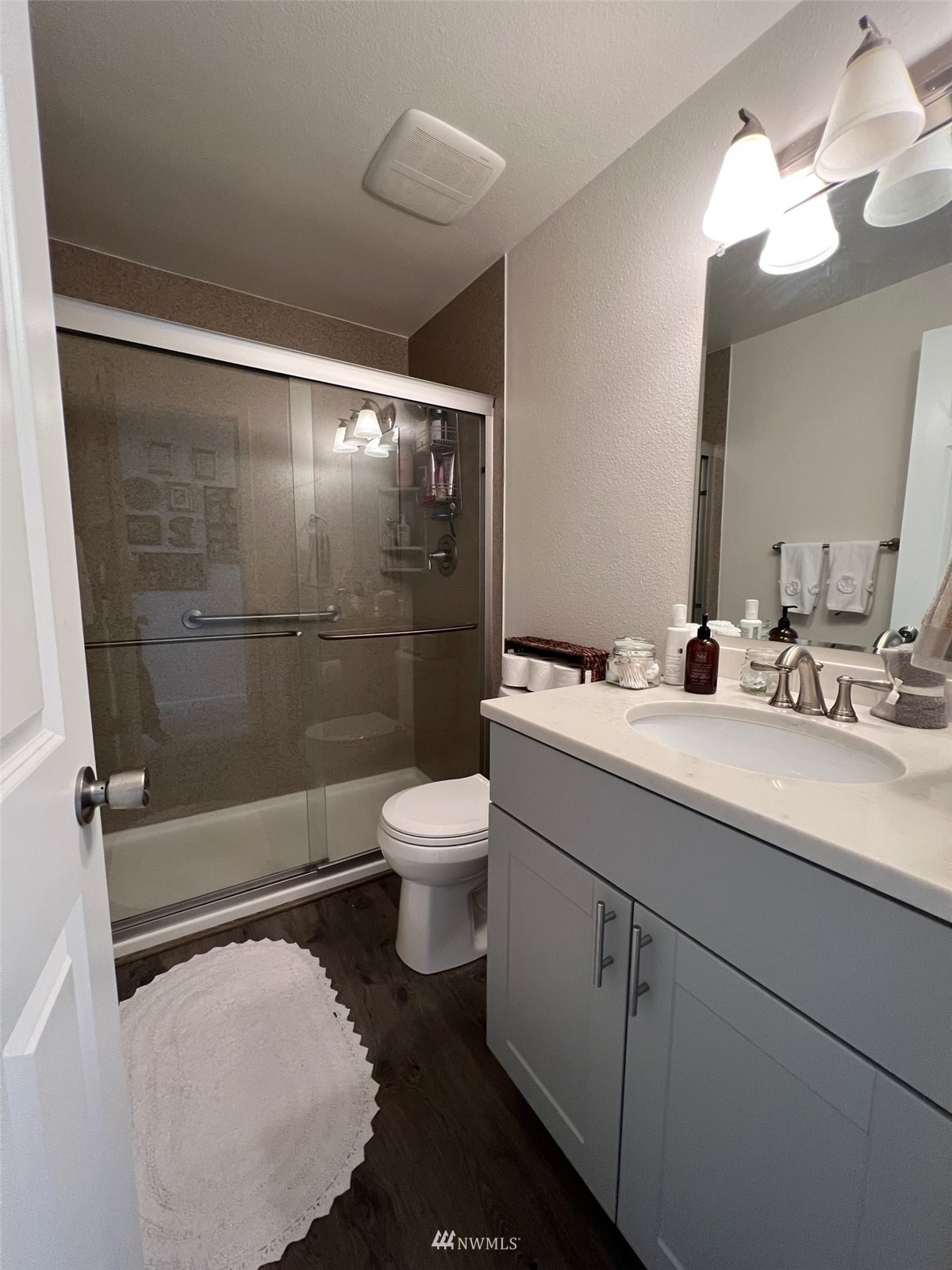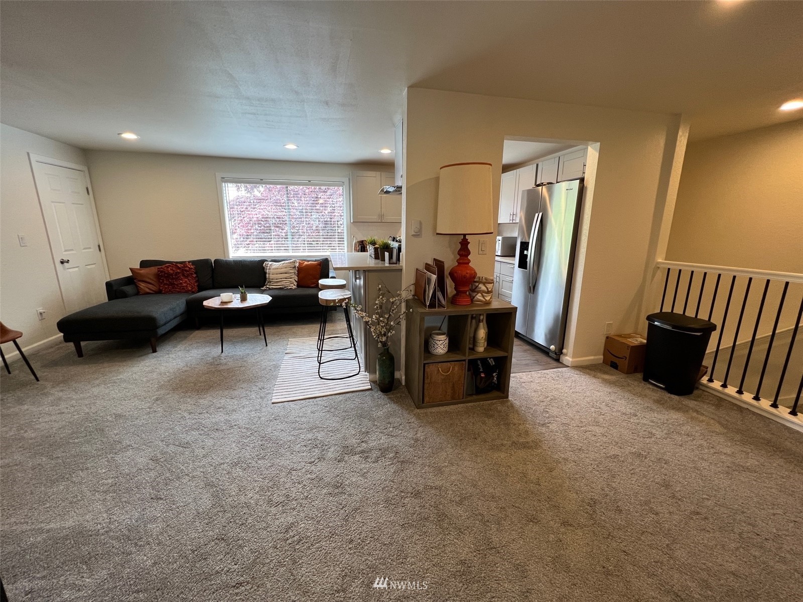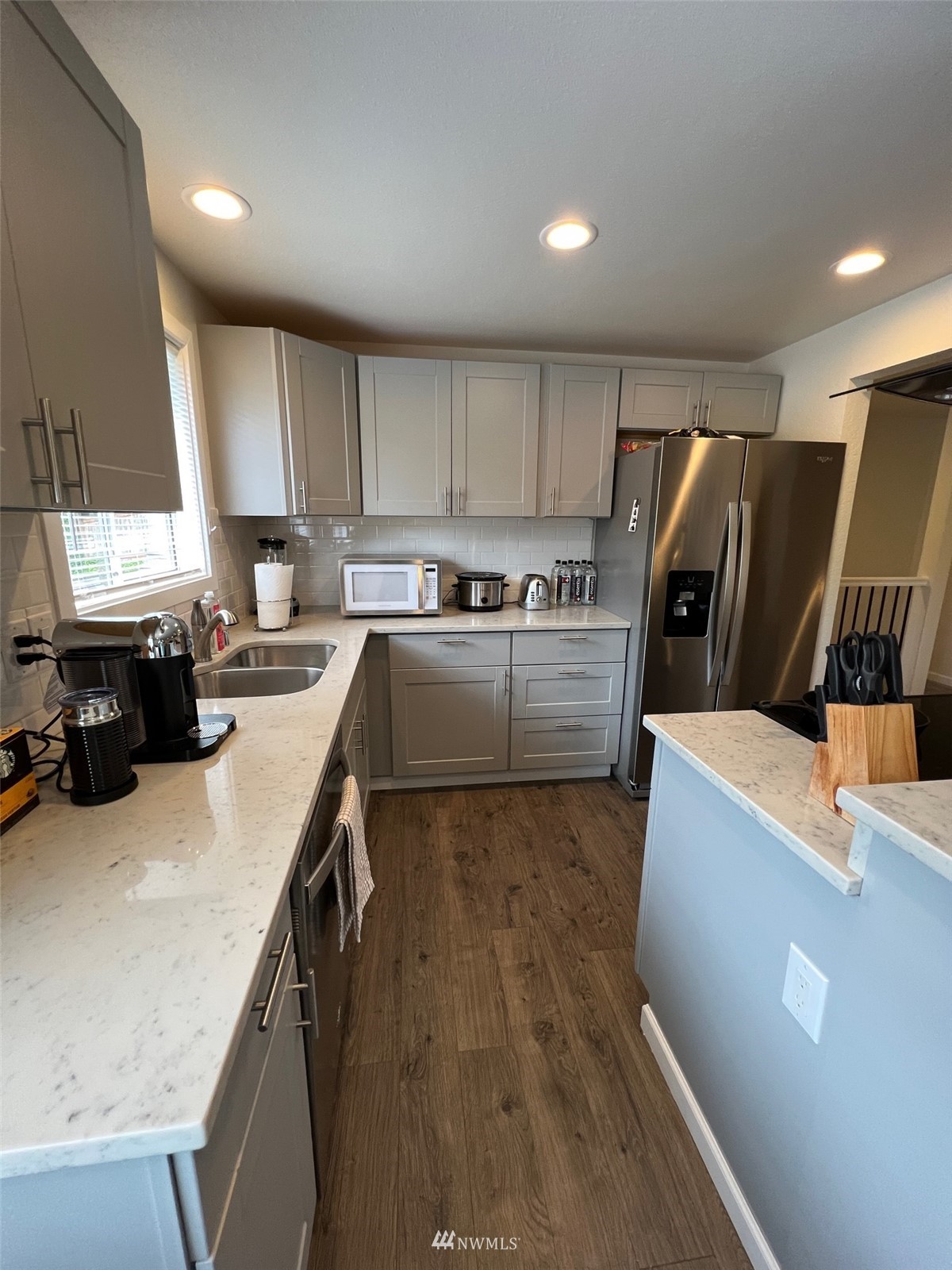 Beautiful top floor condo with an updated interior. One of the larger floor plans in the complex, this bright condo features an open concept w/all newer quartz countertop, cabinetry & stainless-steel appliances, eating bar updated bathrooms. Large living area with storage closet, Master with 2 full size closets, large 2nd bedroom, 1/2 bath combo/walk-in utility rm, double pane windows, newer roof & plumbing. Situated northerly in the complex away from road noise. Grat Location!! Easy access to bus line, I5, hospital, schools, restaurants, shopping and all that downtown Edmonds has to offer. Well Managed complex.