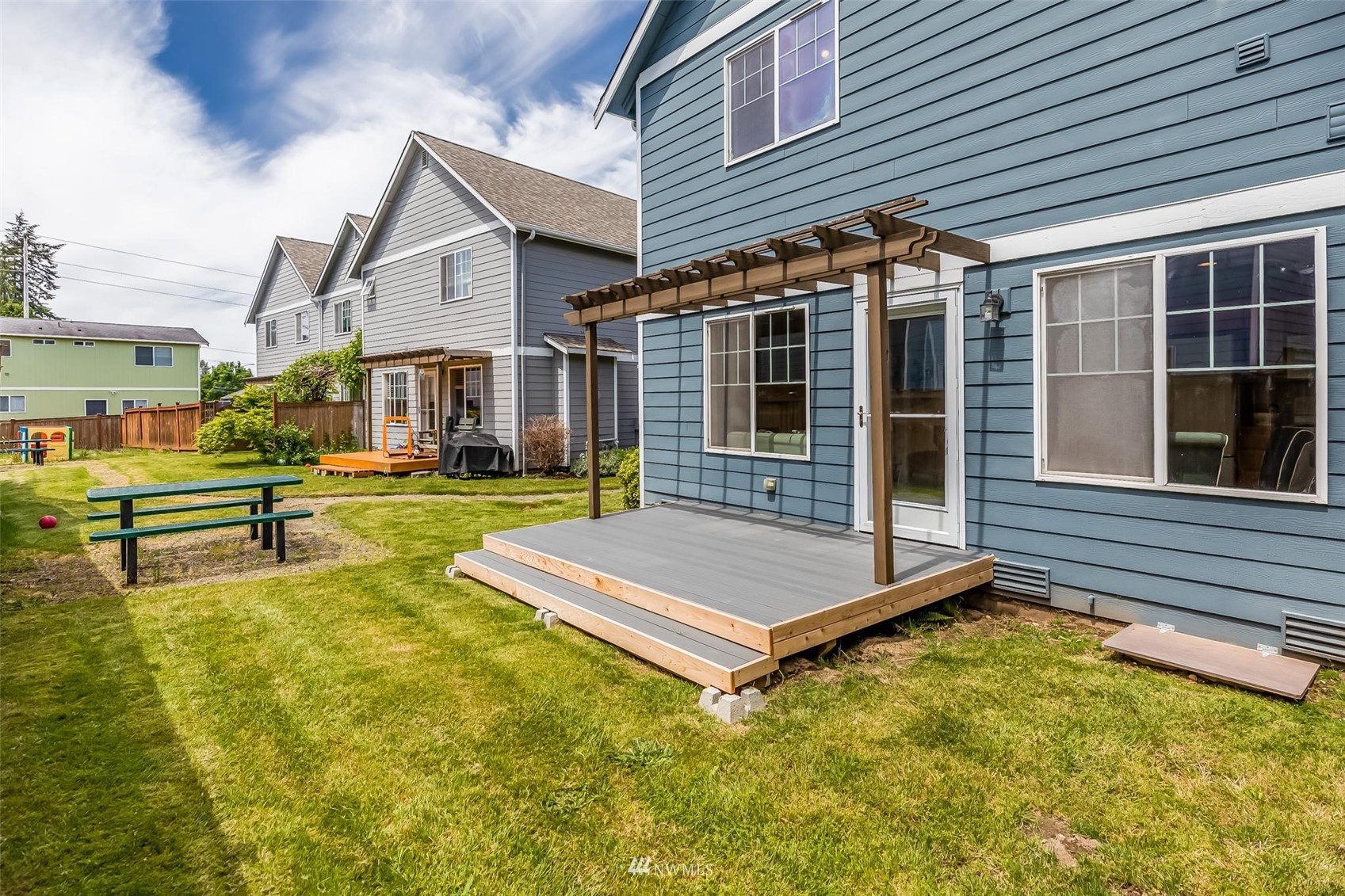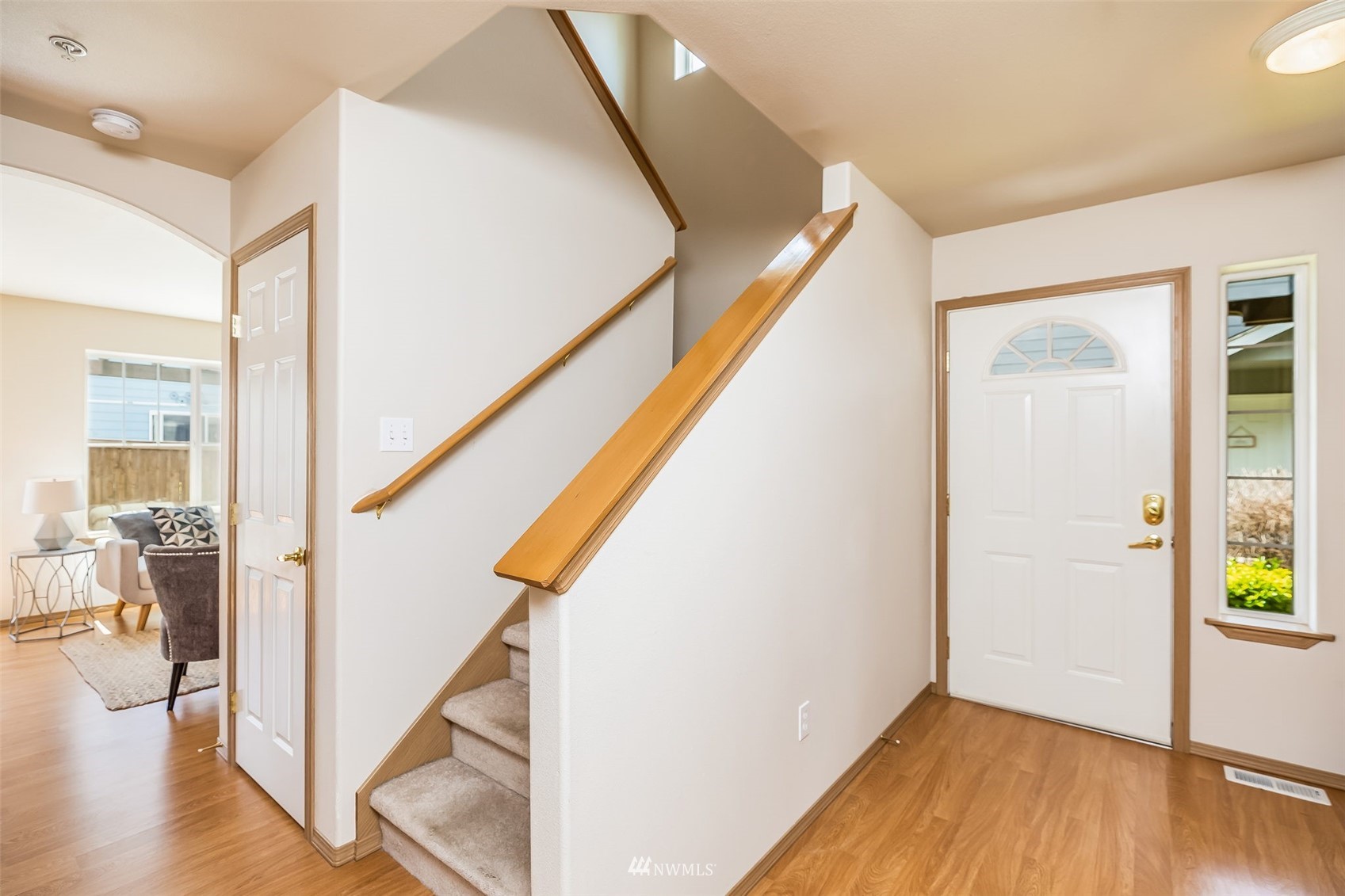 Incredible value for the size & location. Lg end unit in WestLake Pointe! Quiet location away from busy roads. Light & bright open floorplan, flexibility of space w/ formal living areas & additional large downstairs rm for TV, guest space/home office. Laminate wood flrs throughout downstairs. Main floor 3/4 ba w/ walk-in shower. Main flr laundry. Gas forced air heat. Upstairs features 3 generously sized bedrms, primary suite w/ vaulted ceilings, attached full ba & huge walk in closet. Attached 2 car gar. Newer ext paint. Composite deck, backyard adjacent to playground/picnic area. FHA/VA approved. All appliances incl. Community athletic court. Convenient to shopping & restaurants, easy commute to Hwy 9 & Hwy 2. Great Lake Stevens Schools.