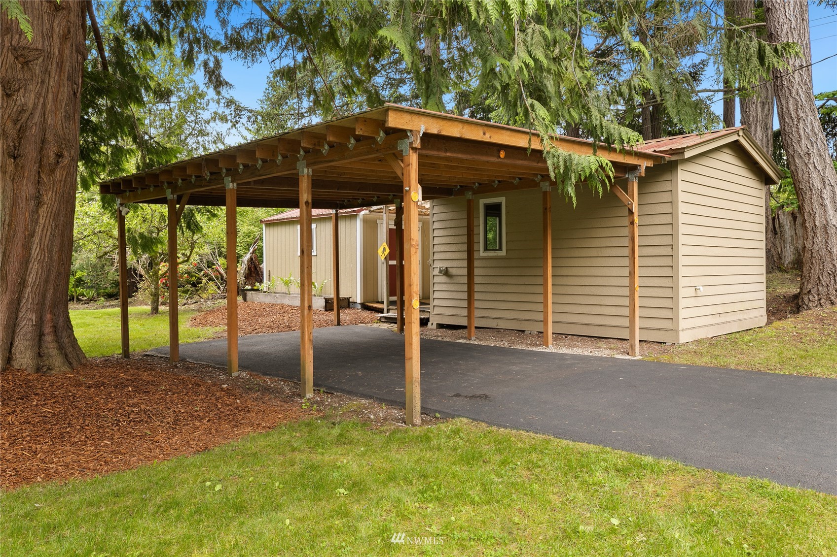Serene Boston Harbor location on over an acre. 3 bdrm + den, 3 ba, w/2 Primary suites, 2344 sqft has everything, detached studio/office insulated, plumbed & wired, greenhouse, 2 storage sheds, chicken coup, raised beds, carport, fully fenced w/electric gate. Recent updates include, roof, kitchen remodel w/quartz & heated floors, large pantry, new SS LG appliances, mini split heat pump, bathroom remodels, luxury vinyl tile, carpet, large concrete patio & retaining wall, lighting, fixtures, plumbing & more. Parklike setting has mature landscaping, pear, apple, plum & cherry trees, blueberry & raspberry bushes, and lots more garden space. Great opportunity to be super close to the marina w/privacy. Oly schools.