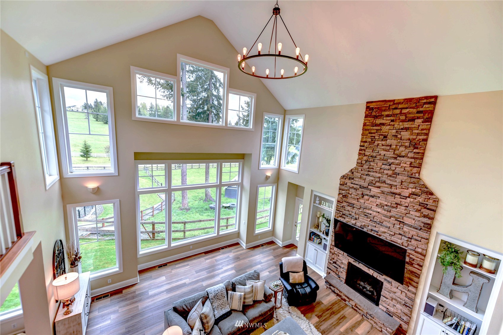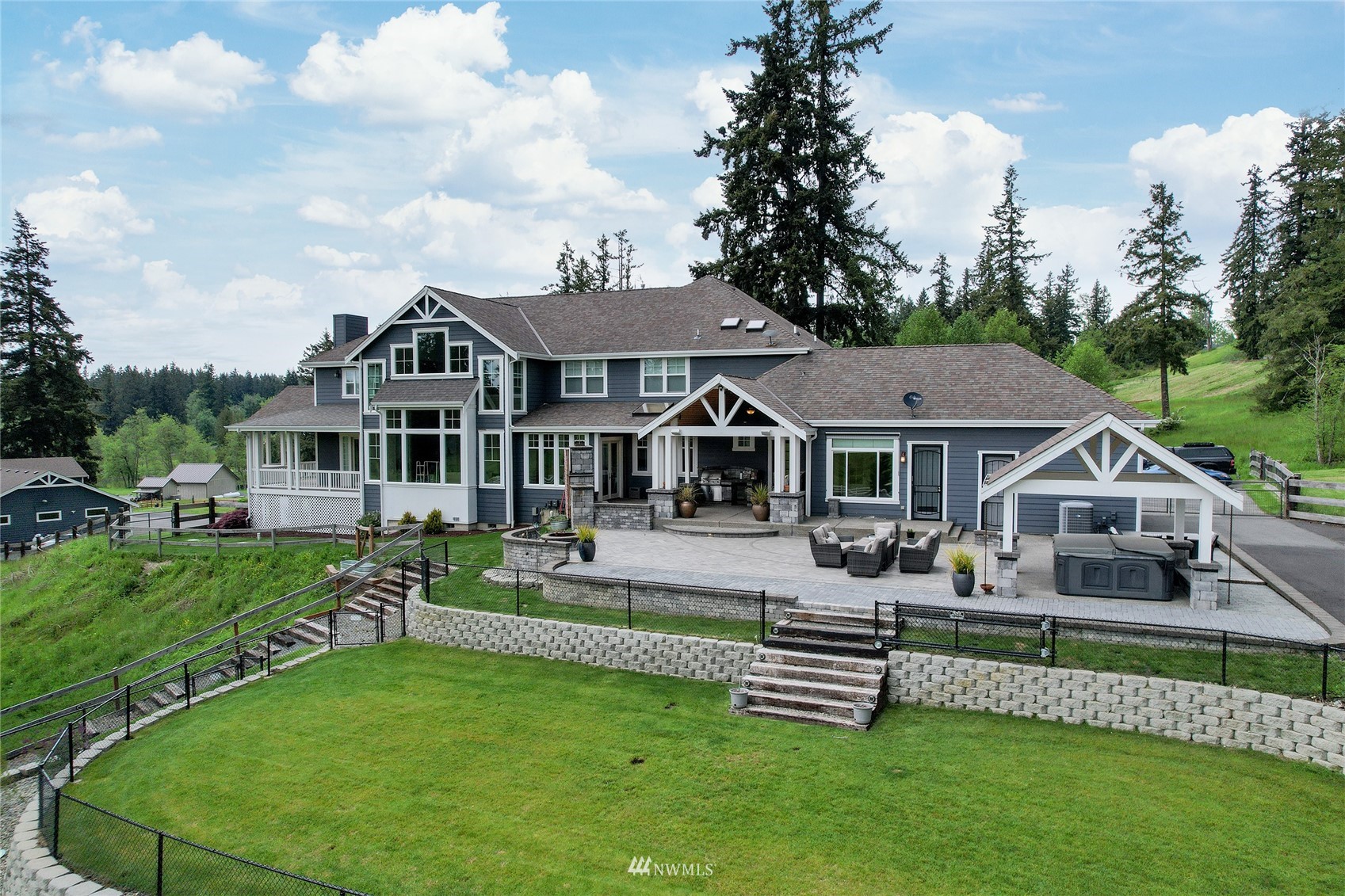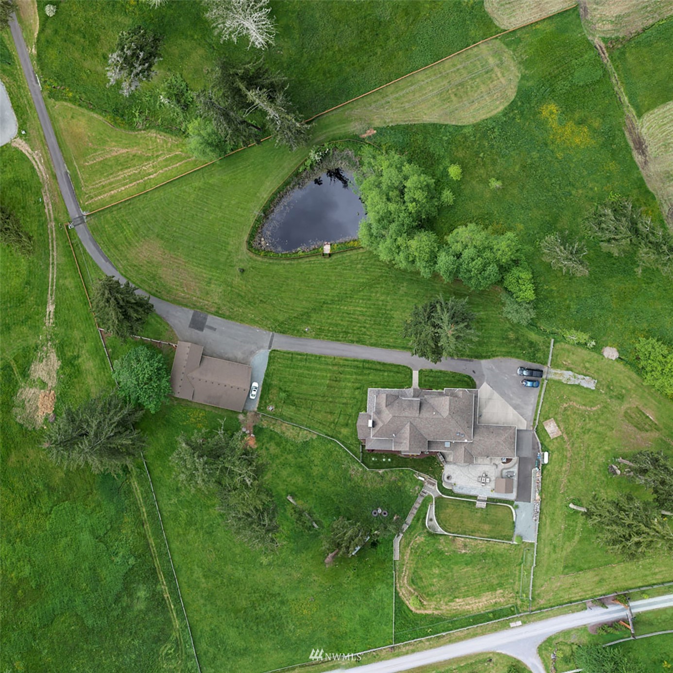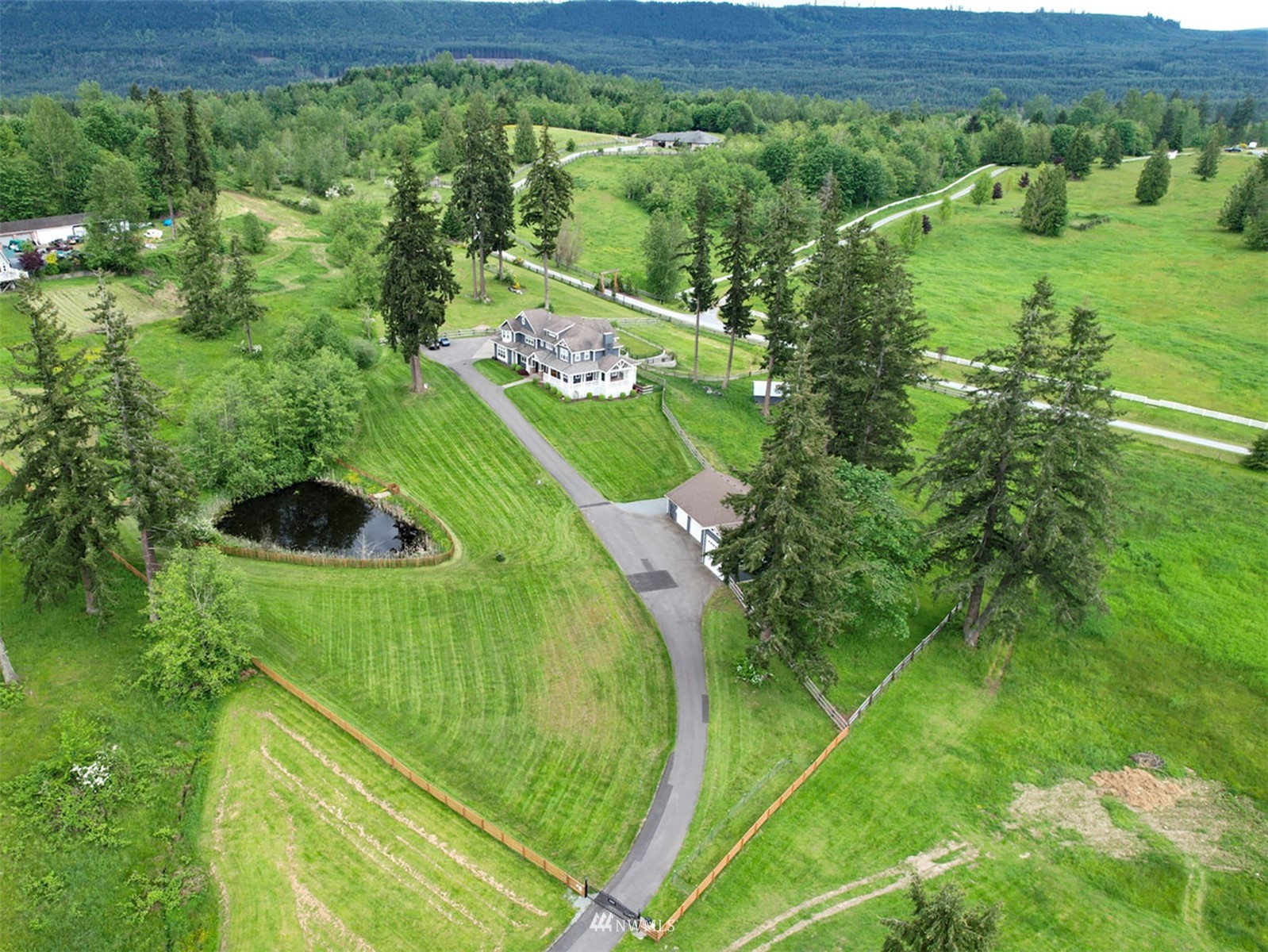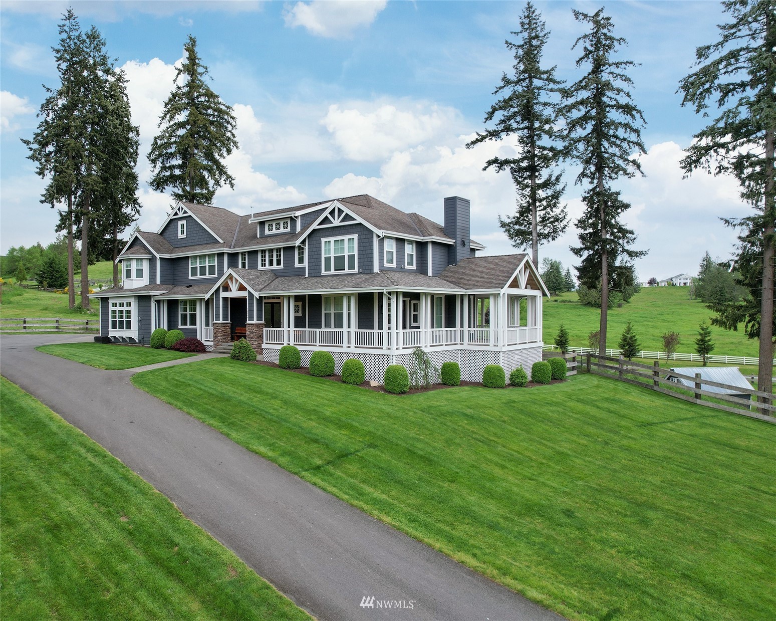 This is the house that dreams are made of. Expansive property, luxurious living and all the amenities to your hearts' desire. Situated statuesquely on 5.89 acres of country perfection, nearly 5000 sqft of impressive living space awaits you. Featuring an open living concept, gorgeous kitchen, main floor primary suite and an ADU. Remodeled and updated throughout including all bathrooms, kitchen, flooring, fixtures and SO many exterior updates. 4-car garage at the home and a MASSIVE SHOP -- 3000 sqft, fully finished, heated and deep enough for a 44 ft RV (or all the toys in the world)! Pastures for horses or goats, garden space and even a pond--with FISH! Gated at the property and at the community entrance. Truly, a home you will never forget.