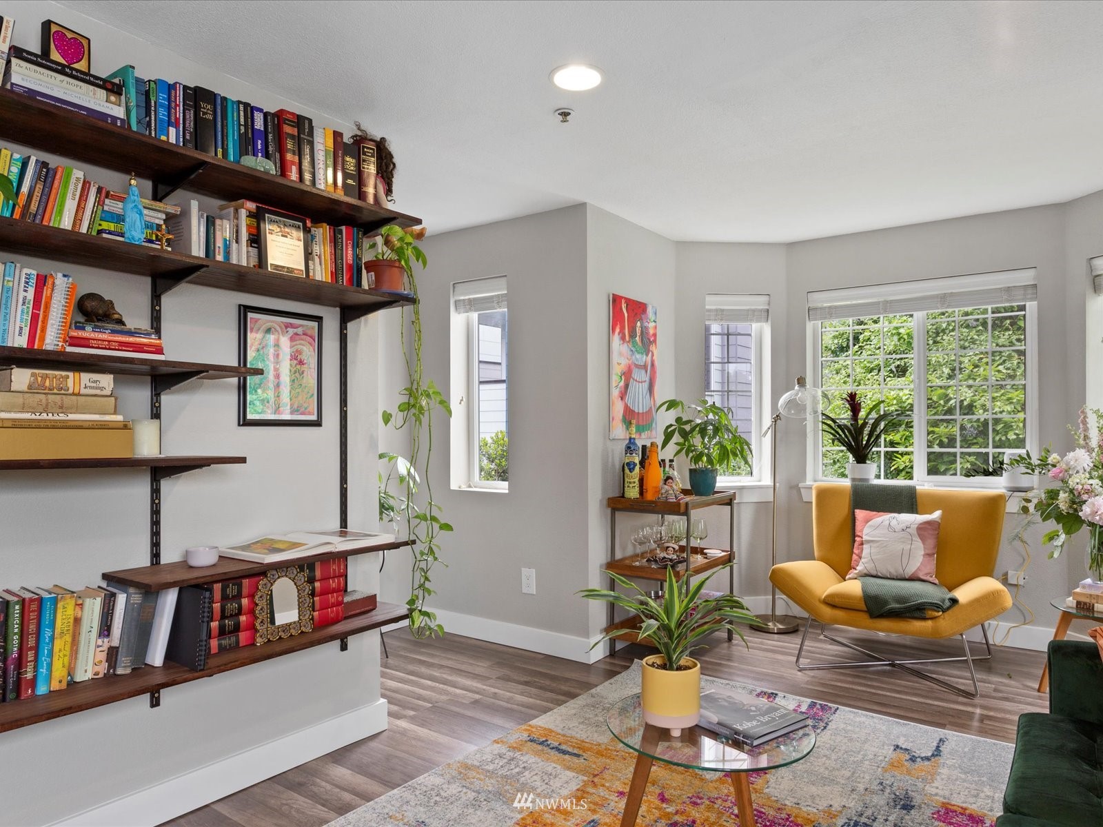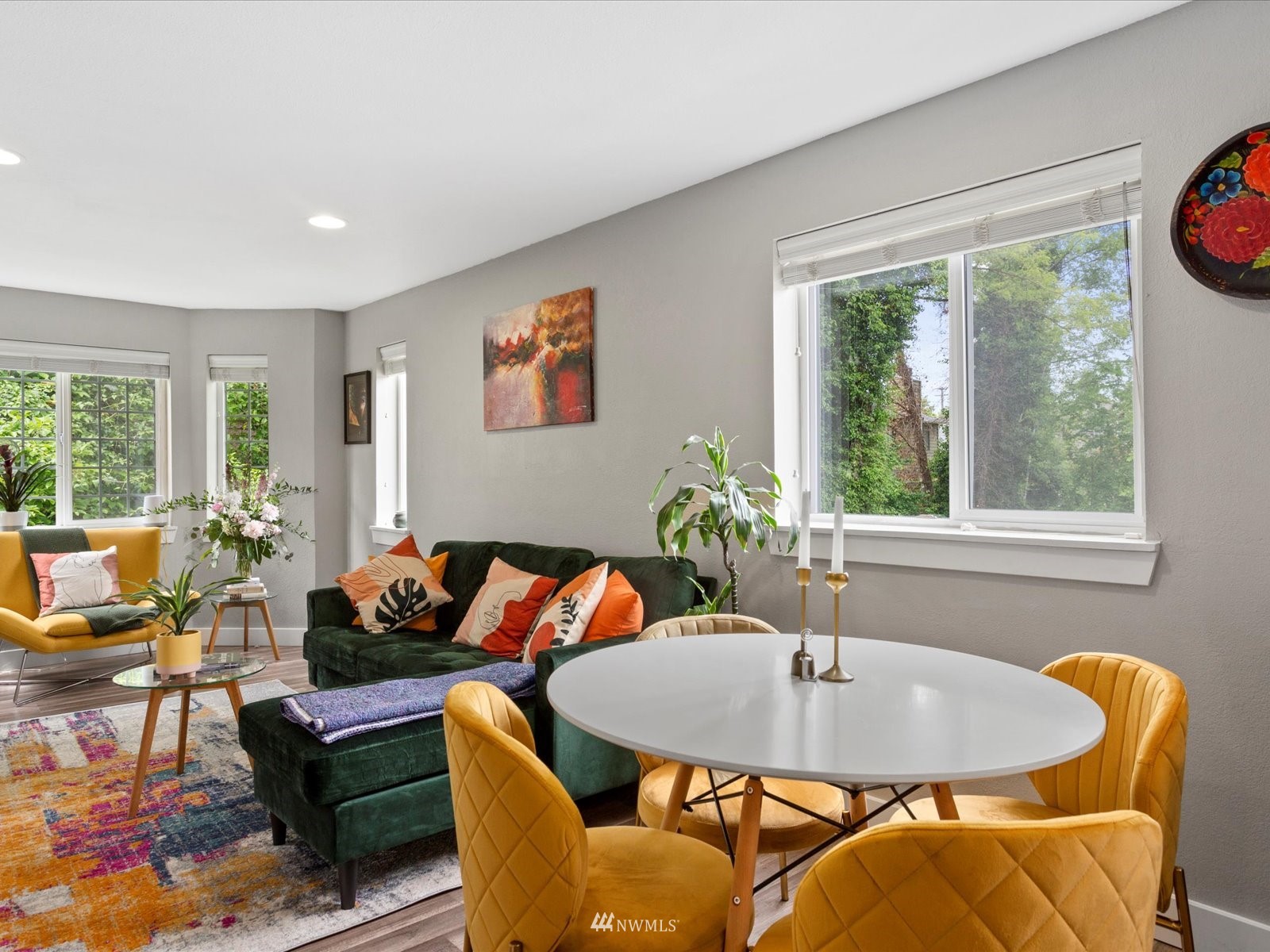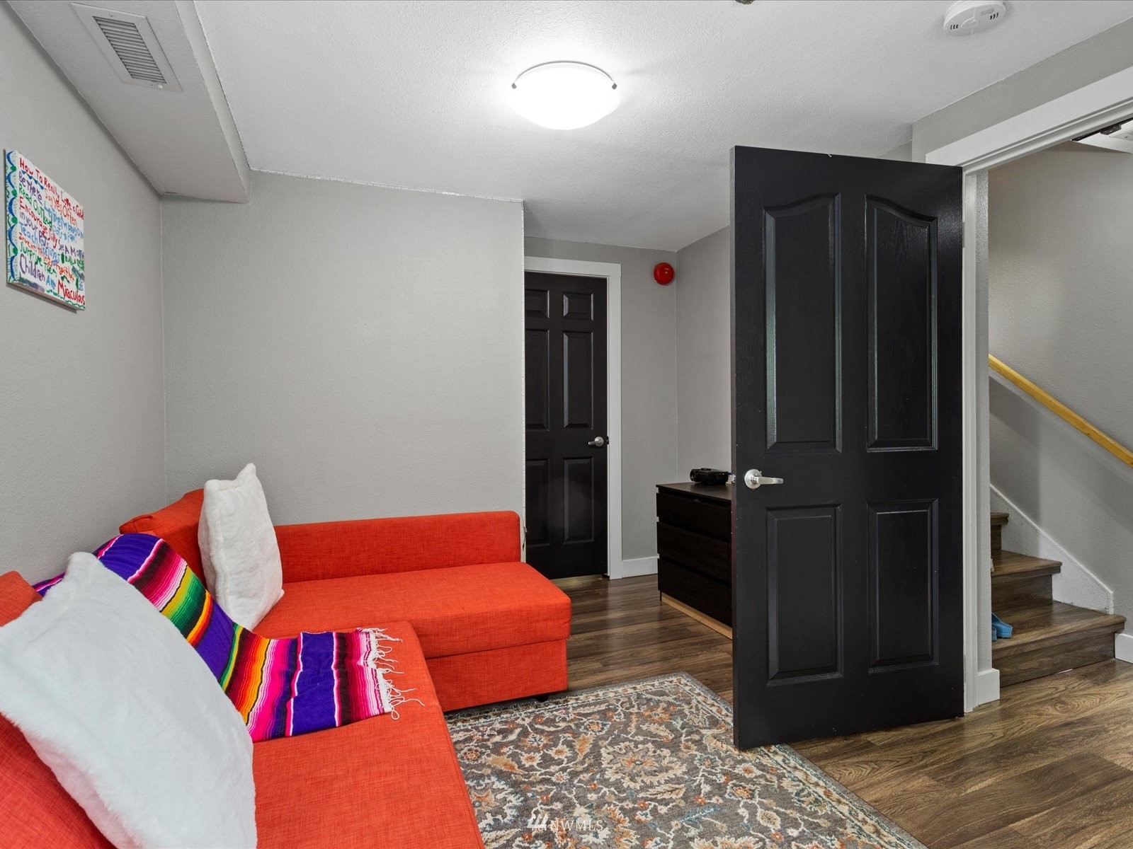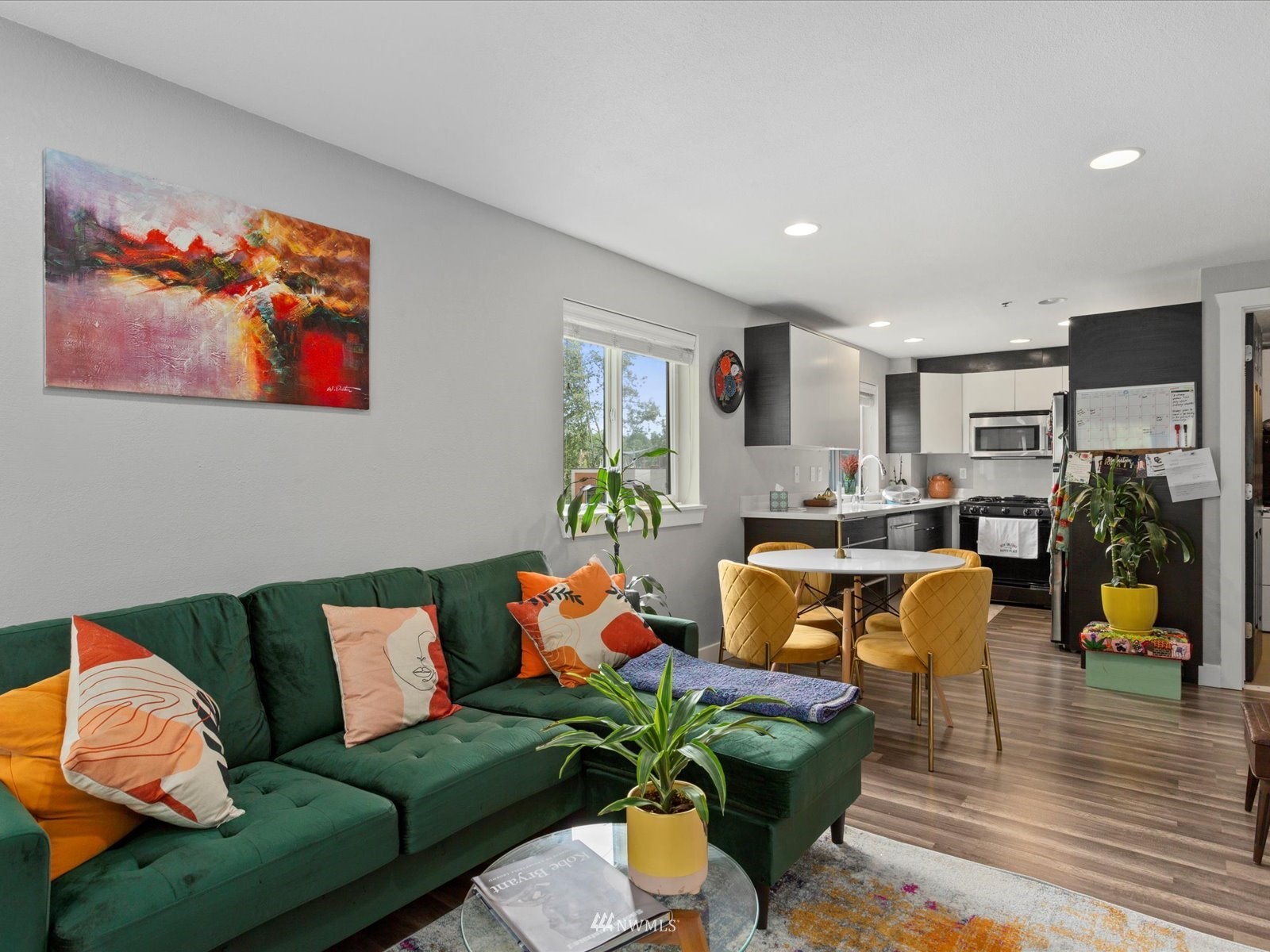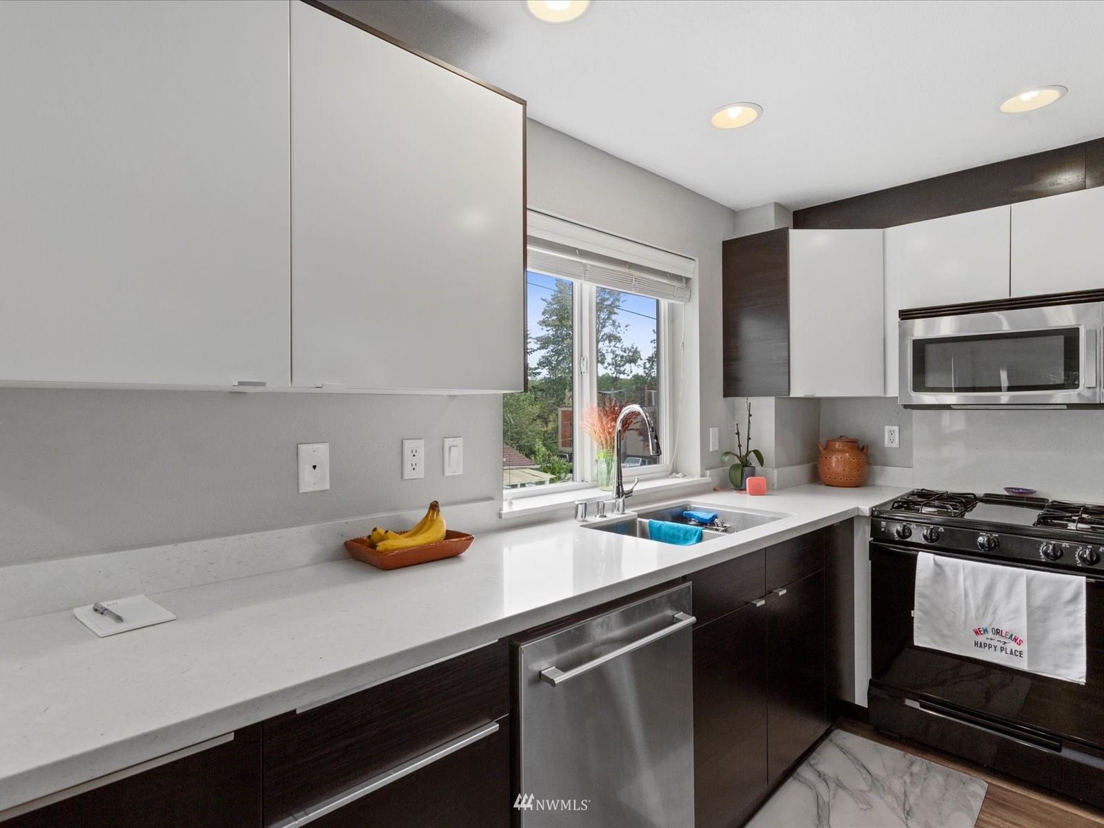 Modern three level townhouse-style condo in North Beacon Hill. Lovely end unit with patio/garden area. Top floor master suite with full master bath and personal balcony. Main floor has kitchen, half-bath with laundry, and dining/living room. The lower ground-level has one bedroom and a full bathroom. An extra den area can also be used as an office or flex space. Stairs toward the basement lead to the underground common parking garage with assigned parking space plus storage space. Close to parks and local trails. Convenient access to I-90 and I-5. Minutes to downtown Seattle and Bellevue, and more.