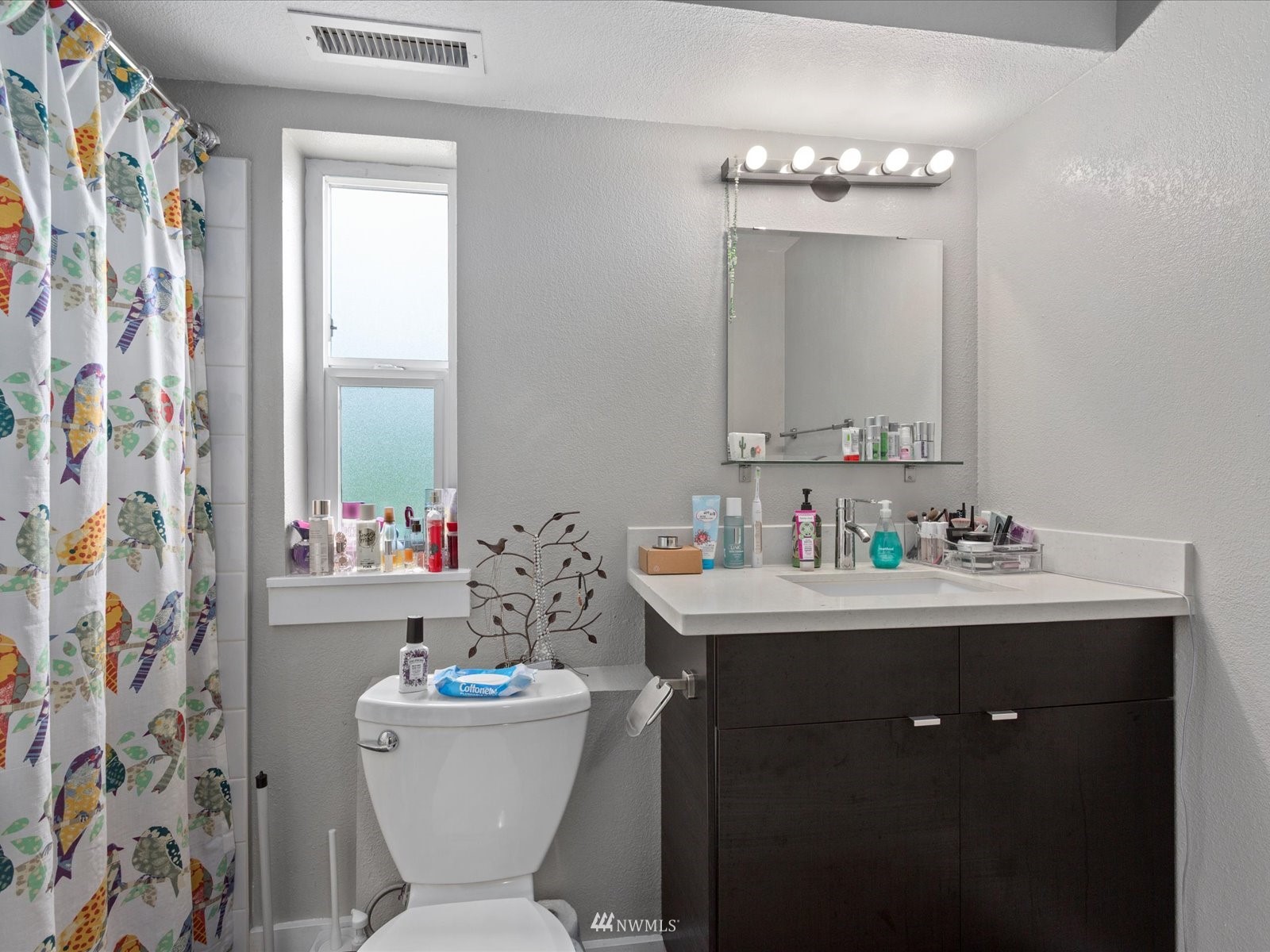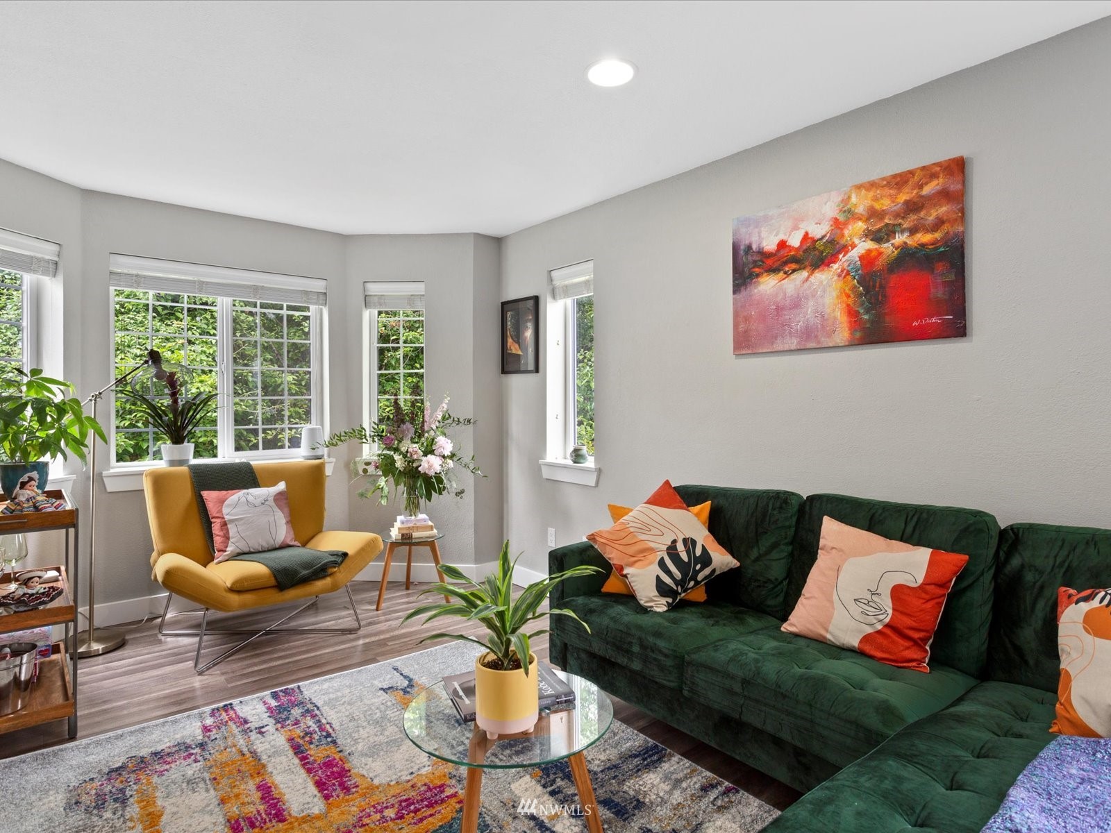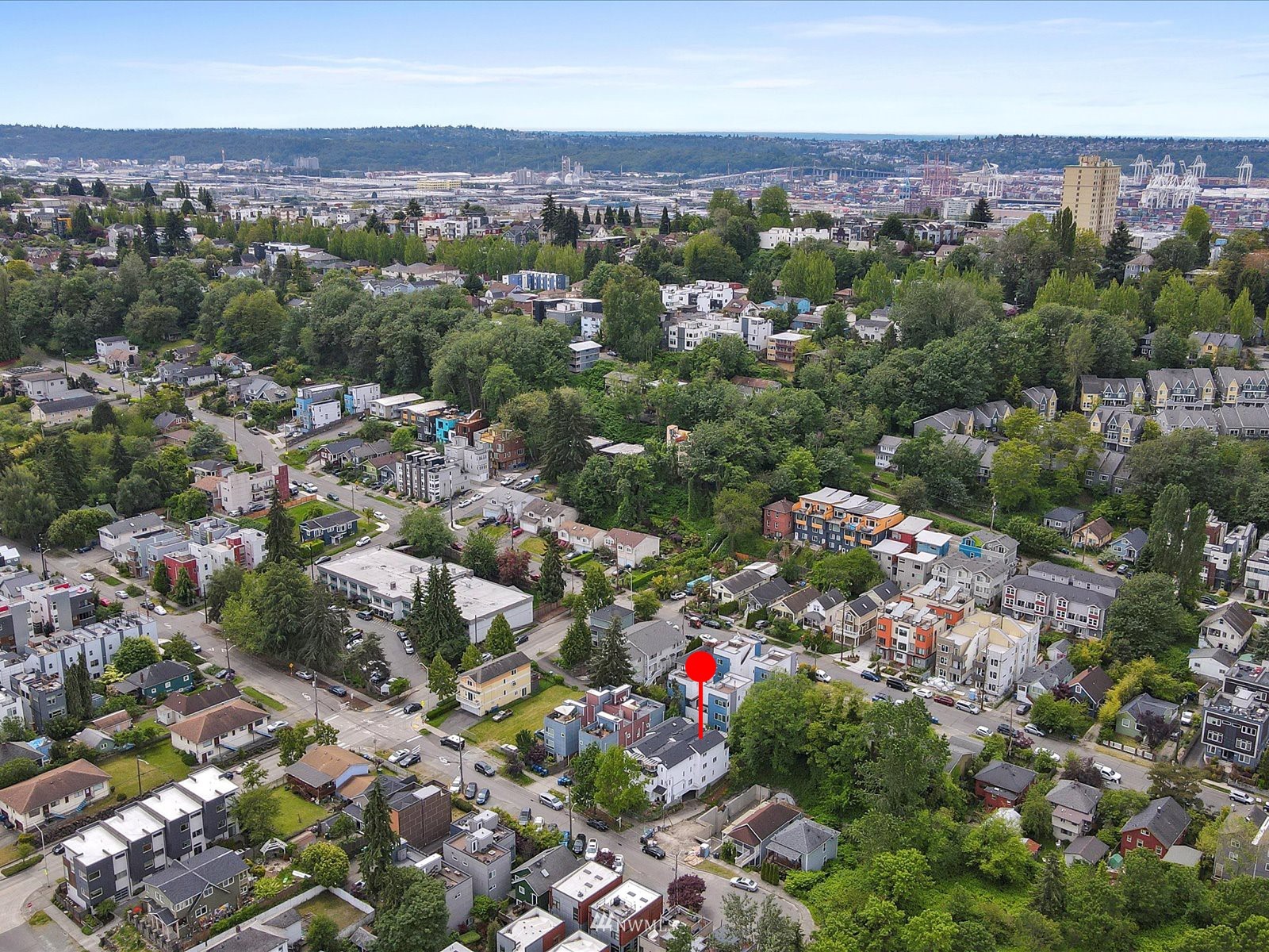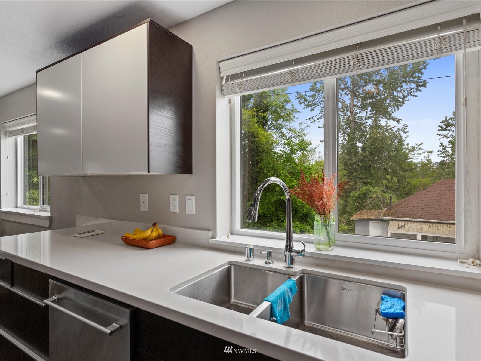 Modern three level townhouse-style condo in North Beacon Hill. Lovely end unit with patio/garden area. Top floor master suite with full master bath and personal balcony. Main floor has kitchen, half-bath with laundry, and dining/living room. The lower ground-level has one bedroom and a full bathroom. An extra den area can also be used as an office or flex space. Stairs toward the basement lead to the underground common parking garage with assigned parking space plus storage space. Close to parks and local trails. Convenient access to I-90 and I-5. Minutes to downtown Seattle and Bellevue, and more.
