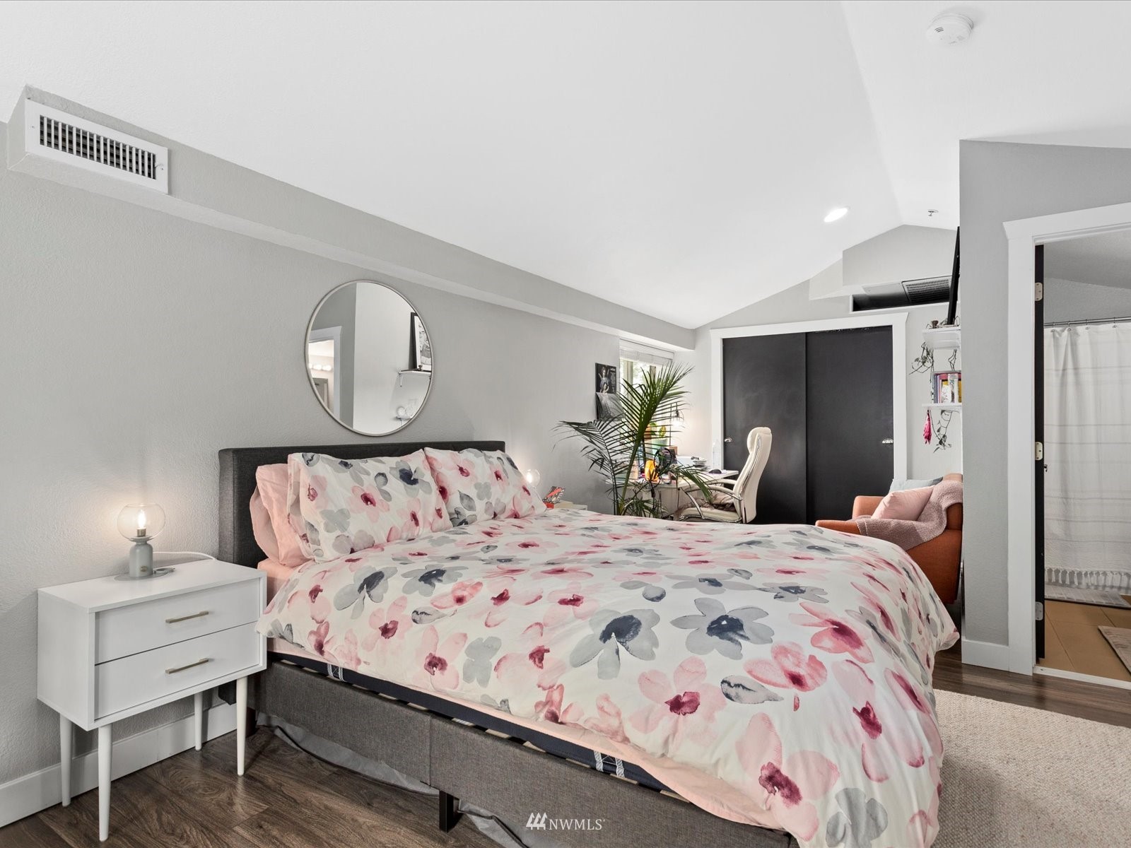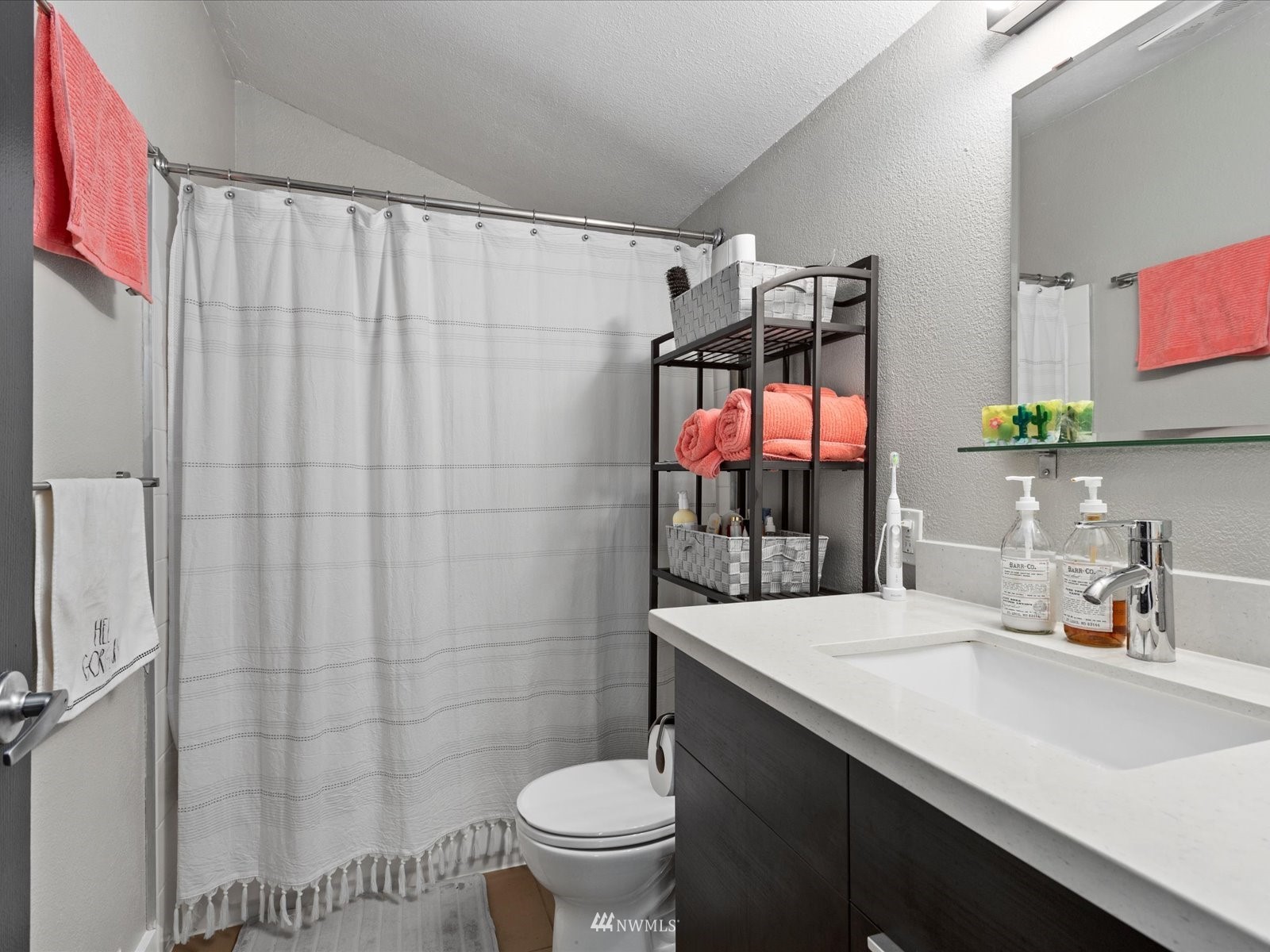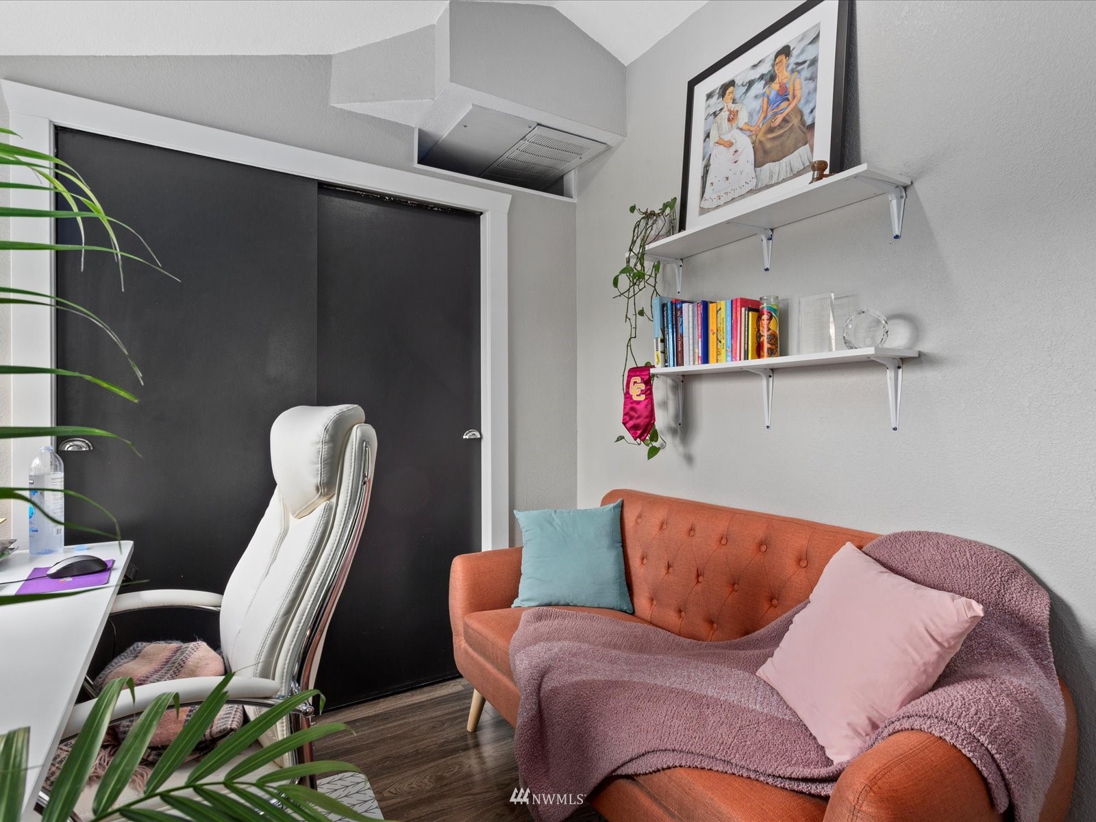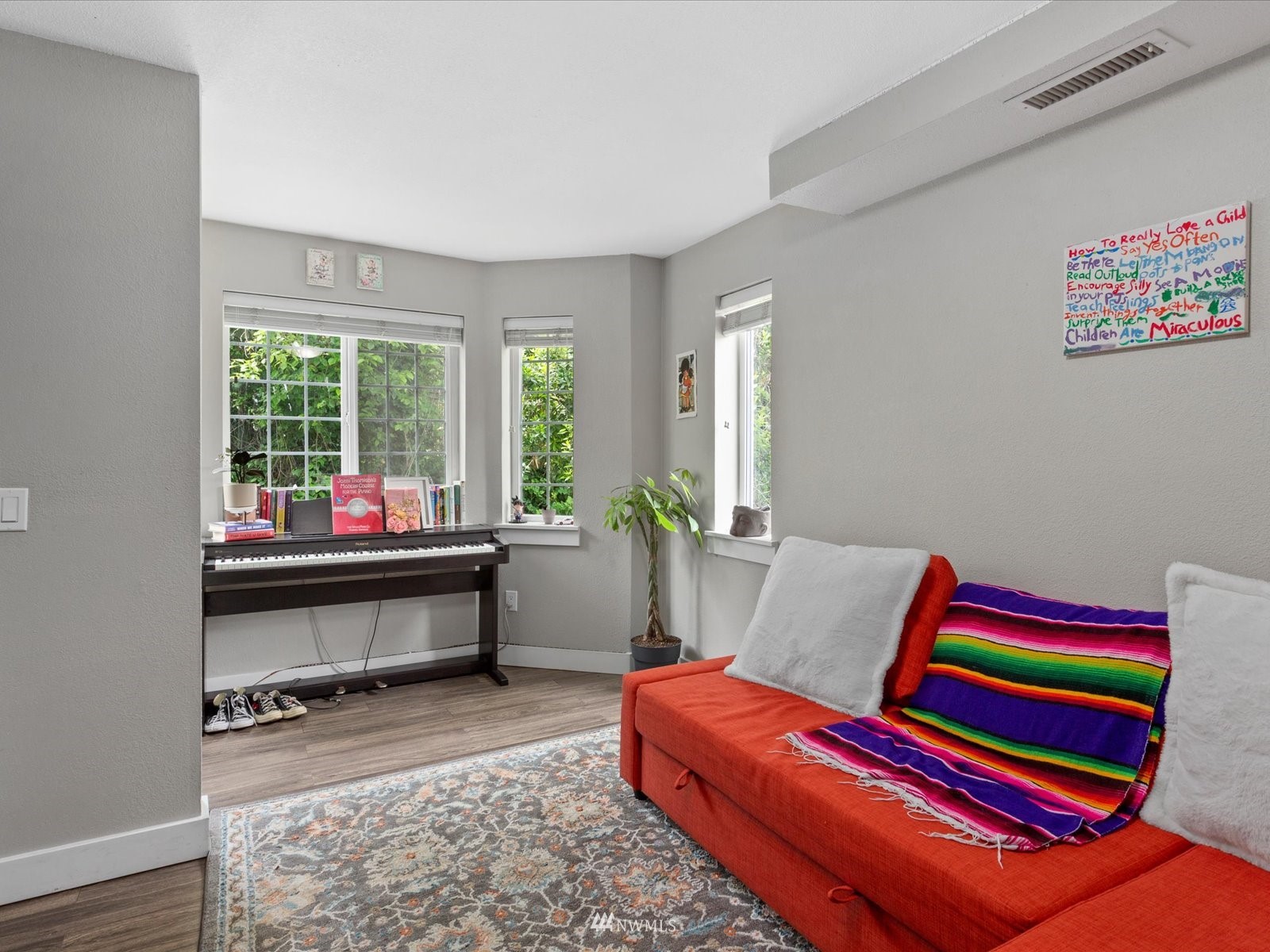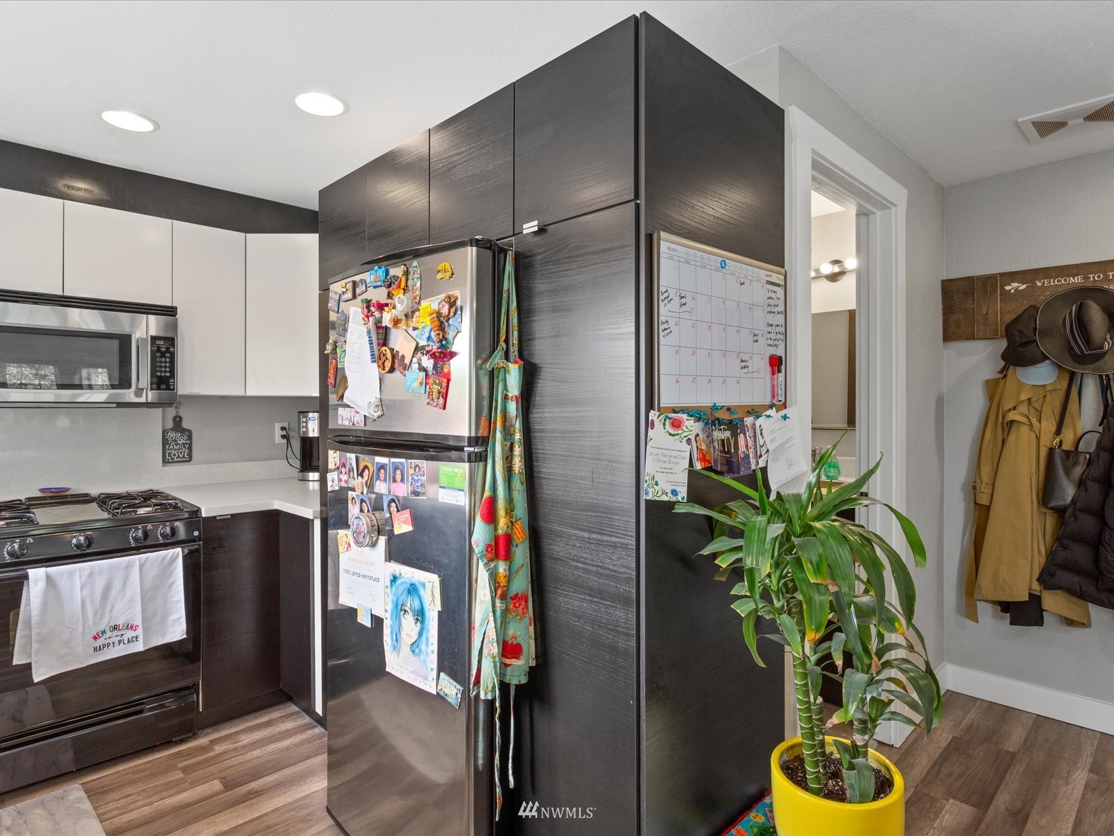 Modern three level townhouse-style condo in North Beacon Hill. Lovely end unit with patio/garden area. Top floor master suite with full master bath and personal balcony. Main floor has kitchen, half-bath with laundry, and dining/living room. The lower ground-level has one bedroom and a full bathroom. An extra den area can also be used as an office or flex space. Stairs toward the basement lead to the underground common parking garage with assigned parking space plus storage space. Close to parks and local trails. Convenient access to I-90 and I-5. Minutes to downtown Seattle and Bellevue, and more.