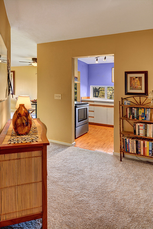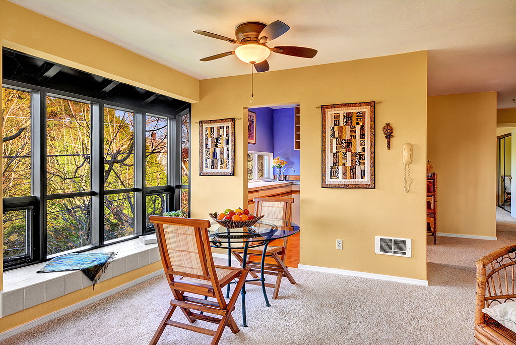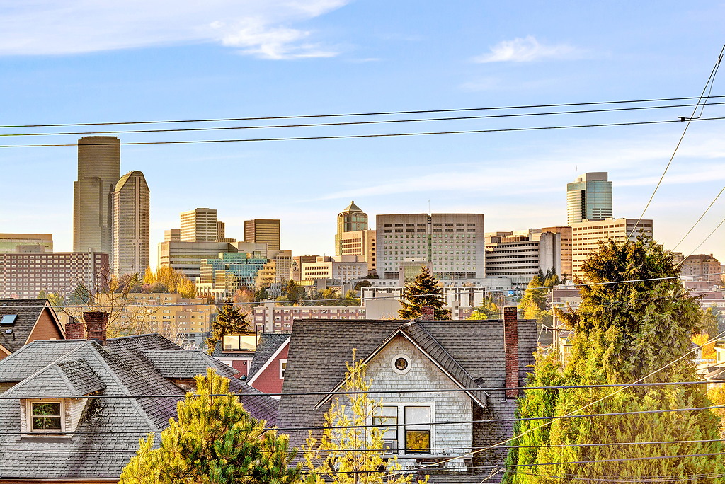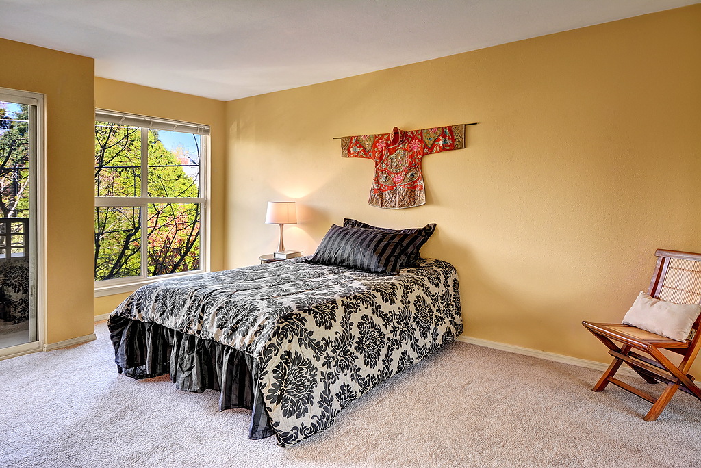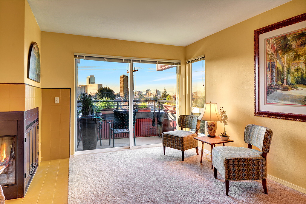Top floor, corner w/amazing views of Seattle skyline & Olympics! Living rm features a western deck & wood burning frpl. Living rm is spacious, open & will accommodate your entire living rm suite. There is a gorgeous window seat for great light. Dining rm seats 6 to 8 guests comfortably. Kitchen opens to living & dining rm so you can cook & visit w/guests. Master bdrm w/full bath, double closets, double sinks & private deck. 2nd bedroom is large & comfy. Storage, garage prkg & prof. managed bldg.