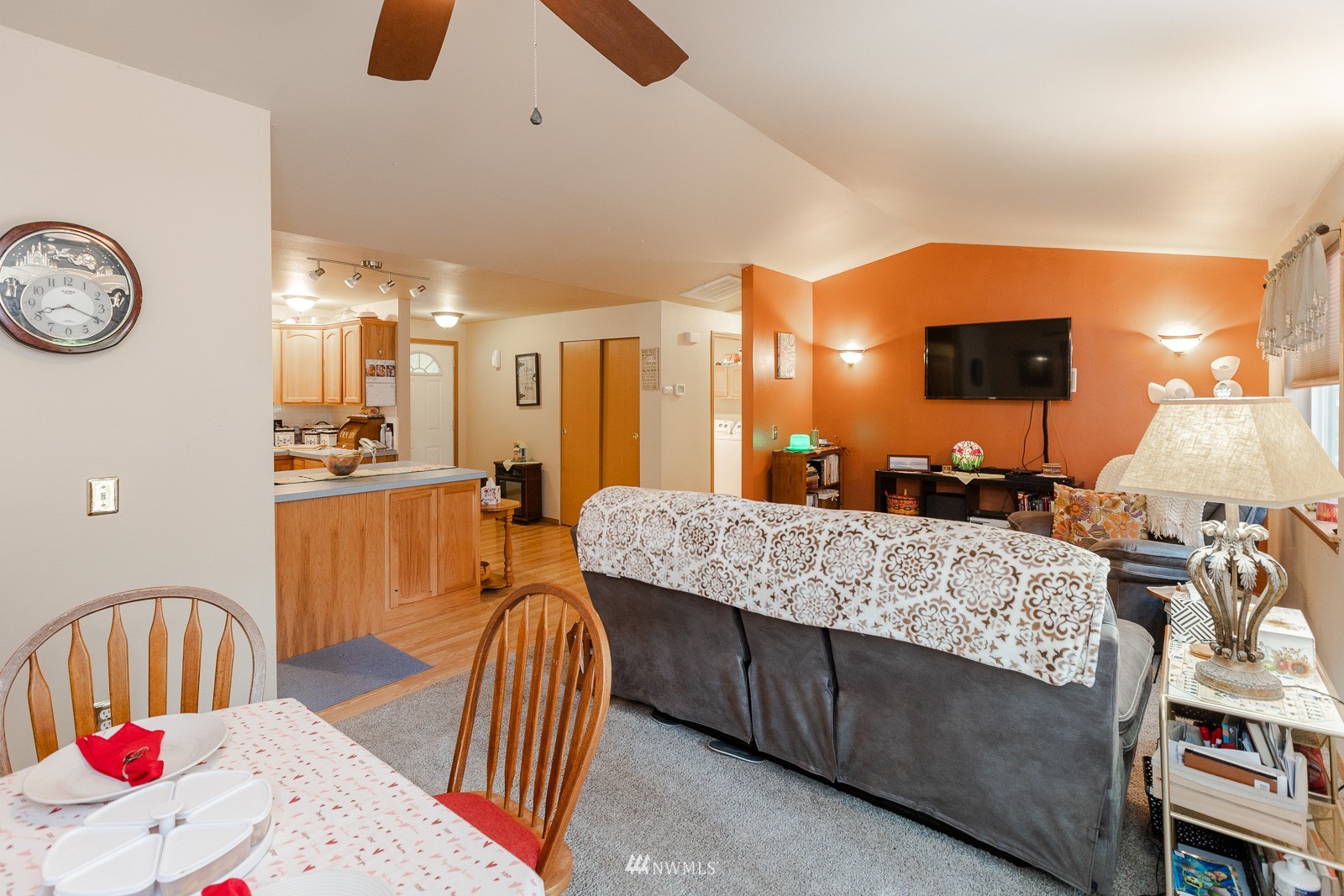 Forced Air Heat Pump Wall to Wall Carpet Laminate Ceiling Fan(s) Double Pane/Storm Window Dining Room Vaulted Ceiling(s) Water Heater