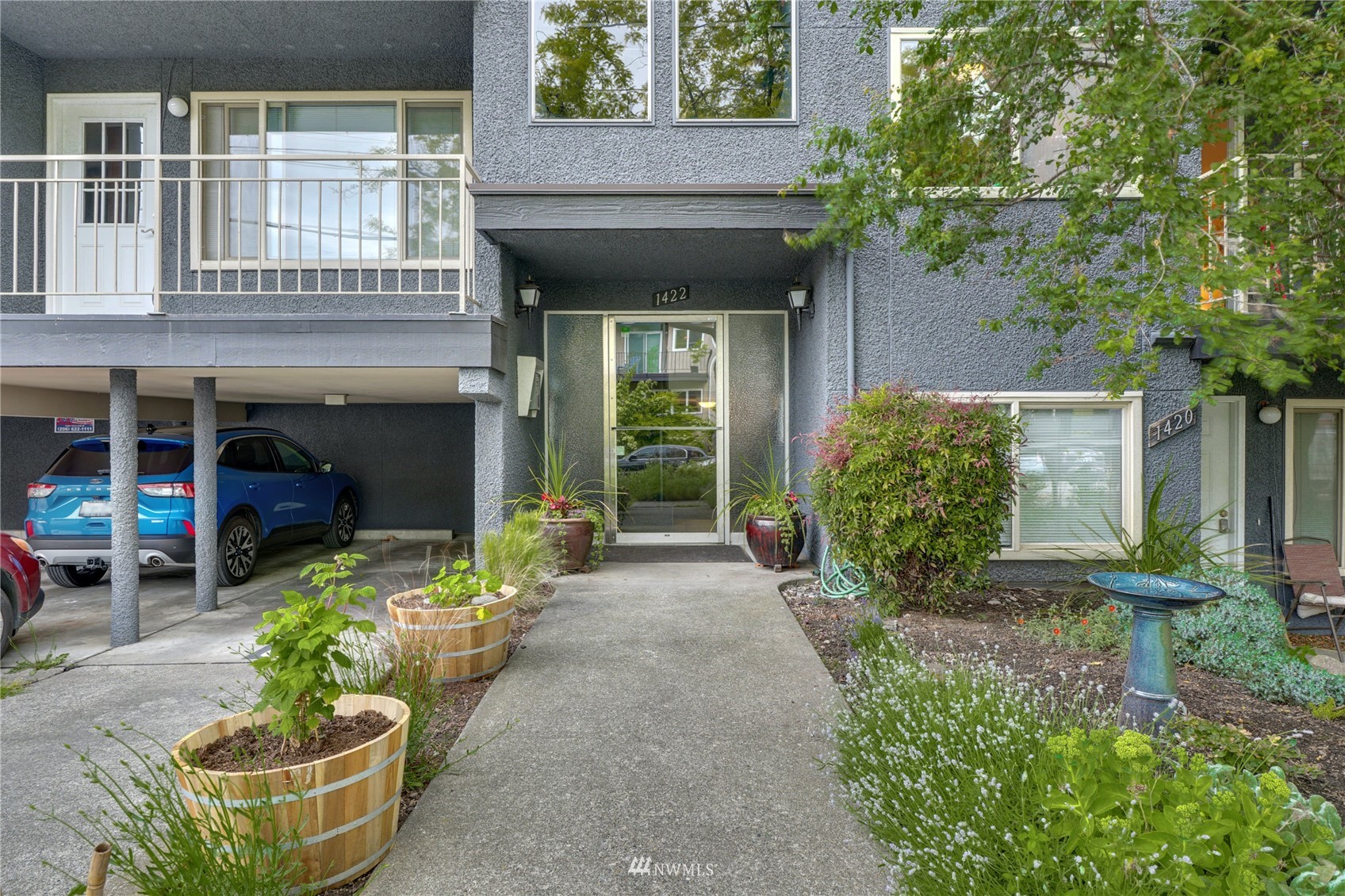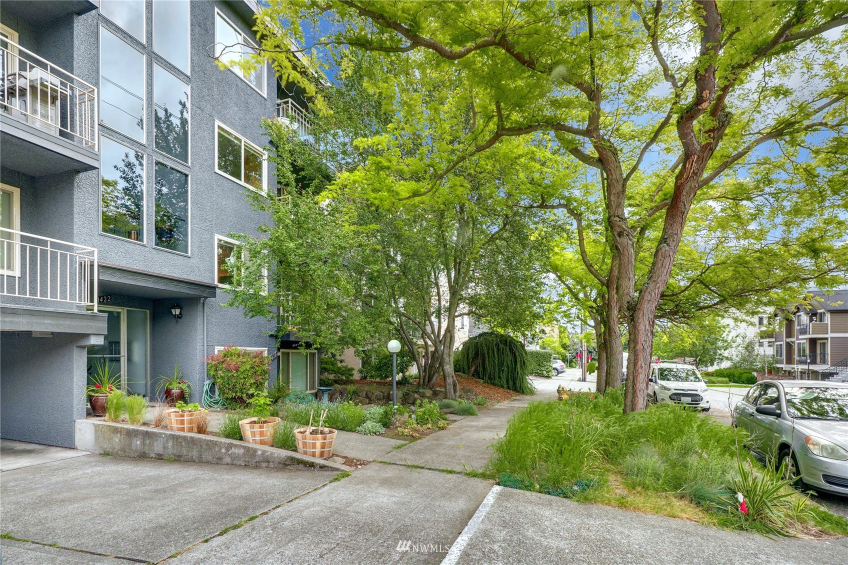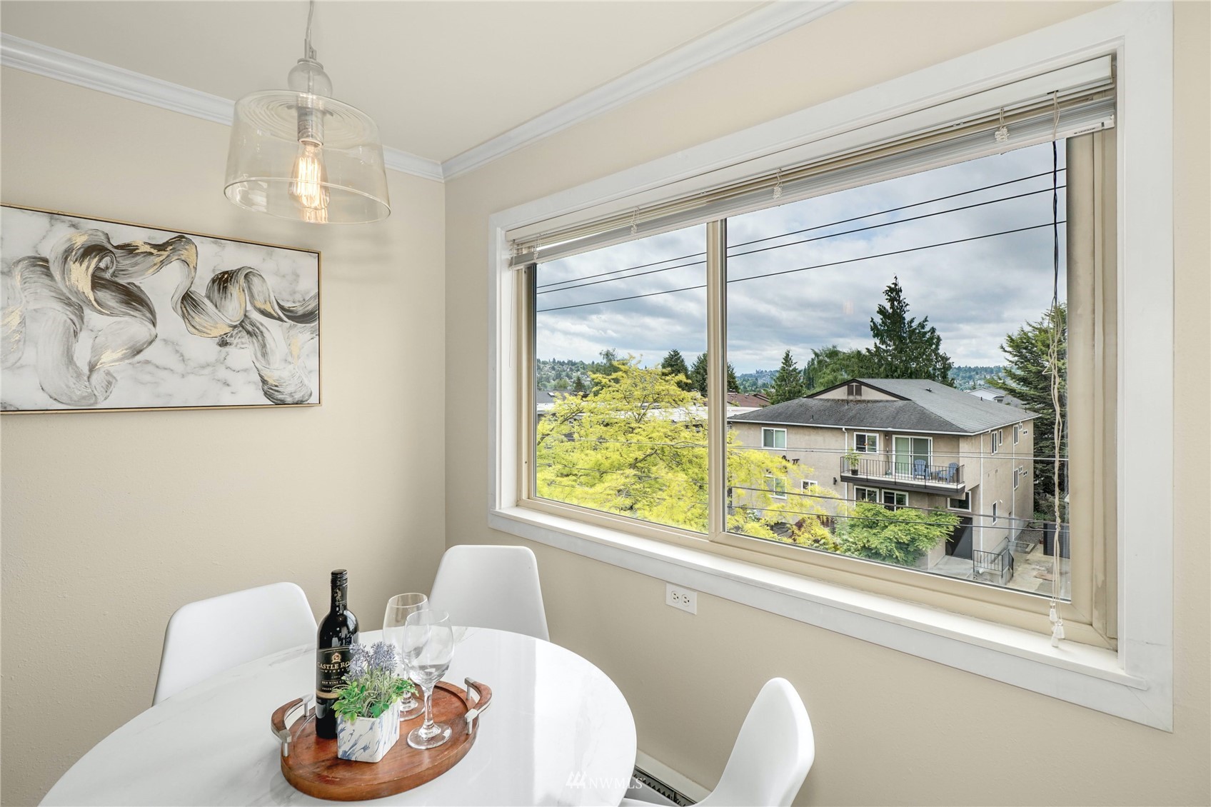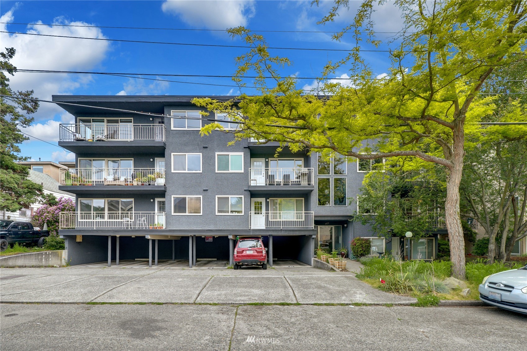 South facing PENTHOUSE 3 bedroom VIEW unit, filled in natural light! Enjoy Mt. Rainier & expansive views. Superior Ballard location! Top floor, corner unit, dreamy open layout, spacious living area & bedrooms. Small home office space off entry! Granite slab kitchen, honed travertine backsplash, new refrigerator & dishwasher. Updated baths, light fixtures & closets. NEW roof in 2019! Newer HWHeater. New washing machine, all appliances stay. Secured #403 storage & bike storage rooms. 2 tandem parking #6. Great HOA, no special assess, strong reserves, mid-century bldg in prime shape. Mainly owner-occupied, but no rental cap! 92 walk score-grocery, downtown, breweries & dining. Entertain or relax from the covered deck while enjoying the views!