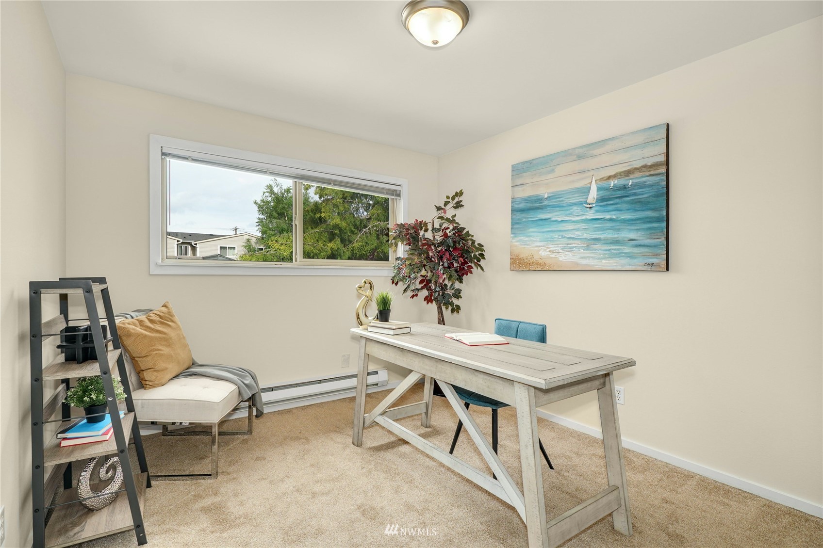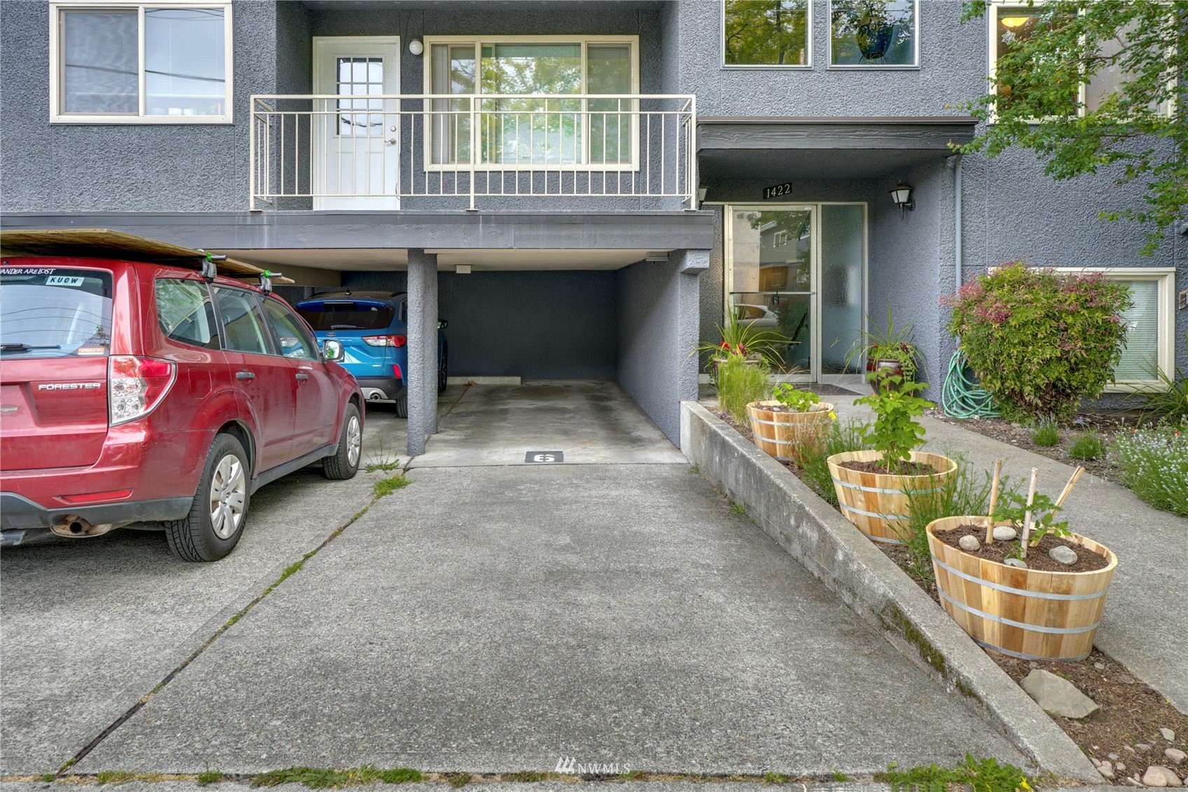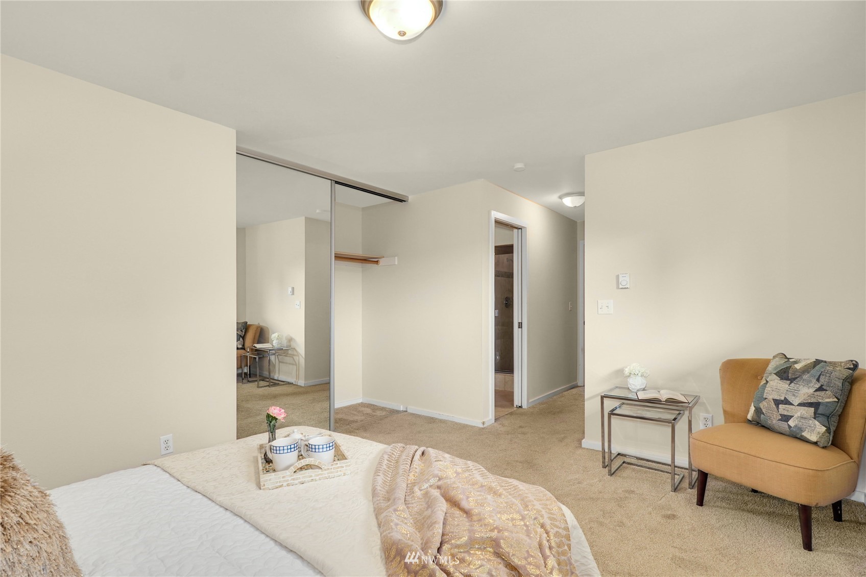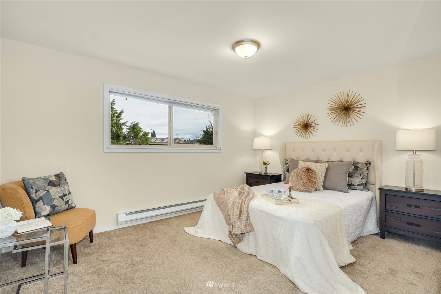 South facing PENTHOUSE 3 bedroom VIEW unit, filled in natural light! Enjoy Mt. Rainier & expansive views. Superior Ballard location! Top floor, corner unit, dreamy open layout, spacious living area & bedrooms. Small home office space off entry! Granite slab kitchen, honed travertine backsplash, new refrigerator & dishwasher. Updated baths, light fixtures & closets. NEW roof in 2019! Newer HWHeater. New washing machine, all appliances stay. Secured #403 storage & bike storage rooms. 2 tandem parking #6. Great HOA, no special assess, strong reserves, mid-century bldg in prime shape. Mainly owner-occupied, but no rental cap! 92 walk score-grocery, downtown, breweries & dining. Entertain or relax from the covered deck while enjoying the views!