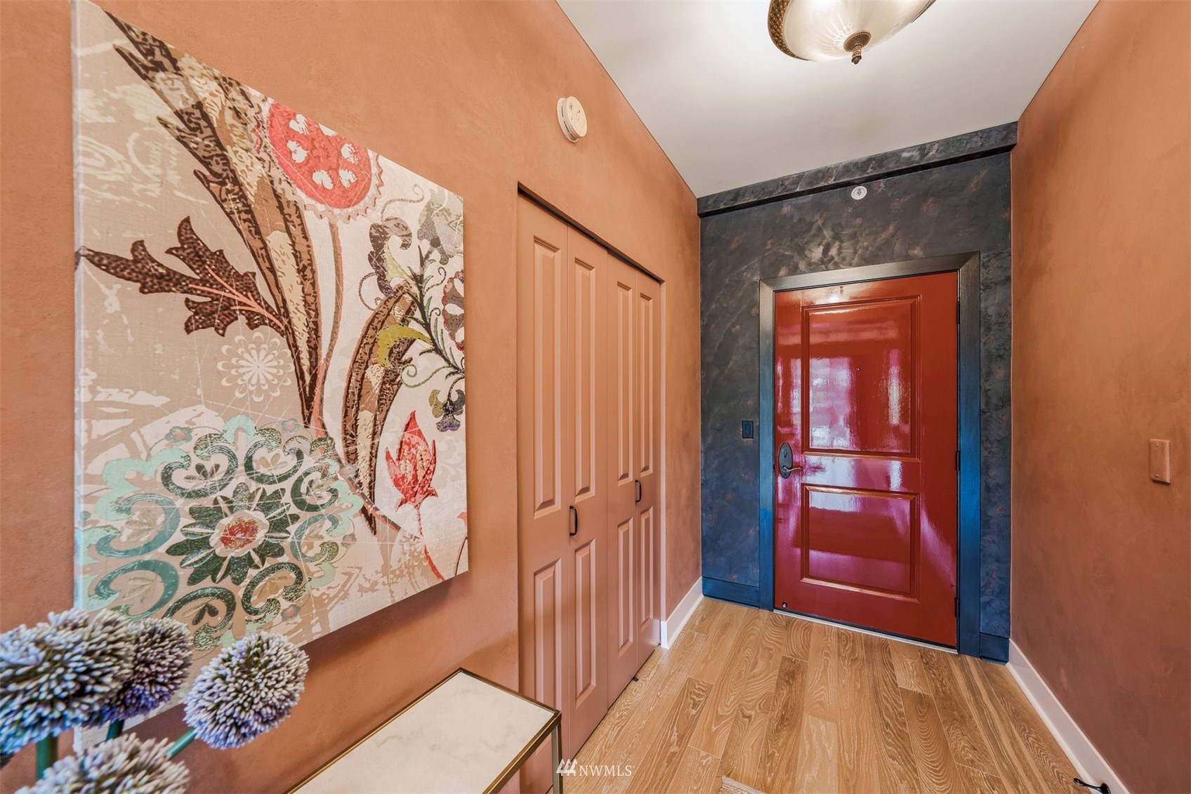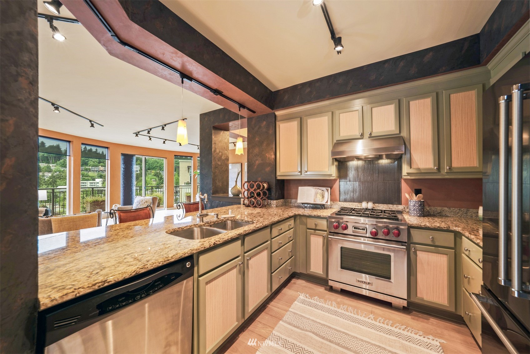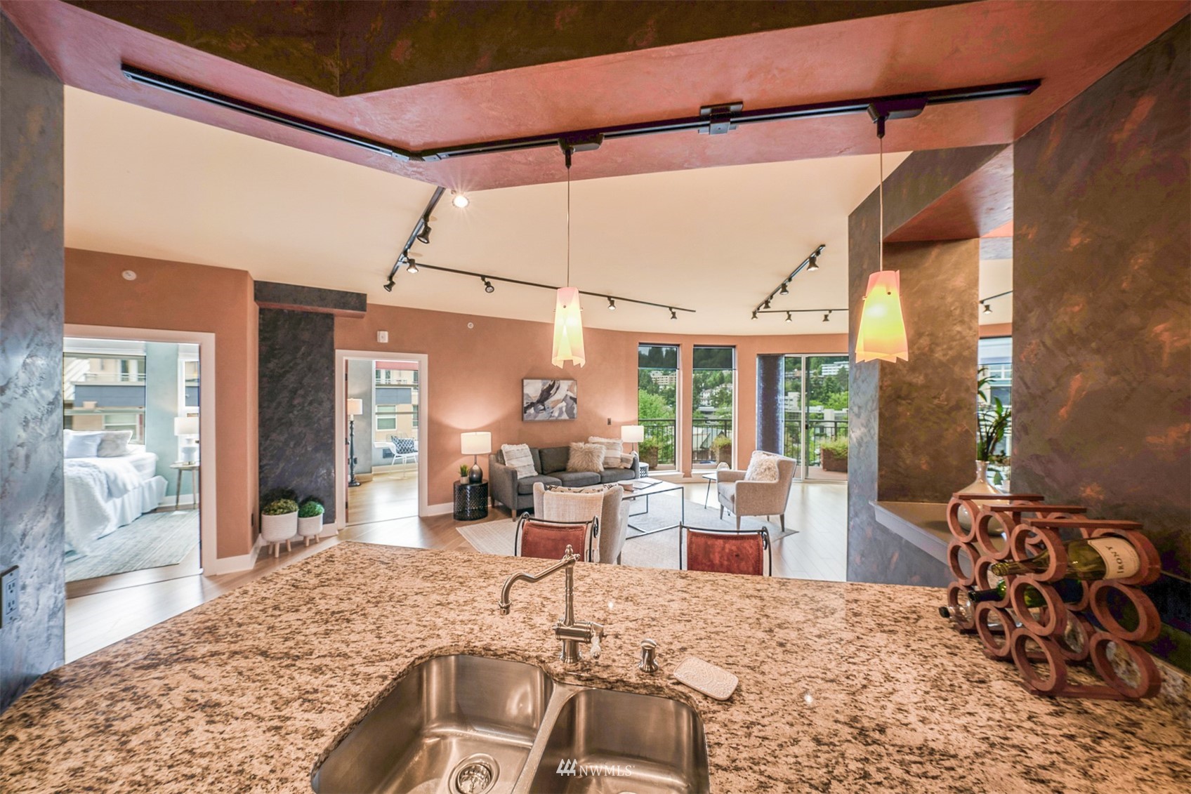 Welcome to where Italy meets Mercer Island in this one of a kind unit in a solid concrete & steel building, just steps away from downtown Mercer Island. This unit was remodeled & no expense spared w/custom natural mineral plaster walls painted in muted & vibrant colors & hrdwd flrs throughout. Gourmet kitchen features custom cabinets, granite counter tops, w/eating bar, large pantry & Wolf gas range. The 3 bedrooms allows for many different options, primary bed w/large walk-in closet, guest room/workout space or office/den. An abundance of SW facing windows to allow for amazing natural light & grand territorial views from the large balcony. 2 secure parking spaces located close to the oversized storage unit. Location is a commuter's dream.