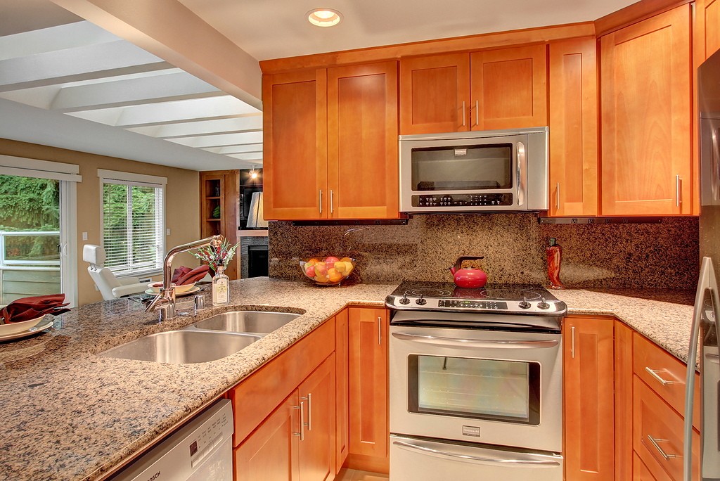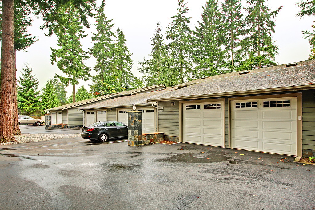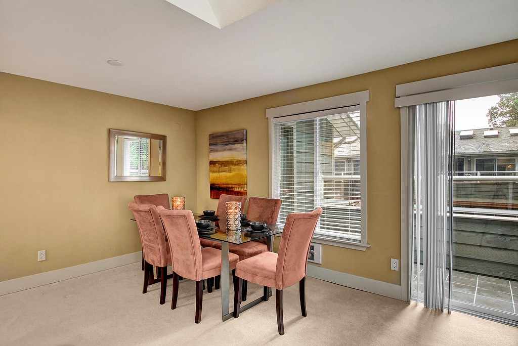 At home in Bellevue-newer top floor condo featuring quality finishes throughout. A two bedroom light and bright (wall of west facing windows and skylights) getaway with two bathrooms and garage. Fantastic location literally across the street from Crossroads Mall-Shopping/Dining/Parks, within private Highland Lane community-close in. Welcome home!