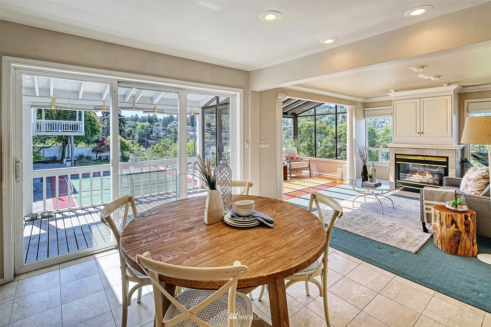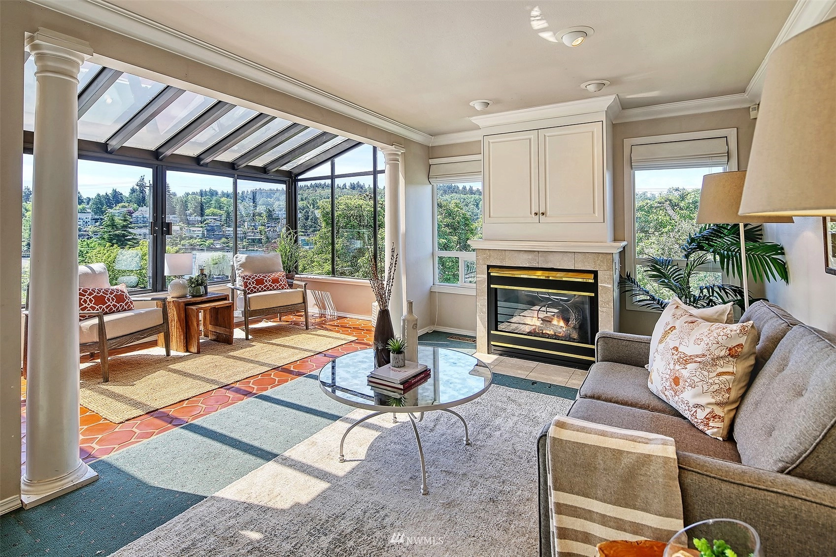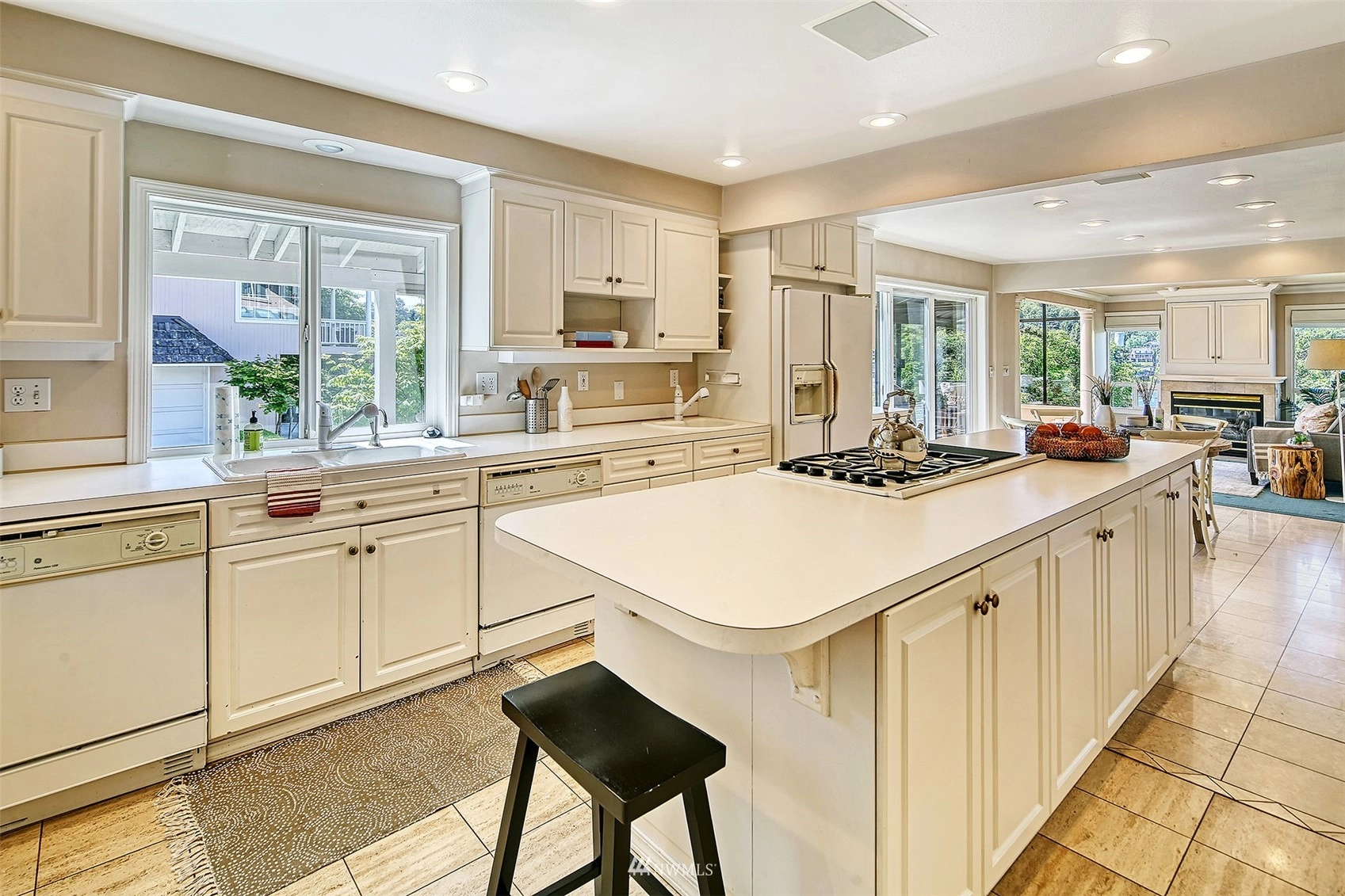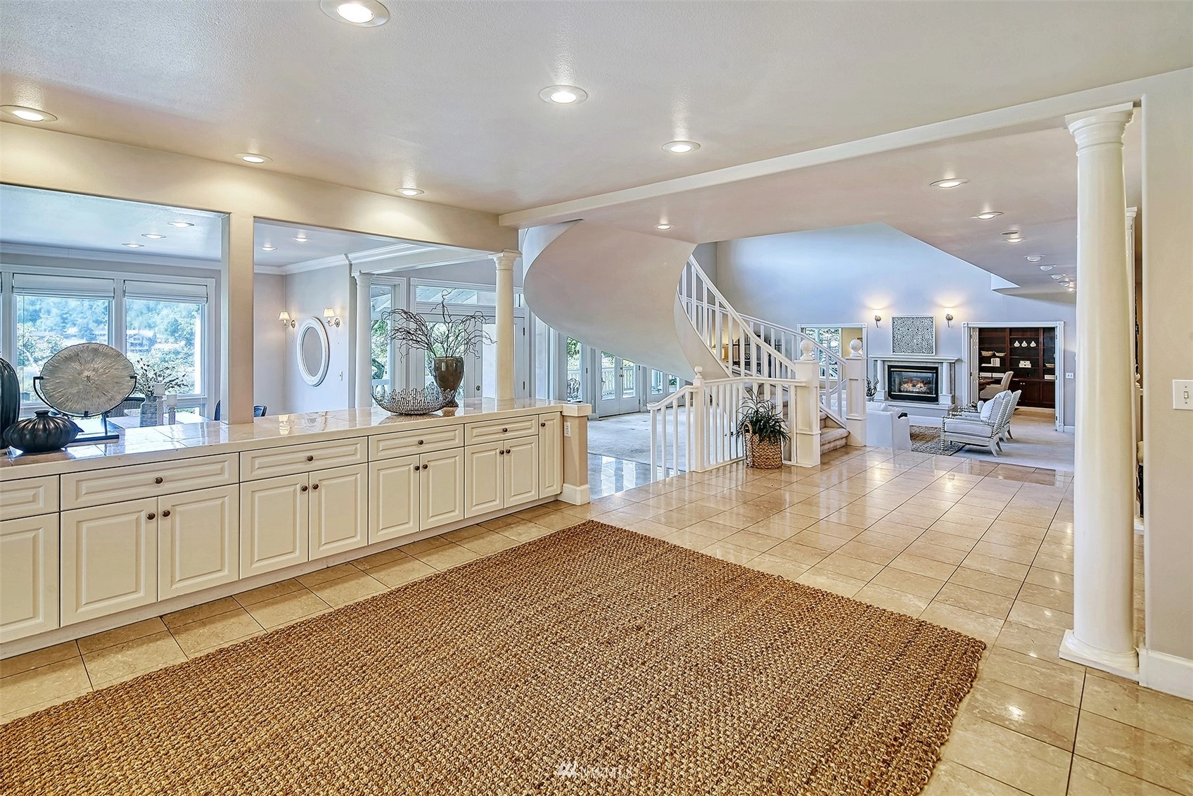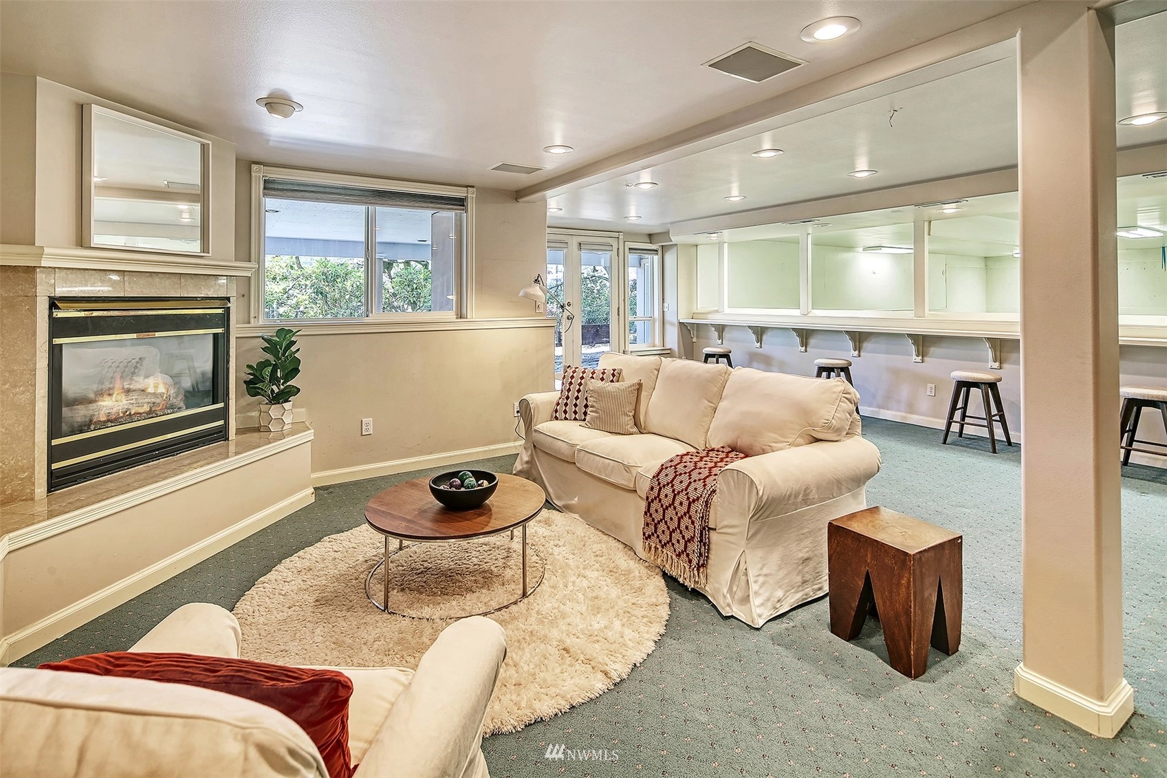 Forced Air Ceramic Tile Laminate Wall to Wall Carpet Second Kitchen Bath Off Primary Ceiling Fan(s) Double Pane/Storm Window Dining Room Fireplace (Primary Bedroom) French Doors Security System Vaulted Ceiling(s) Walk-In Pantry Wet Bar Fireplace Water Heater