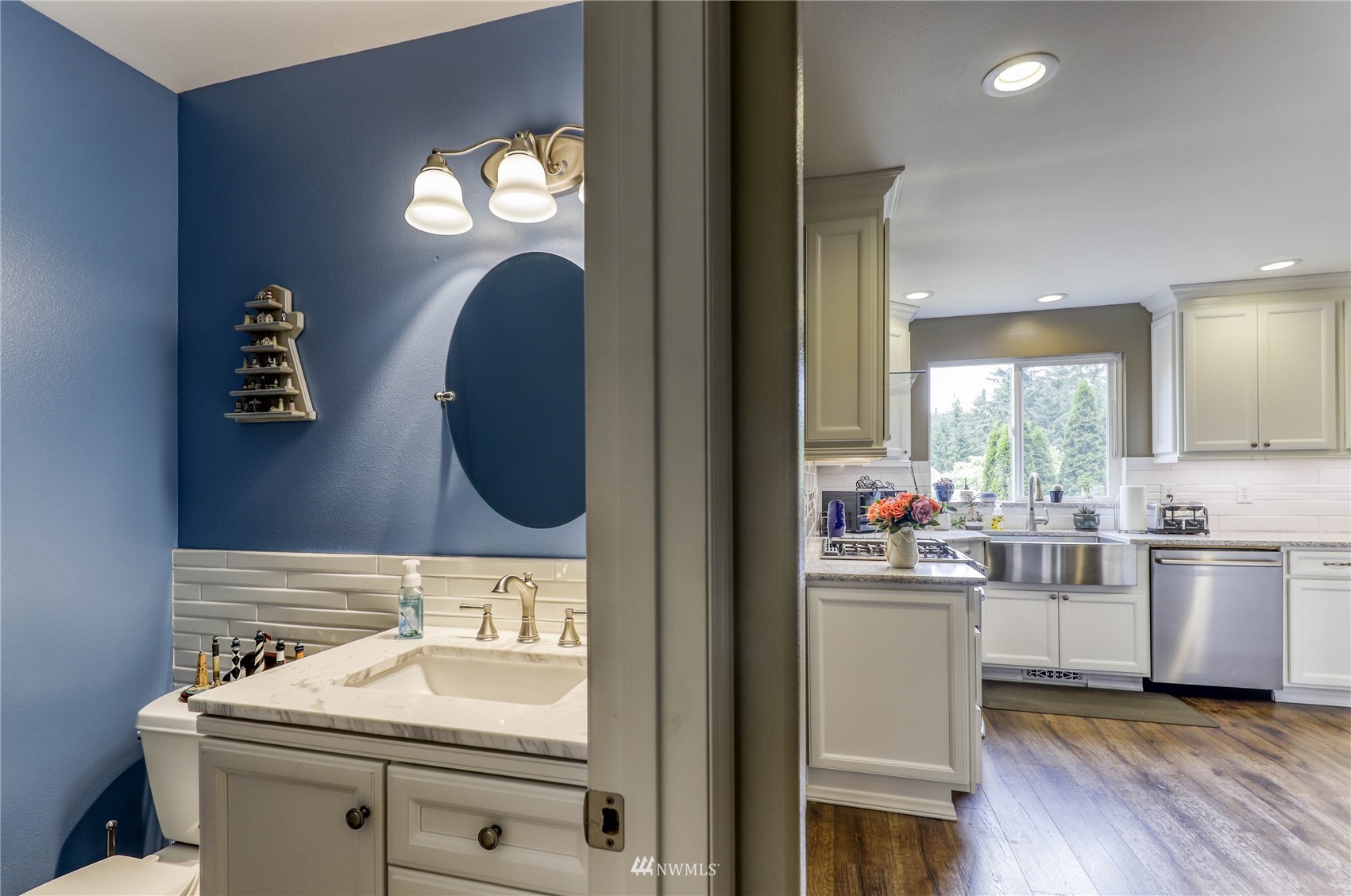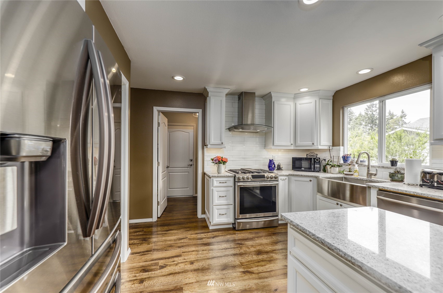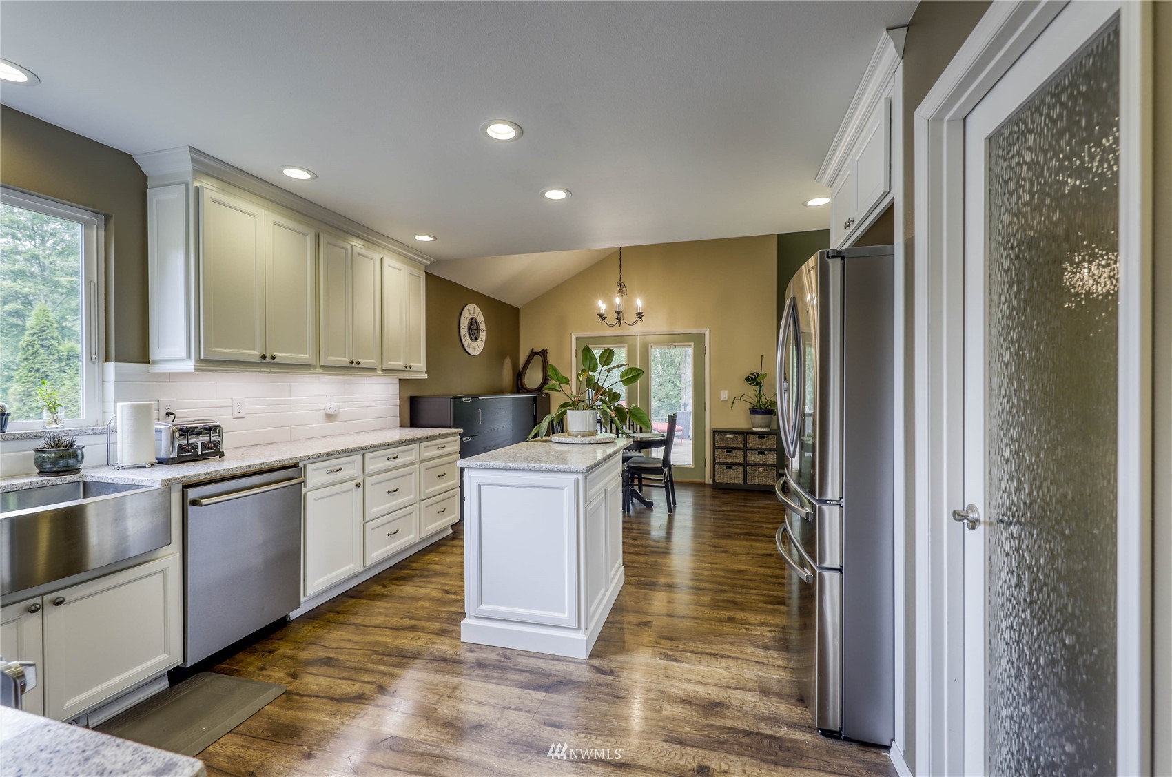 Updated 3 bedroom home in Central Kitsap. Kitchen and bathrooms recently updated, beautiful tile work, countertops and more. Multi-level composite deck provides access to private fenced rear yard. White cabinets, oversized kitchen island, vaulted ceilings, quartz counters, dining room, fireplace, 5 piece primary bath, natural gas forced air heat, 2-car attached garage, driveway parking, and room for RV/boat. Minutes to Rolling Hills Golf Course, central location between Silverdale retail, hospital, downtown Bremerton, and PSNS. Located in the award winning Central Kitsap School District.