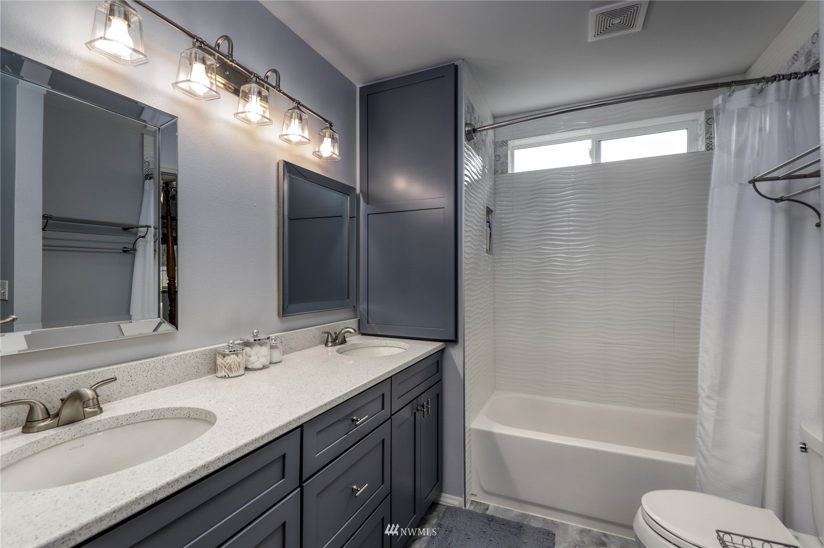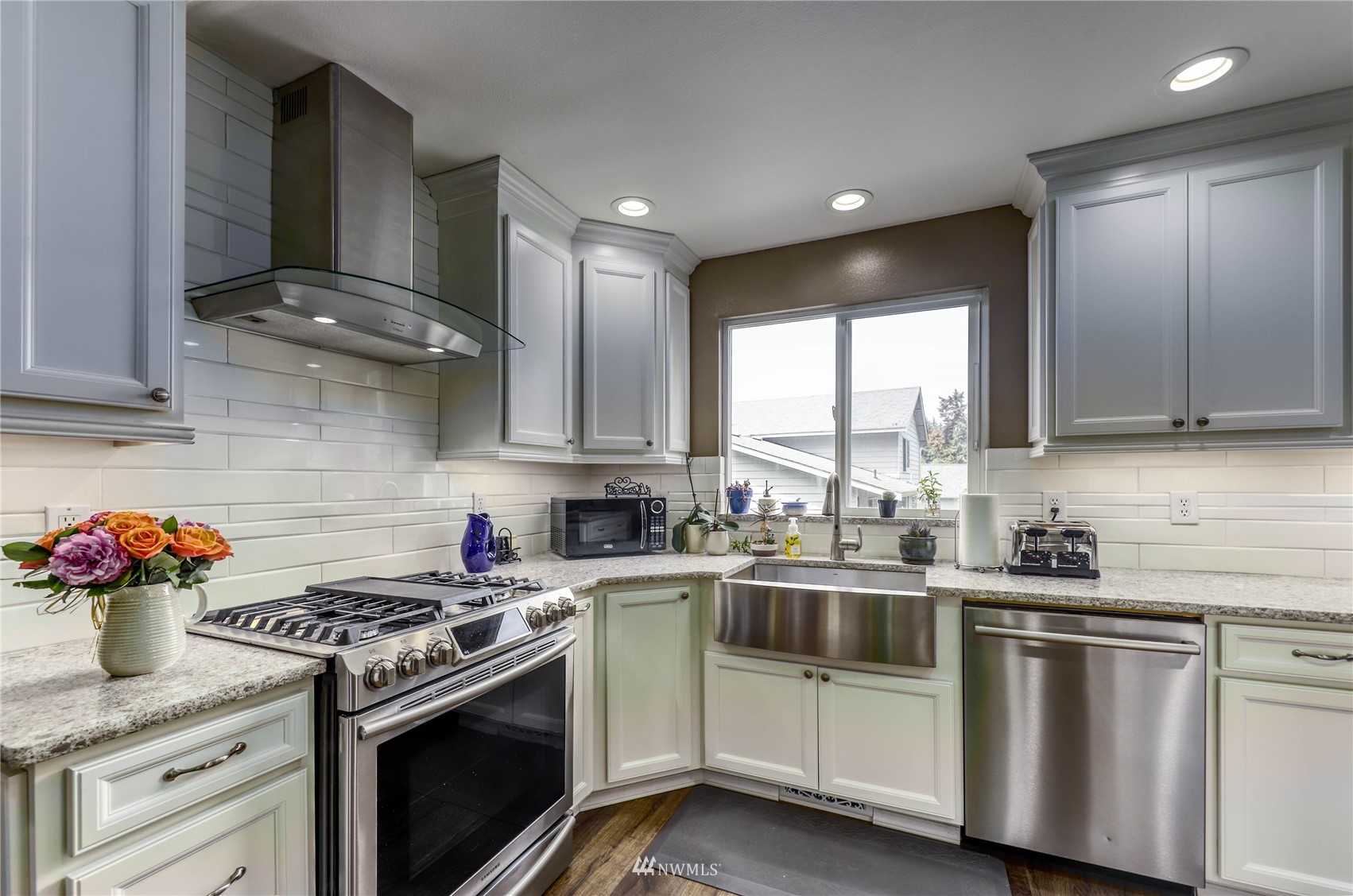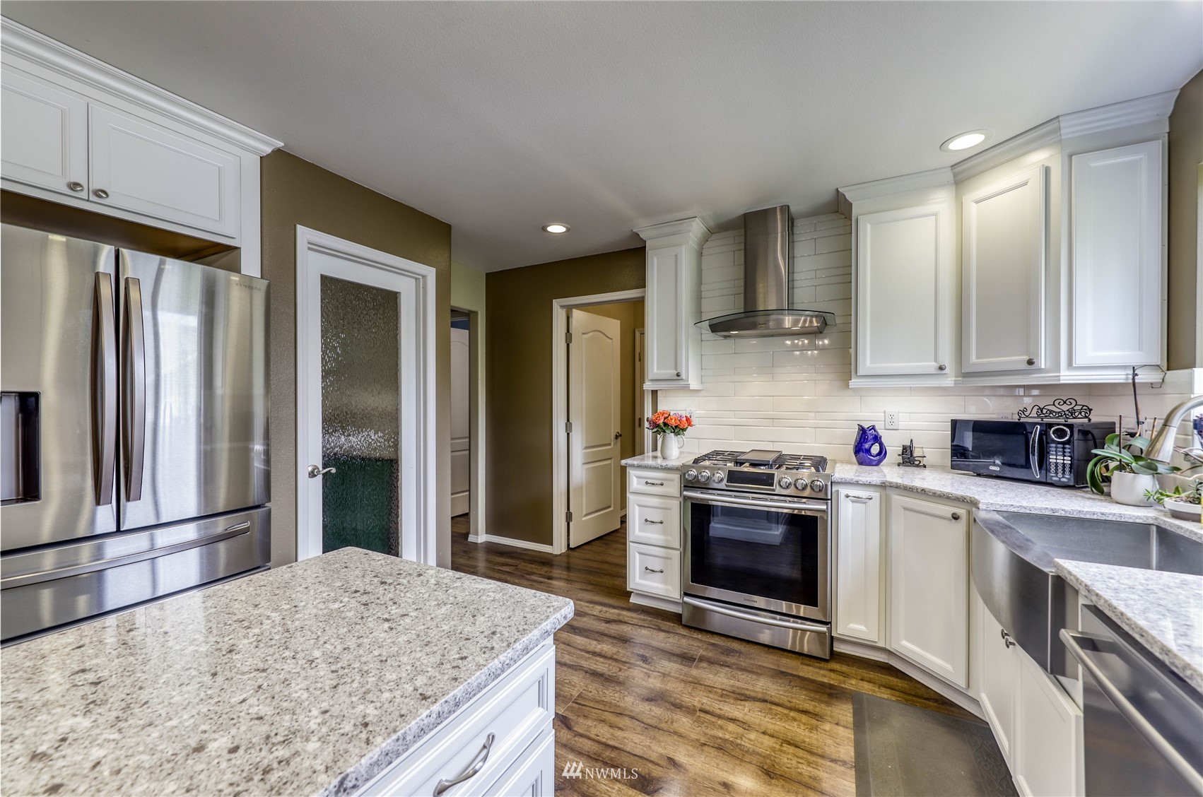 Updated 3 bedroom home in Central Kitsap. Kitchen and bathrooms recently updated, beautiful tile work, countertops and more. Multi-level composite deck provides access to private fenced rear yard. White cabinets, oversized kitchen island, vaulted ceilings, quartz counters, dining room, fireplace, 5 piece primary bath, natural gas forced air heat, 2-car attached garage, driveway parking, and room for RV/boat. Minutes to Rolling Hills Golf Course, central location between Silverdale retail, hospital, downtown Bremerton, and PSNS. Located in the award winning Central Kitsap School District.