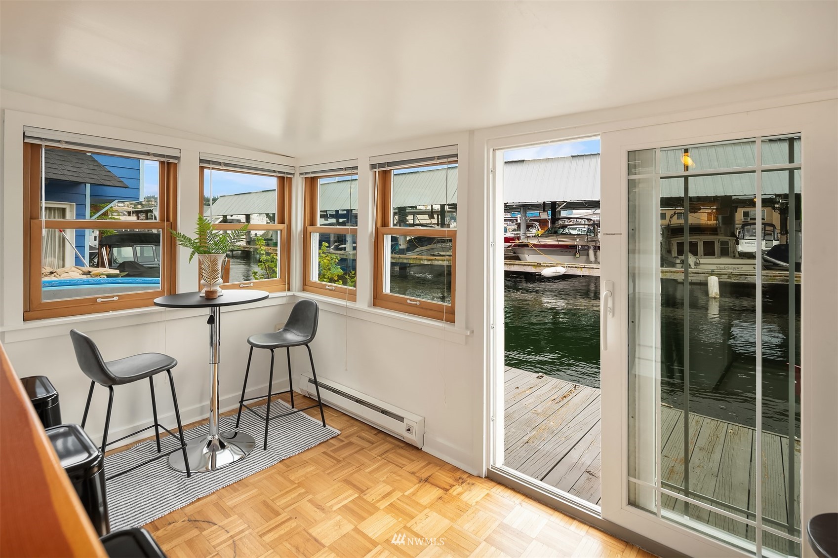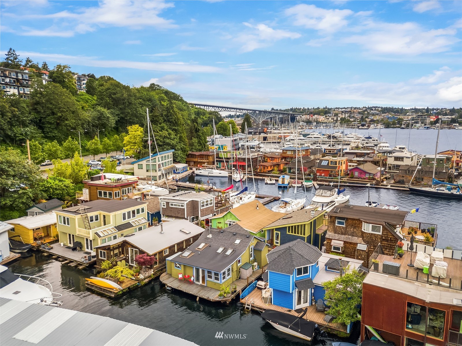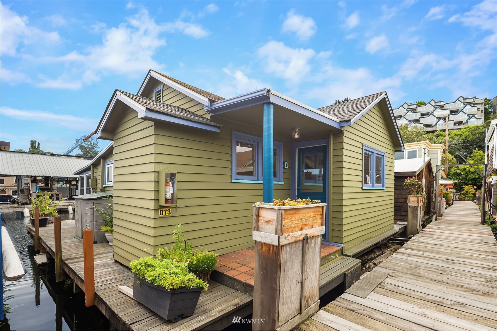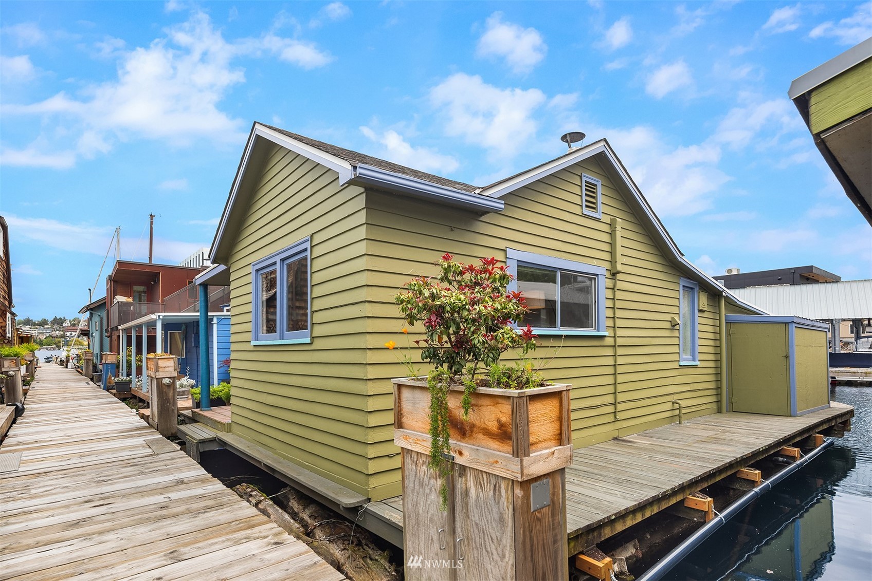 Charming floating home on Lake Union! This light and bright cottage is quintessential Seattle living. Whether you’re looking to get into the water on your paddle board or kayak, sit on your deck to take in the peace & quiet and the ever changing views of the lake, or entertain guests (think 4th of July fireworks), you can do it all here. This cozy home offers a spacious living room, galley kitchen with butcher block countertops and stainless steel appliances, sun room, two bedrooms, and roomy bathroom with washer/dryer. Enjoy fresh paint throughout, hardwood floors, additional storage on dock, energy efficient ductless mini-split, and more. Friendly co-op community and pets allowed. Close to all Fremont, SLU and Downtown have to offer.