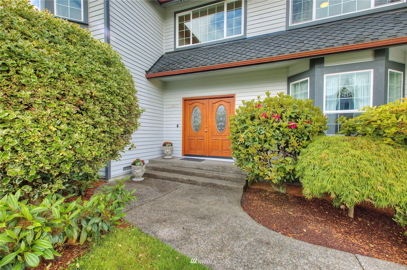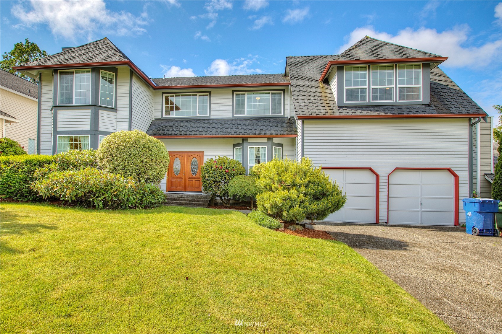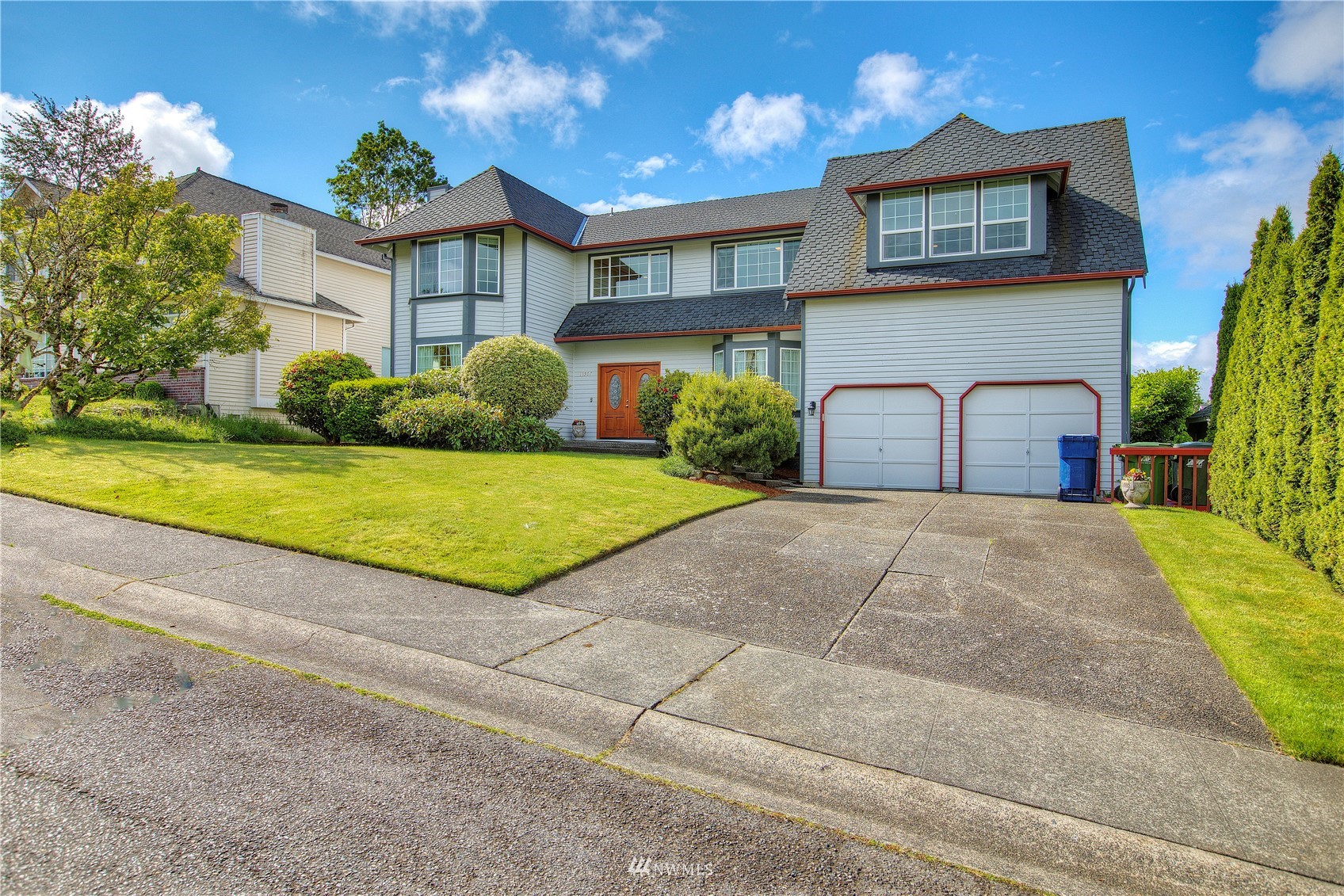 REDUCED!! Must see inside this beautiful 2-Story in convenient Fairwood area, completely remodeled/updated in 2016, genuine hardwood floors on main floor, generous living and great rooms both with gas fireplaces, French doors lead to huge covered deck, inviting breakfast nook w/skywall, dream kitchen w/beautiful cabinets, pantry, movable island, solid surface counters, open to lg dining room for entertaining, flowing staircase leads to spacious primary suite w/private bath, 3 additional bedrooms and they are nice sized, full bath and Huge Bonus Room w/many options. Fully fenced backyard offers covered deck & patio area and offers privacy, 2-car garage w/lots of storage. Quiet & established neighborhood close to many amenities, Awesome Home!
