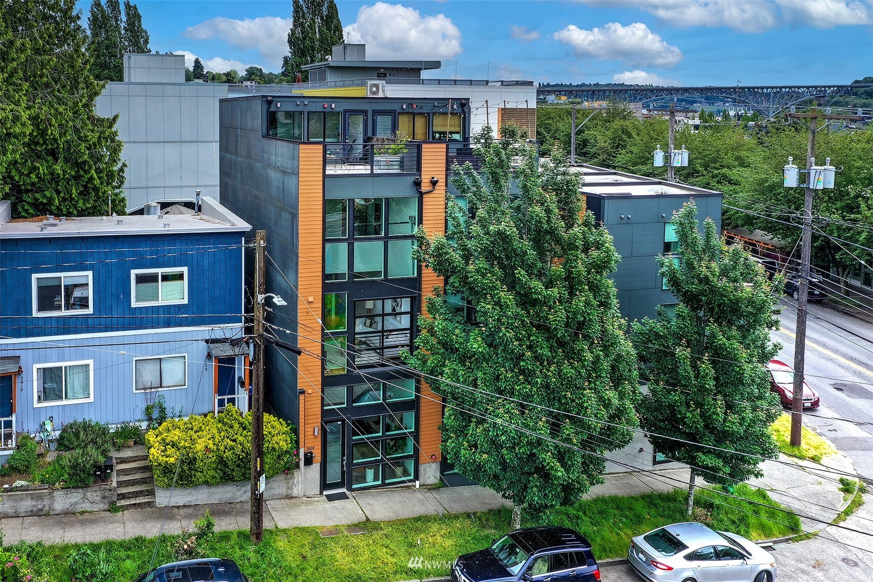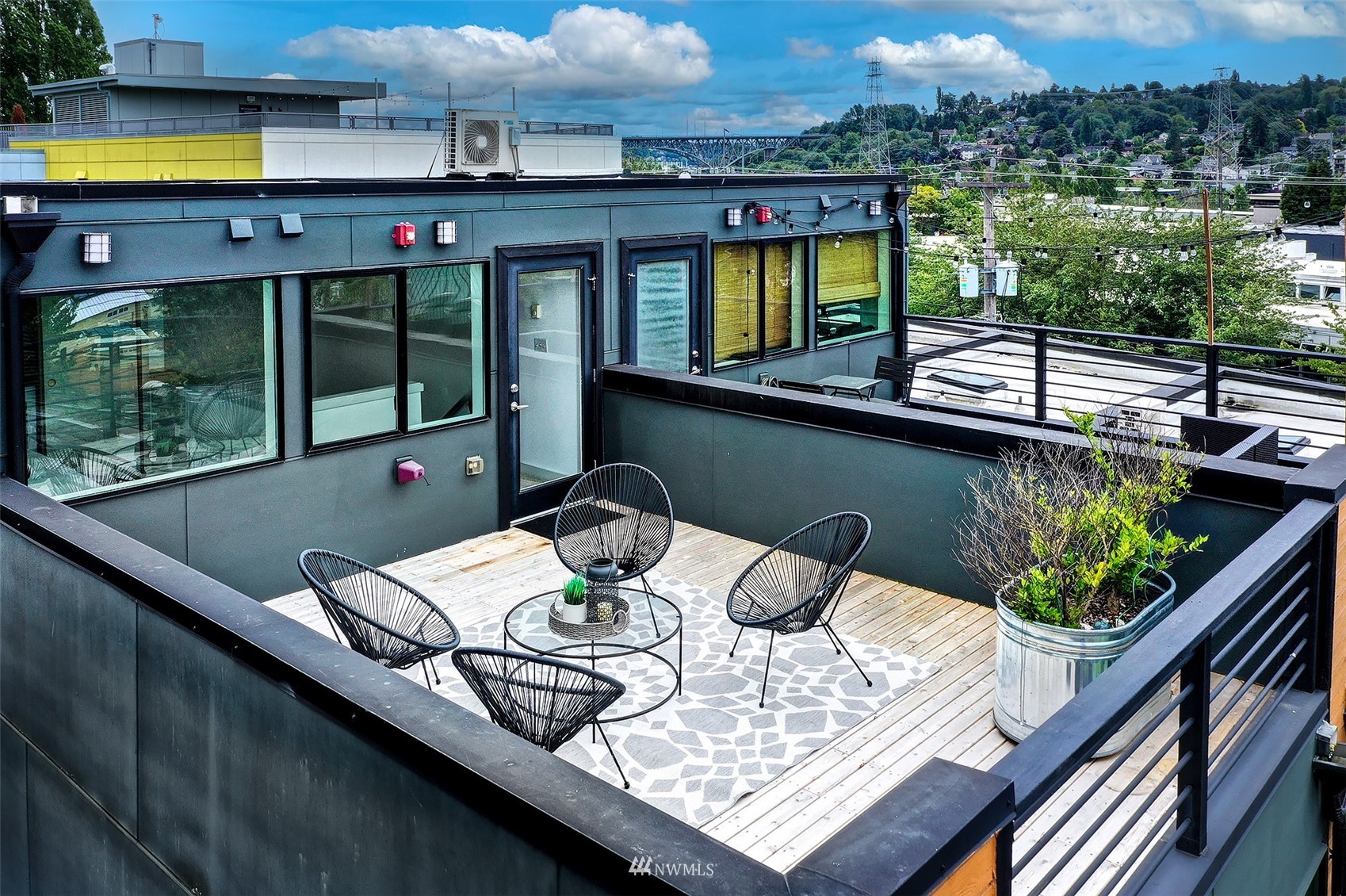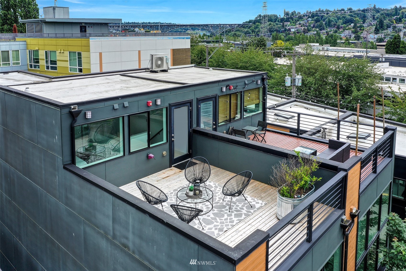 Wonderful opportunity for flexible urban living! The Fremont Lofts offers you the option to live/work/hobby in the heart of the lively Fremont neighborhood. Sleek and modern finishes throughout. The current owner used the entry floor as a work space and remodeled it to include an office loft. Light and bright main floor with two-story windows and roll up garage-style window just adds to the cool, modern feel. Private rooftop deck with views to the south and west. Freshly updated with new carpet, refinished bamboo floors, fresh paint throughout and new decking on the roof top deck.