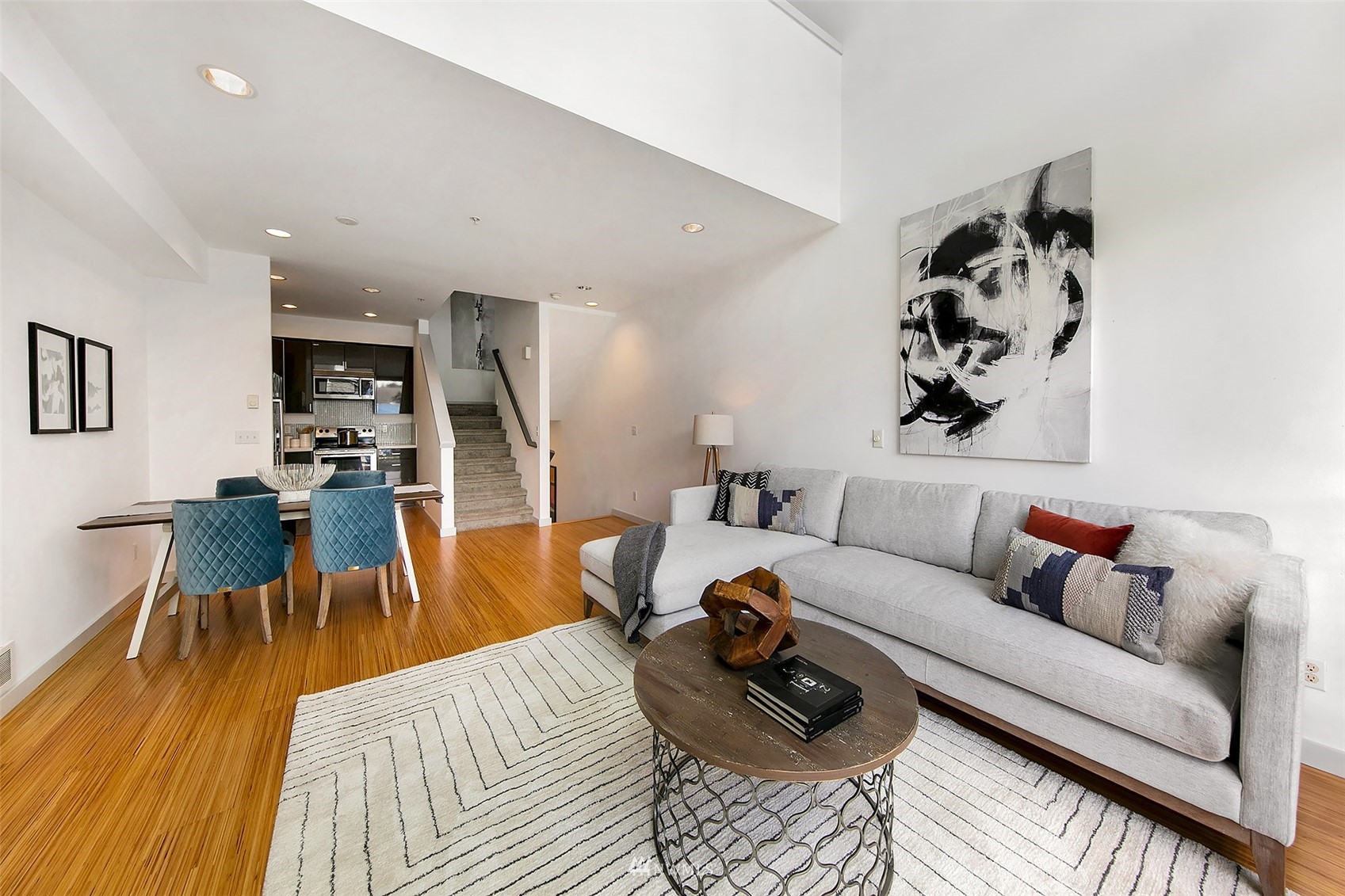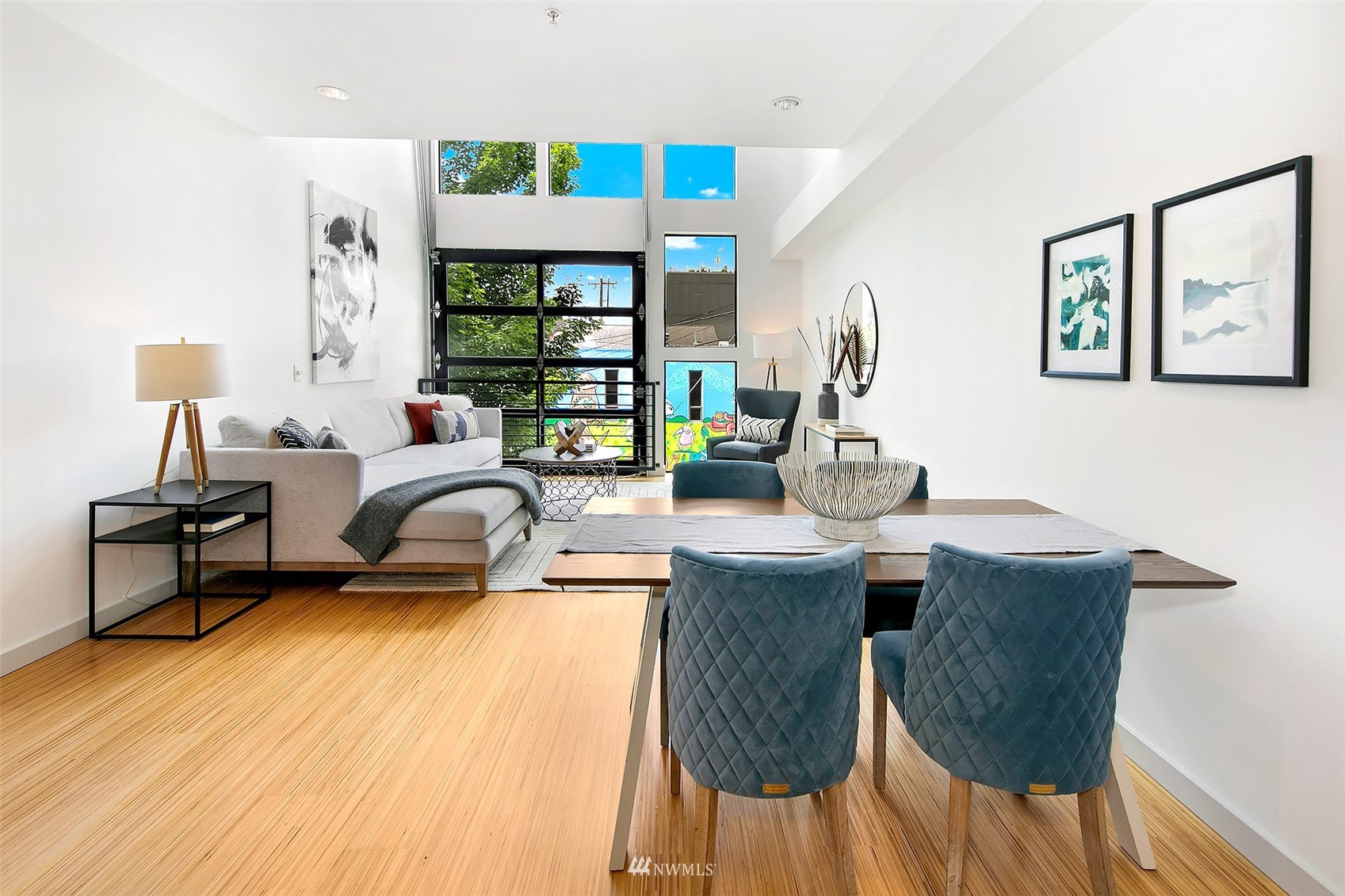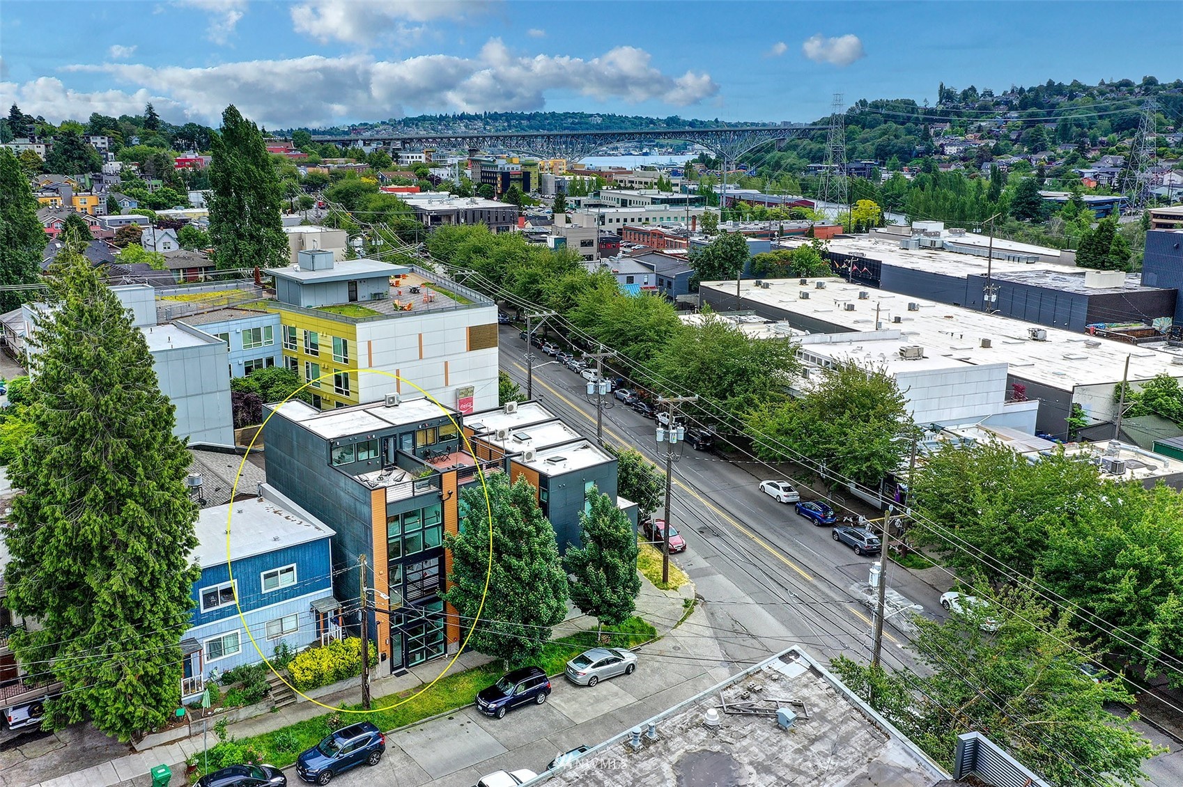 Wonderful opportunity for flexible urban living! The Fremont Lofts offers you the option to live/work/hobby in the heart of the lively Fremont neighborhood. Sleek and modern finishes throughout. The current owner used the entry floor as a work space and remodeled it to include an office loft. Light and bright main floor with two-story windows and roll up garage-style window just adds to the cool, modern feel. Private rooftop deck with views to the south and west. Freshly updated with new carpet, refinished bamboo floors, fresh paint throughout and new decking on the roof top deck.