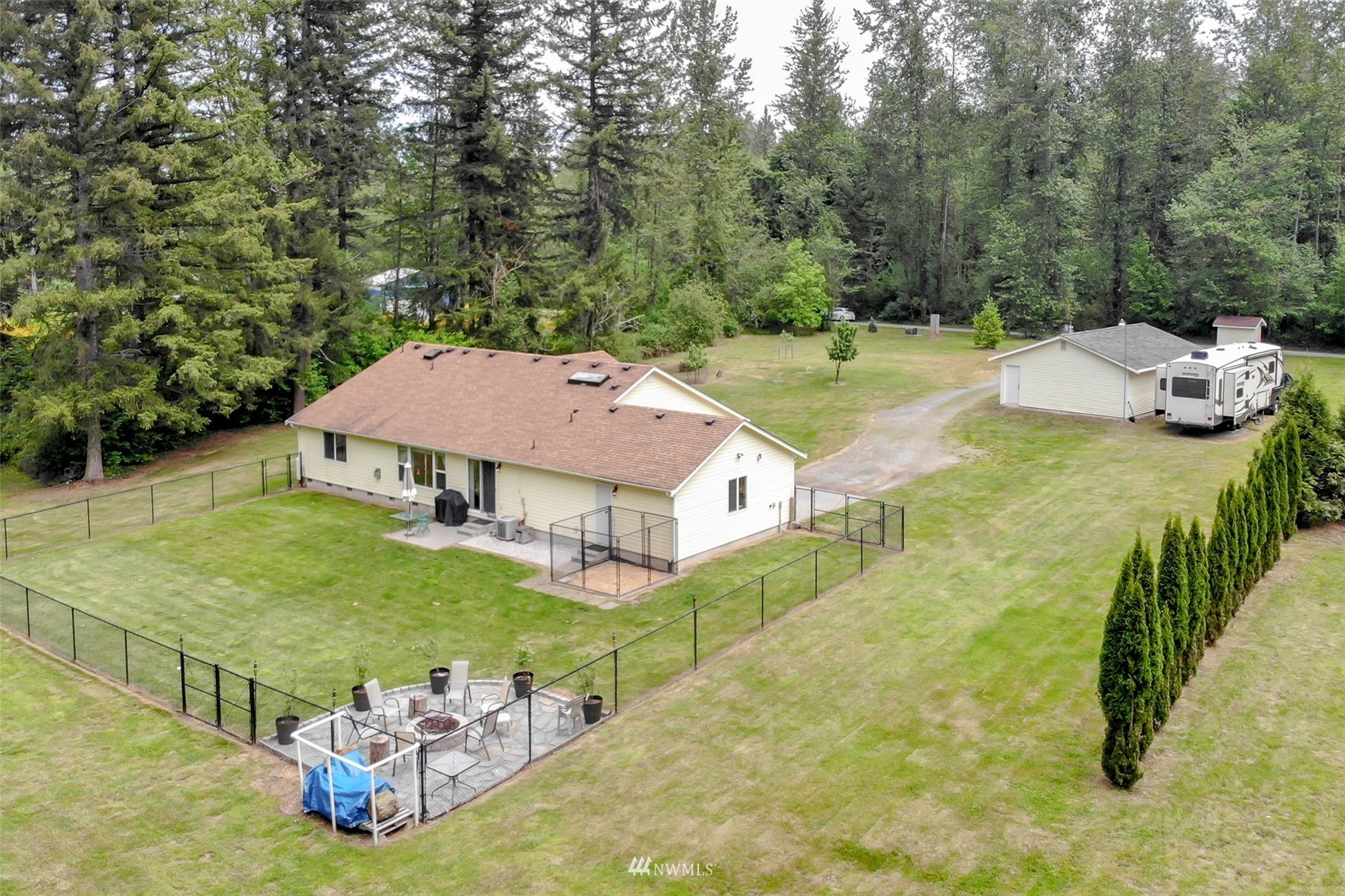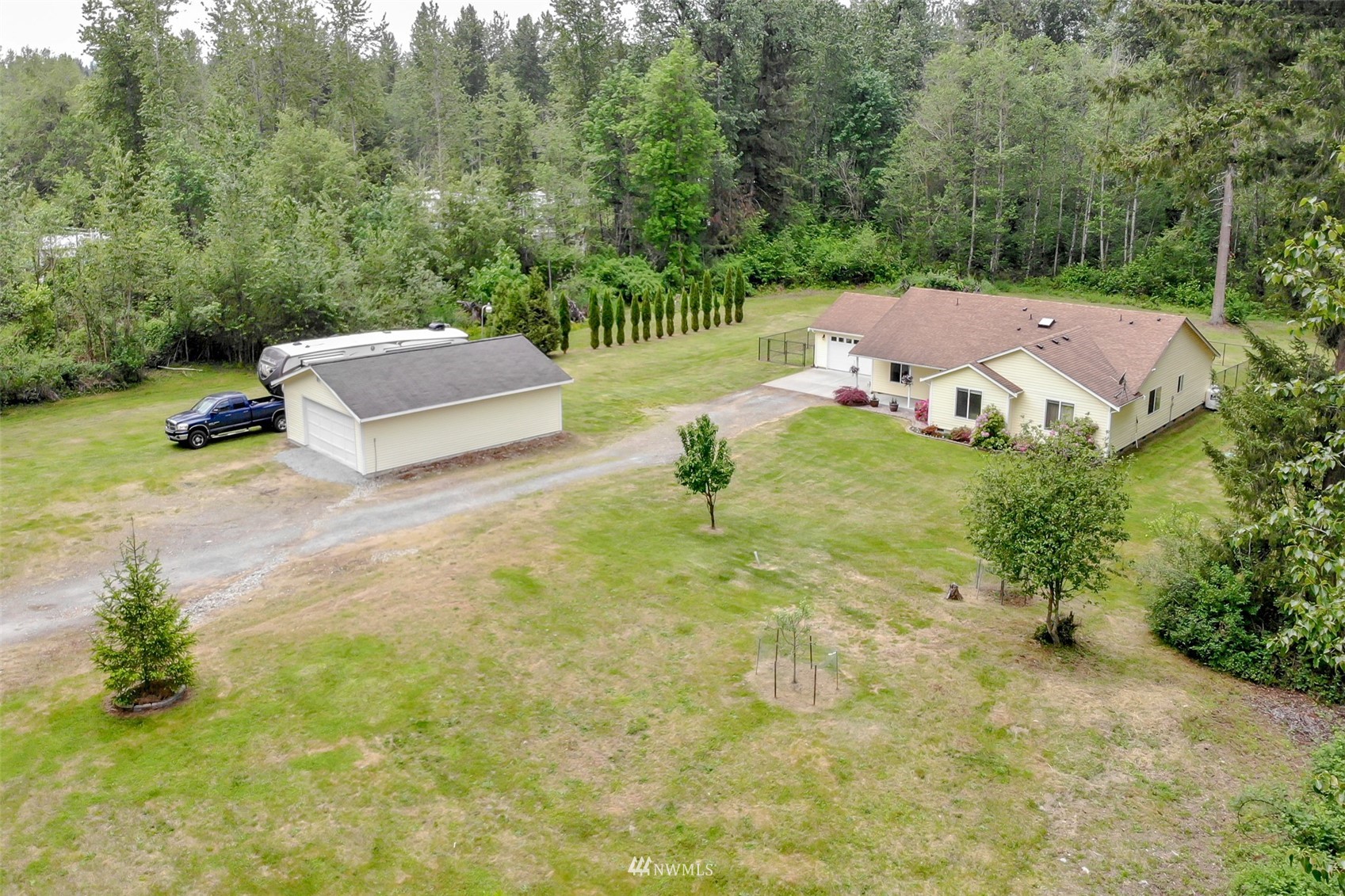 Back on market due to unforeseen circumstances on buyers end, one week before close. Welcome Home to this stunning rambler sitting on just shy 10 acres! You will find endless possibilities with your large open concept, soaring ceilings and slab granite counters in the kitchen. Living room accented with gas fireplace, Primary bedroom has vaulted ceilings and 5 piece bathroom, and 3 very generously sized additional rooms. Outside you will find a partially fenced area, great for play or animals to run, a BEAUTIFUL fire pit area, and large detached garage. Just in time for summer, enjoying peaceful mornings watching the deer and elk right outside your door.