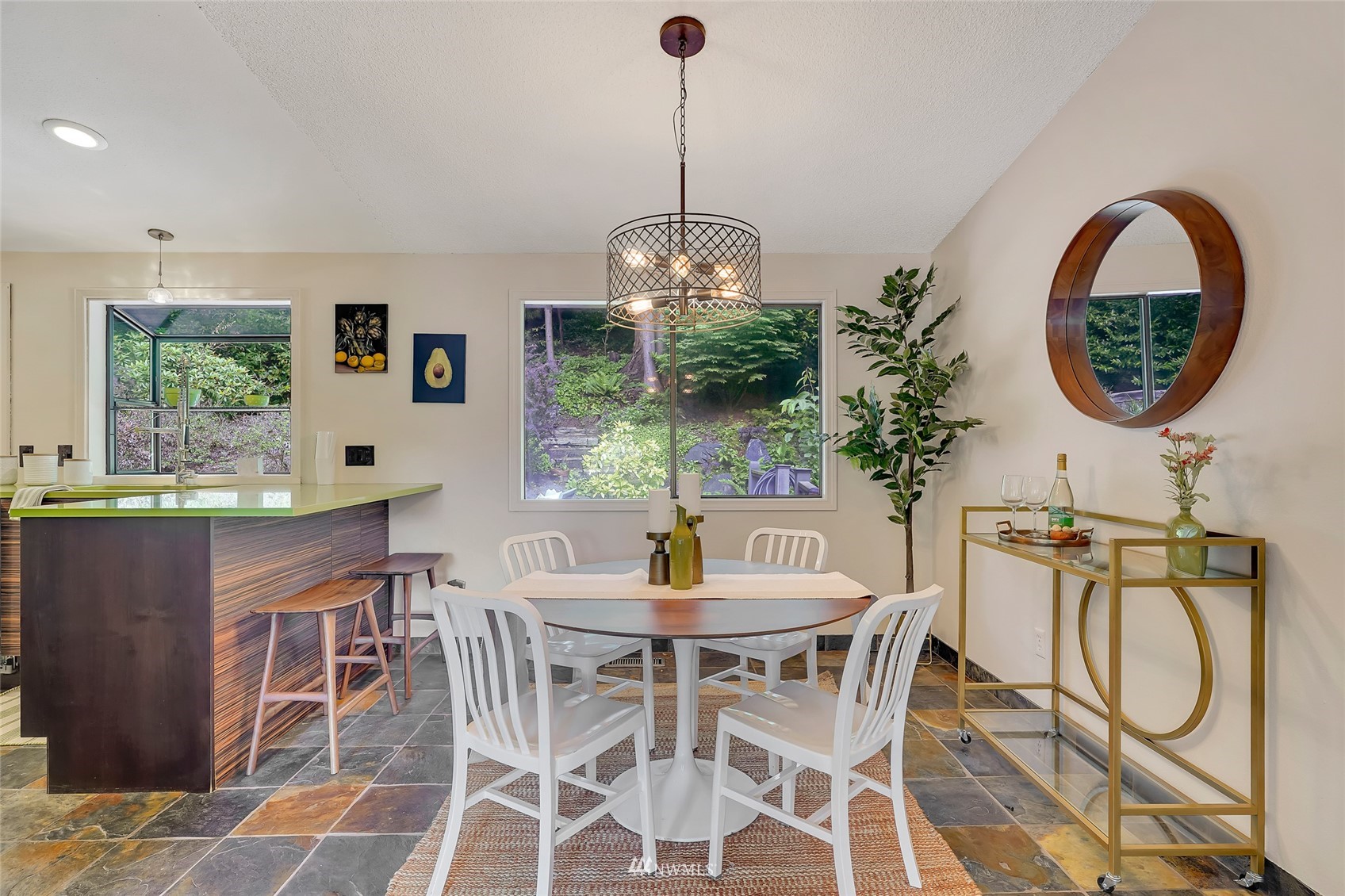 This PNW dream home is nestled in a quiet but centrally located Edmonds cul-de-sac between PCC + Firdale Village. The tiered backyard is a natural gardener’s paradise. Once inside, the space lives large. Generous bedrooms upstairs include a primary bedroom with en-suite bath, plus another bathroom to share. Downstairs, find a bonus room with large windows, utility room with half bath and garage access. The main floor’s circular floorplan with modern kitchen beckons you back outside where there’s plenty of spaces to both dine and relax. It’s a perfect backyard for a Summer soiree under the tree canopy. Quiet street, near all the popular Edmonds restaurants, coffee shops, beaches, and easy access to I-5 and 99. Offer review 6/22.