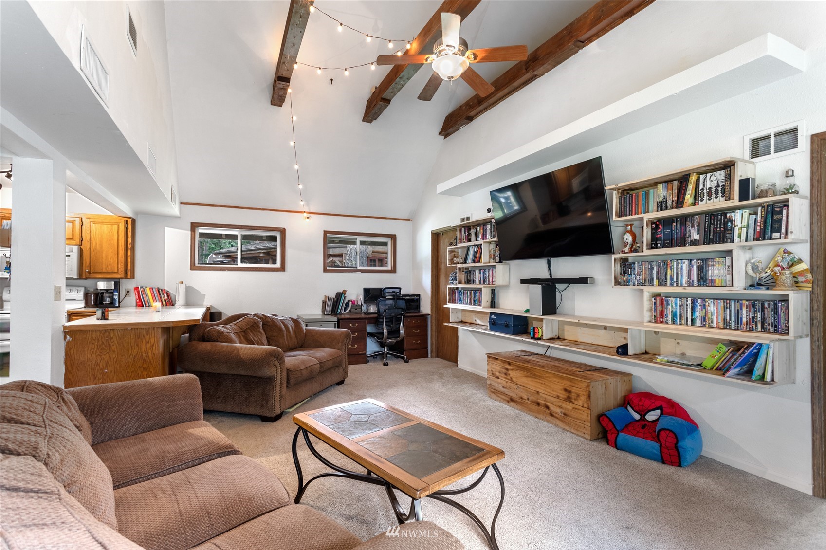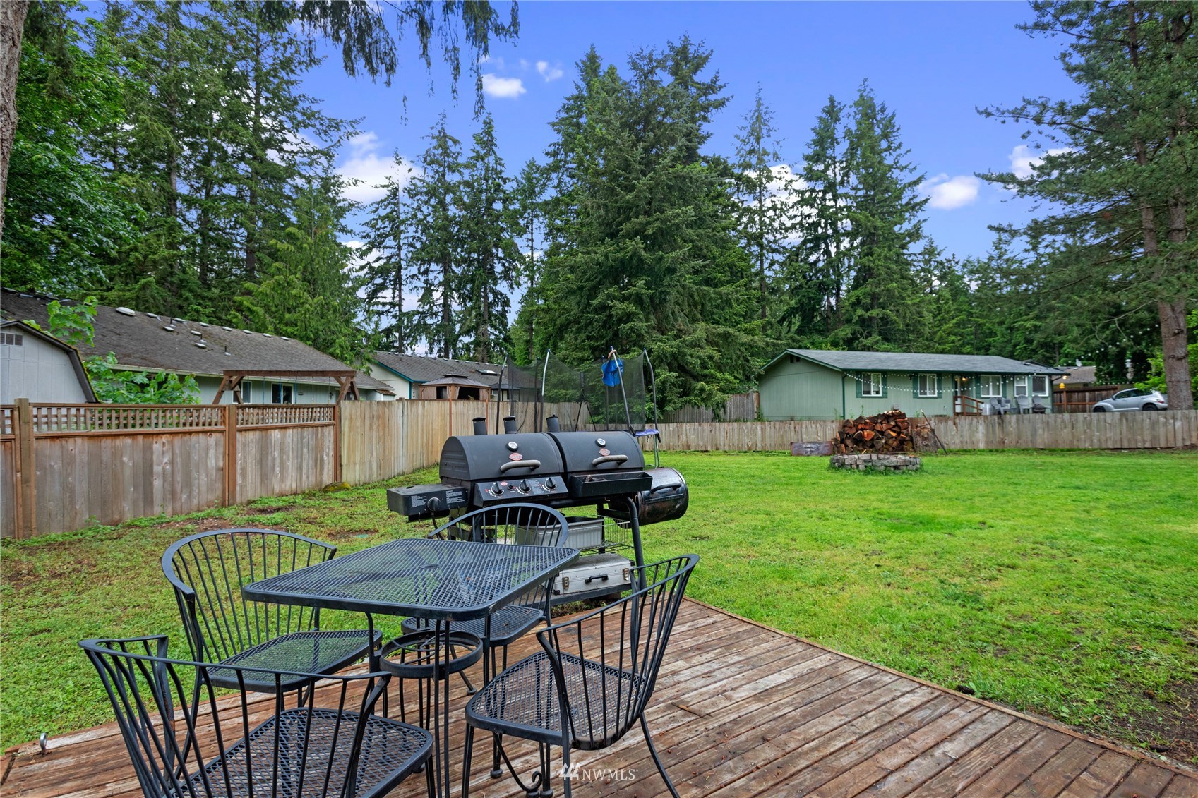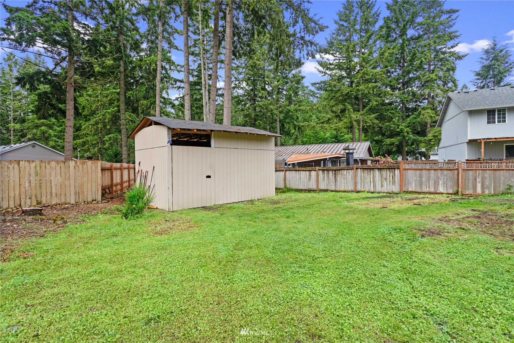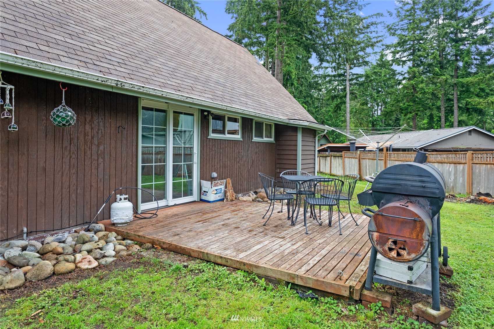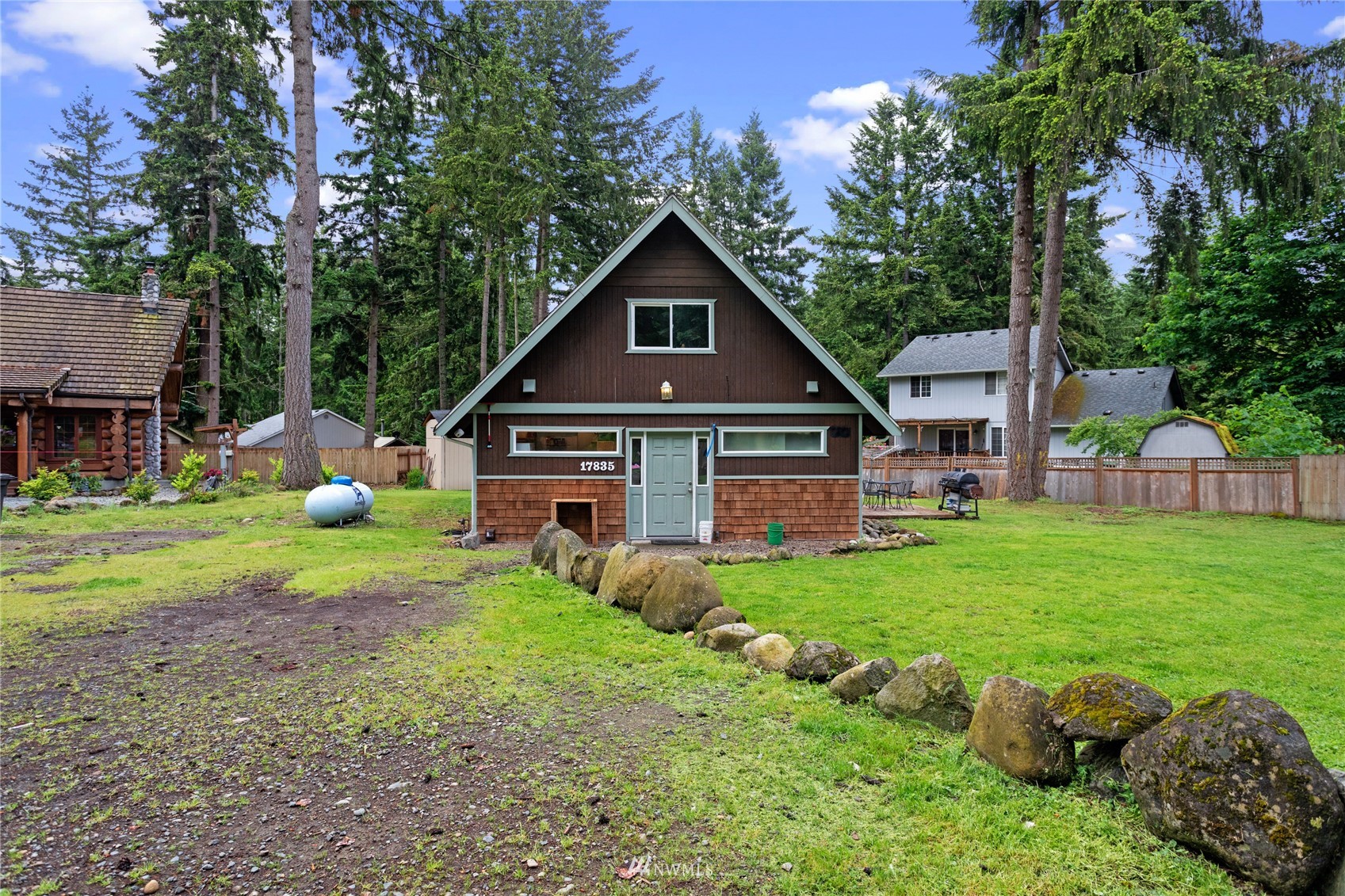 Come enjoy resort living in this adorable A-frame home located within the desirable Clearwood neighborhood. This cute bungalow is nestled on a large private lot and located in a cul-de-sac. The 3 bedroom home has 2 rooms on the main floor and 1 room upstairs. The kitchen allows for easy entertainment with the open floor plan overlooking the living room. Addt'l features include a quartz countertops, remodeled bathroom, vaulted ceiling, ceiling fan, deck off the back and a large shed. This secured community comes complete with boat launch, lakes, 5 private beaches with covered picnic areas, hiking trails and sports courts. You'll never need to leave with all of the amenities you'll ever need in this gated community. New roof put on July 2022!