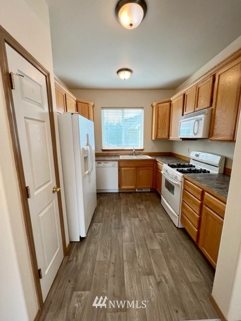 Welcome home to your spacious detached condo in Lynnwood with 3 levels of comfort. The main level features a bright living room w/gas fireplace and balcony, dining room, kitchen w/all appliances, guest bedroom and full bath. Upstairs boasts master bedroom w/on suite, additional bedroom w/tons of storage and a full bath. Lower level consists of main entrance, 2 car garage, laundry and family room. Private fenced yard/area on side of the unit. This neighborhood has a community park & play area. Great location minutes from Park N Ride, I5/405, restaurants, shopping and much more.